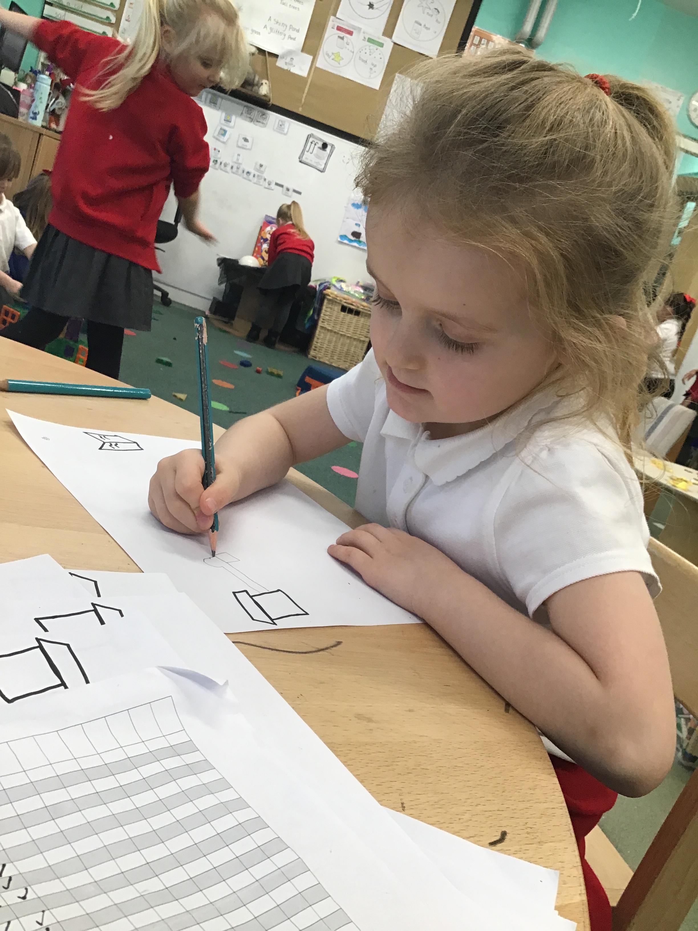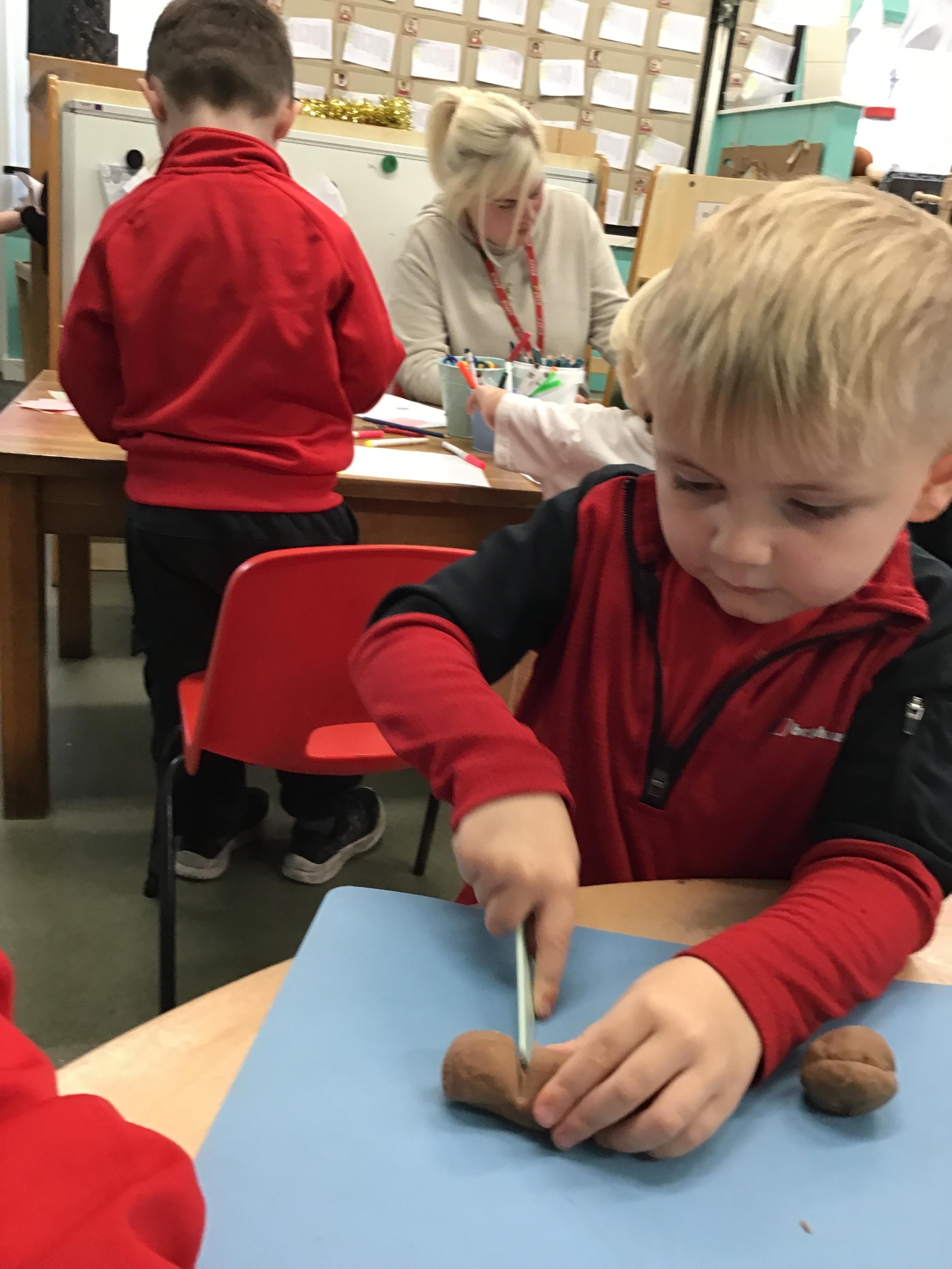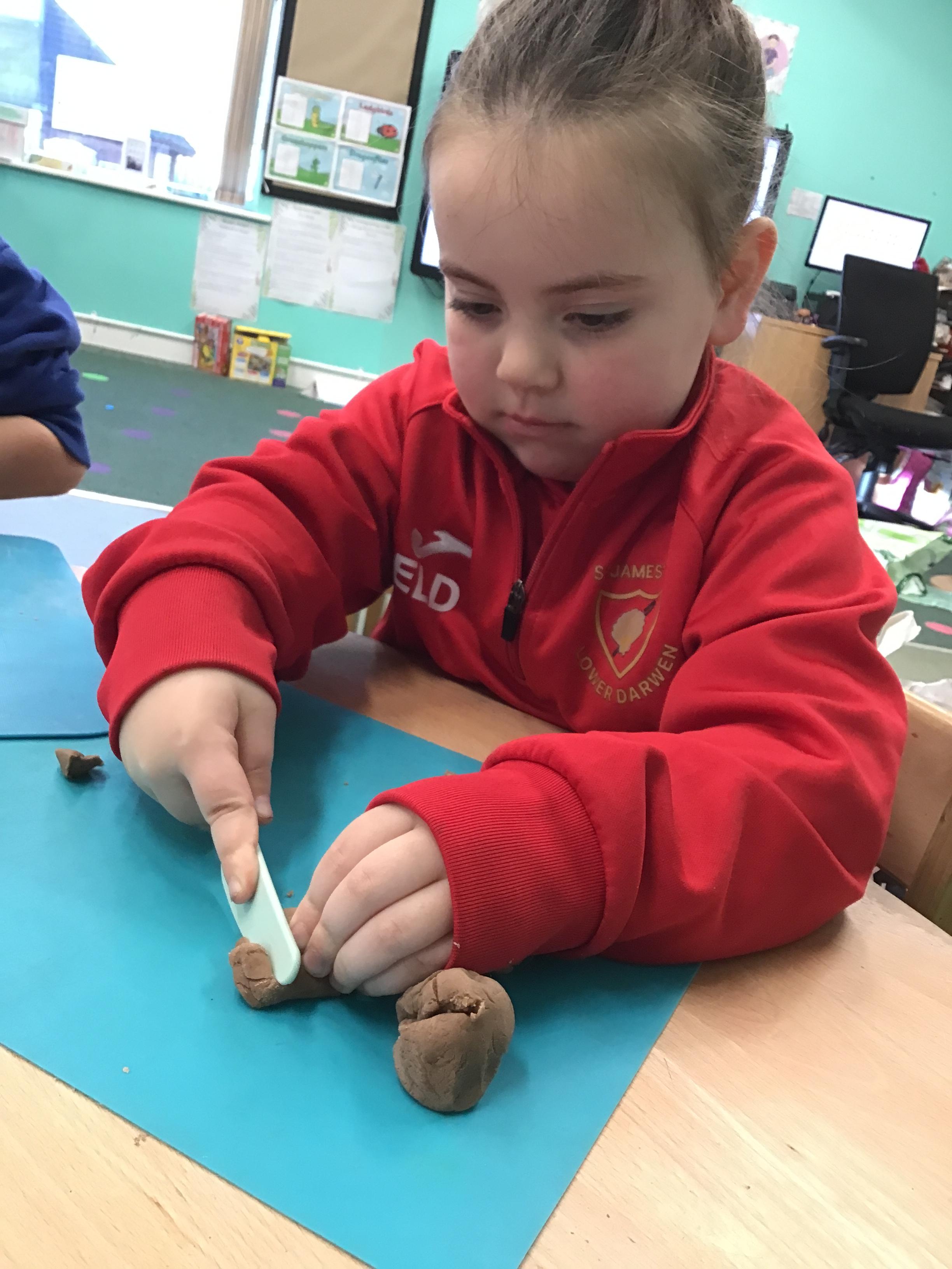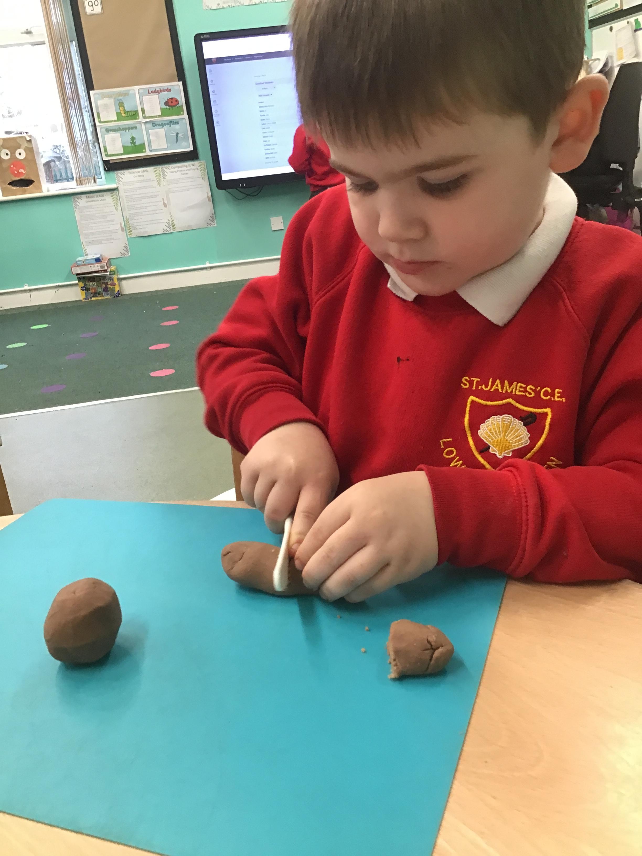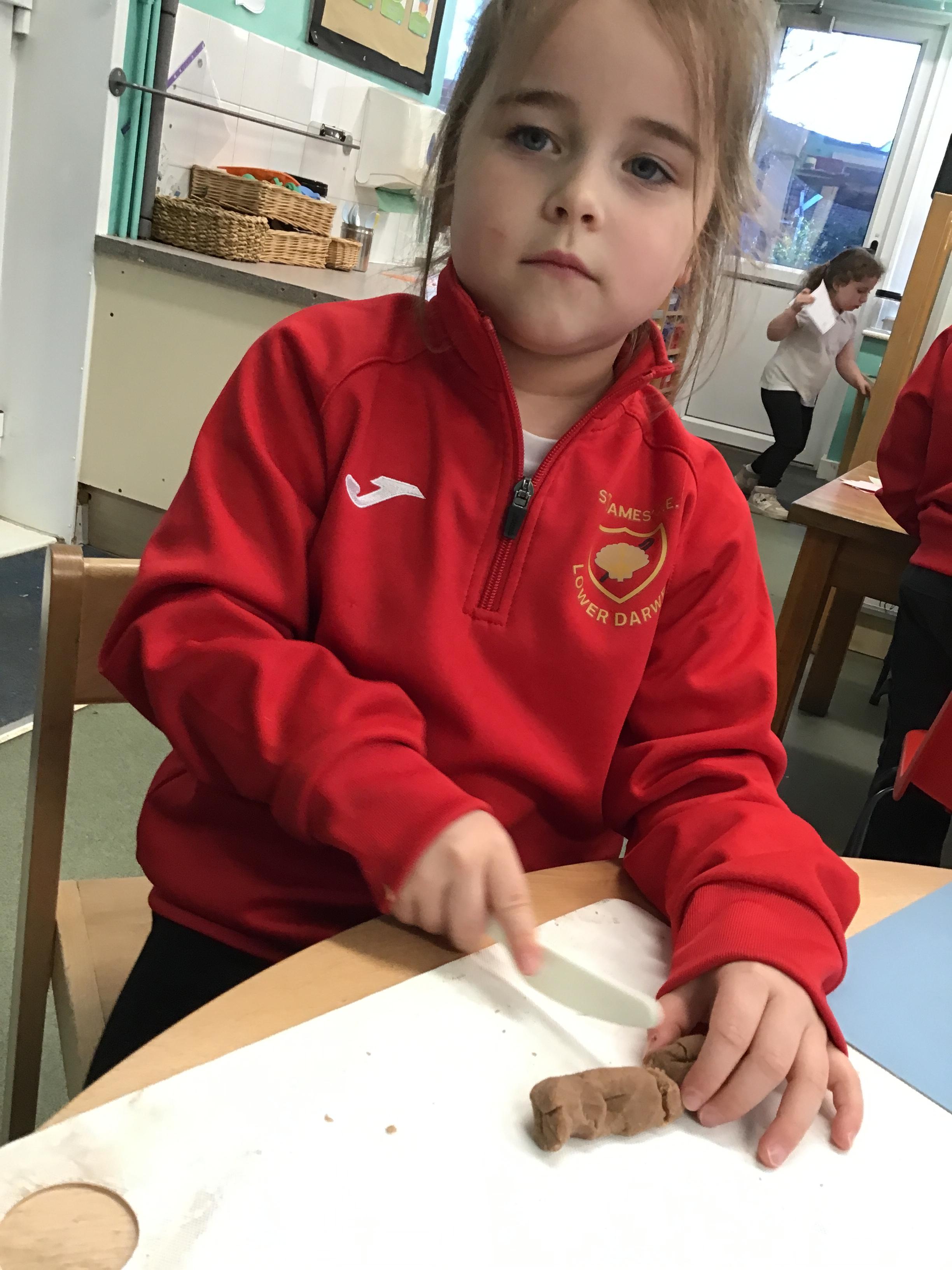In maths we have been exploring shapes with 4 sides - squares and rectangles and in phonics we learned the sounds 'f' and 'ff'. We have also practised our cutting skills with knives and playdough and drew a map of our journey to the library.