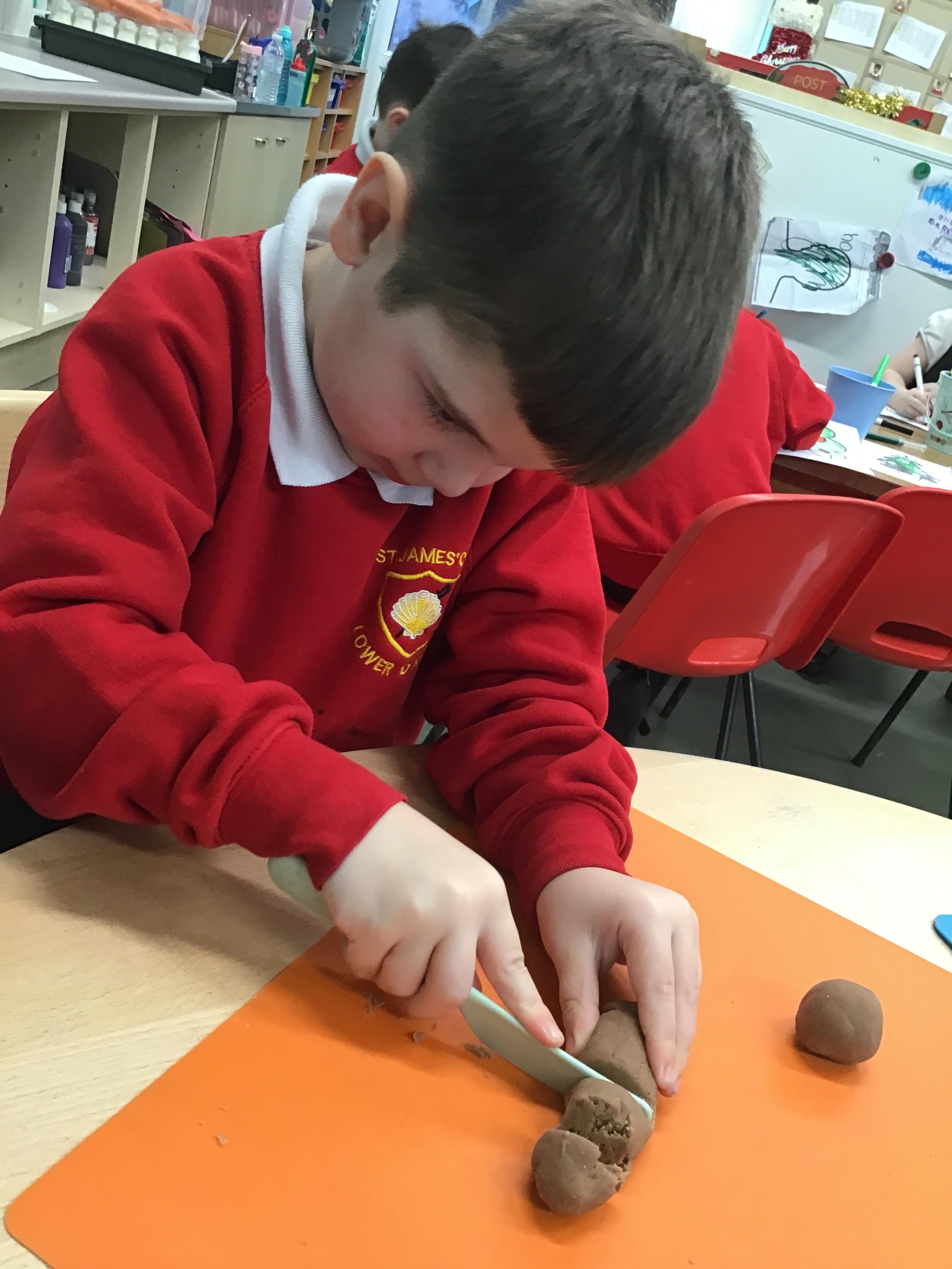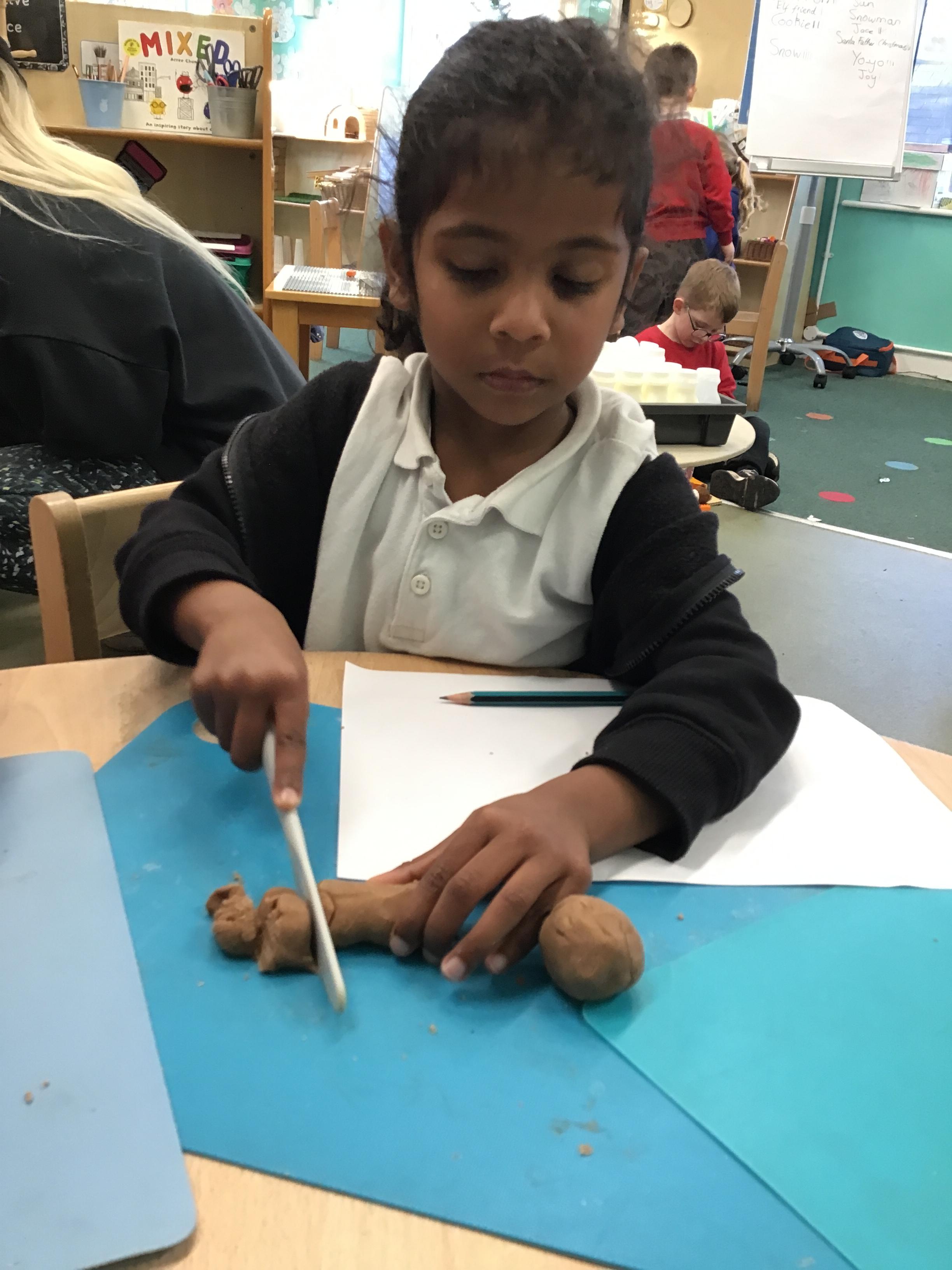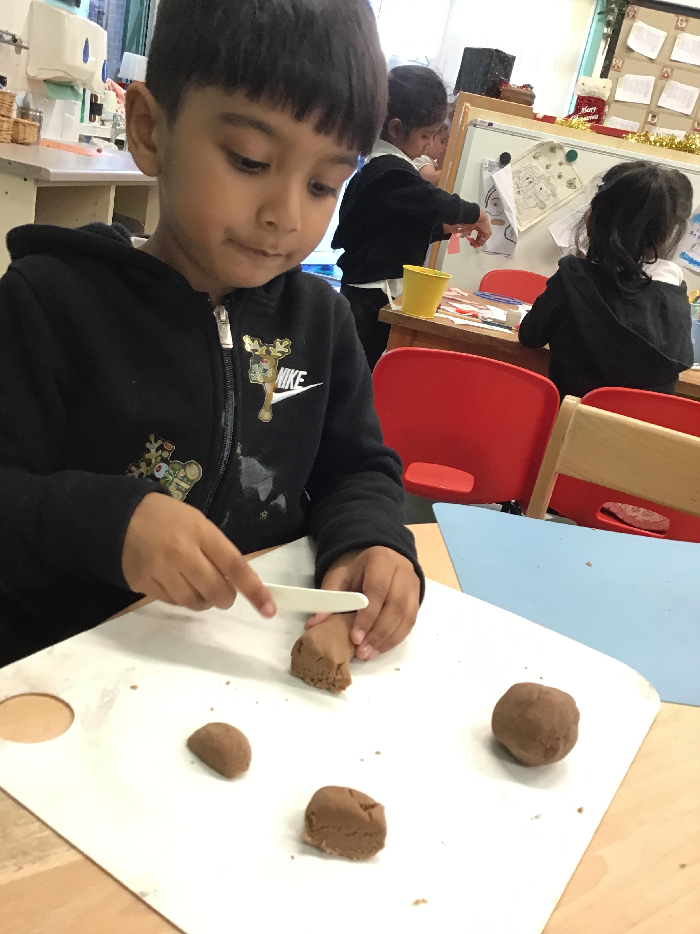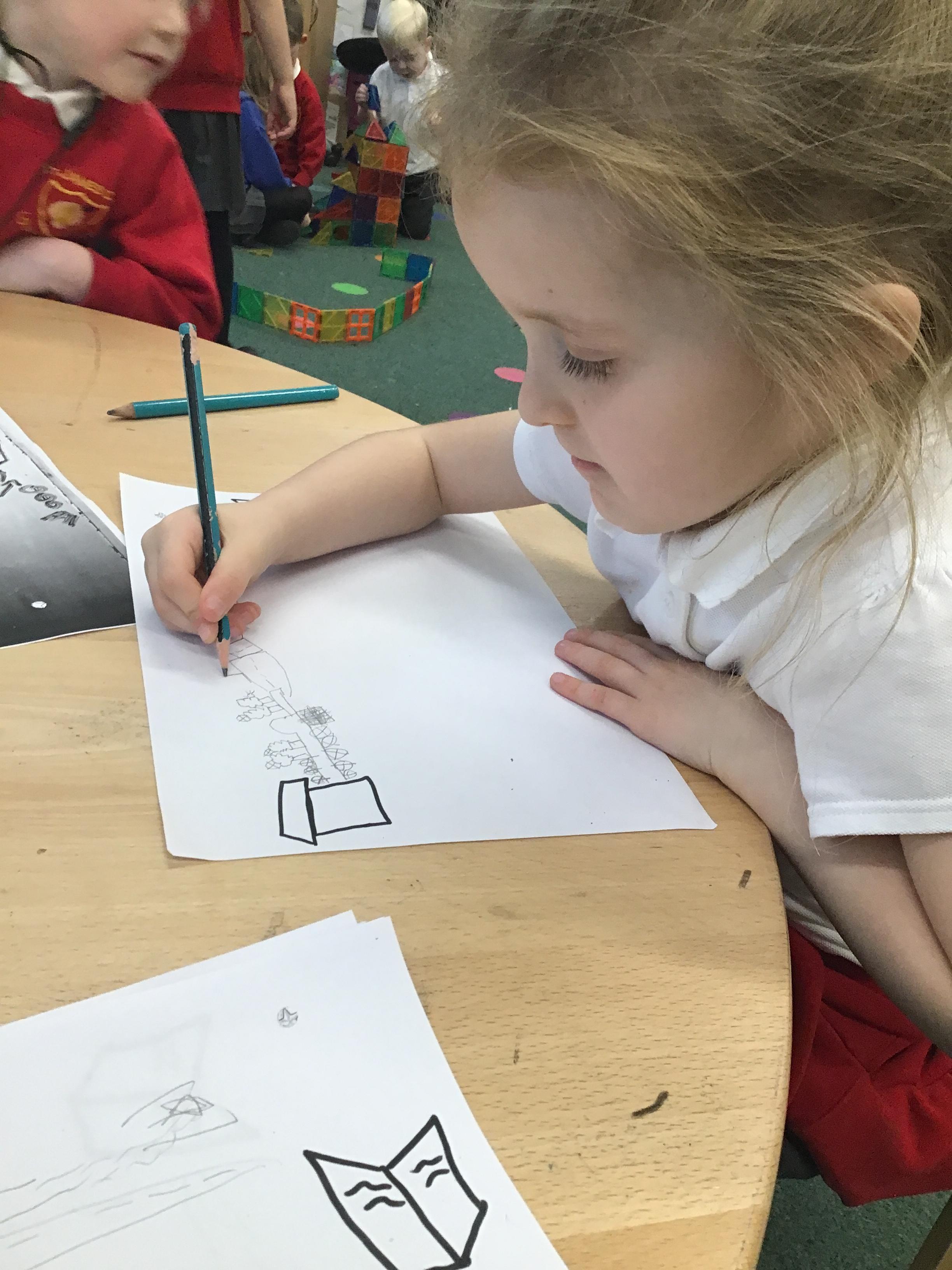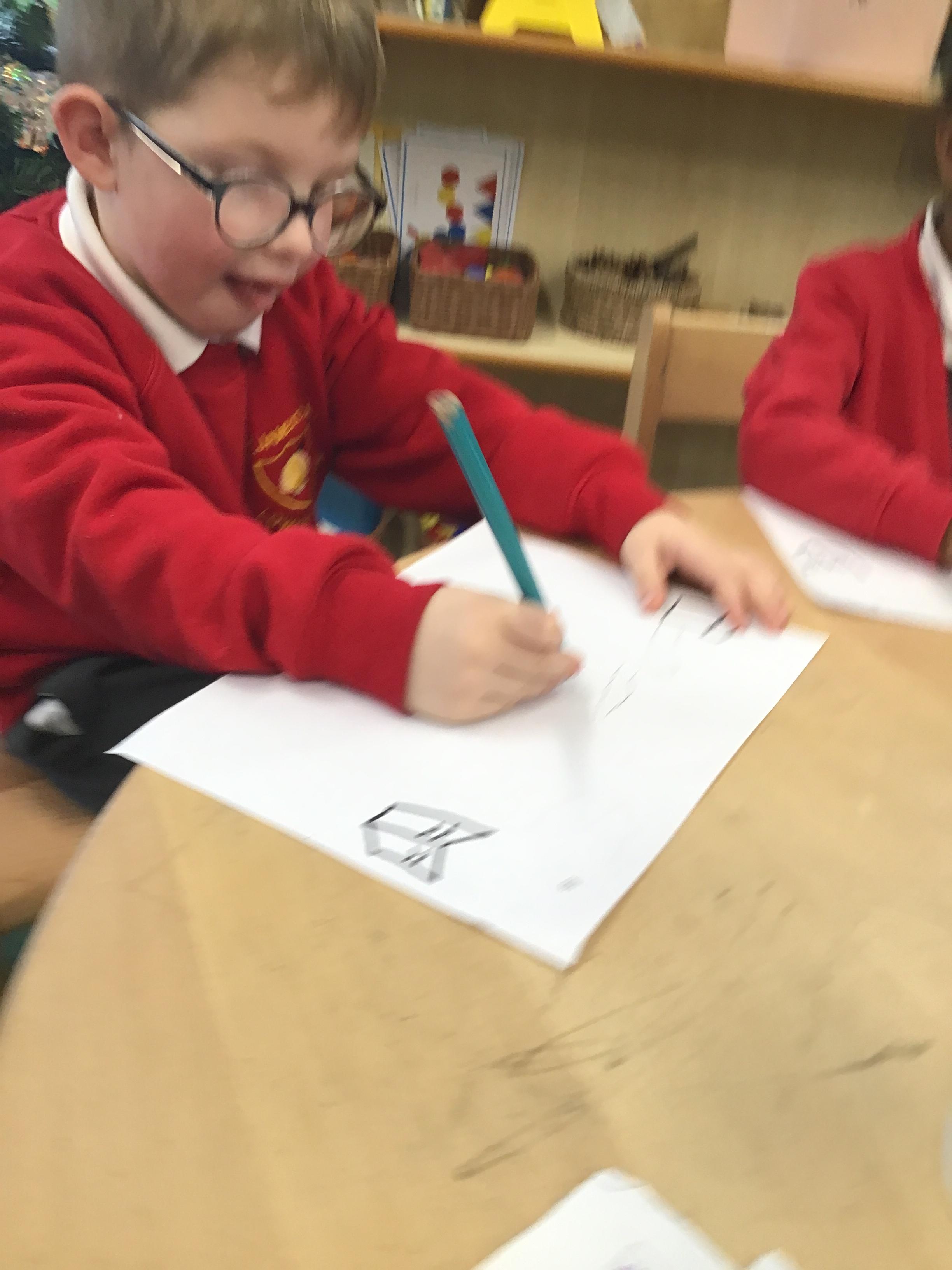 In maths we have been exploring shapes with 4 sides - squares and rectangles and in phonics we learned the sounds 'f' and 'ff'. We have also practised our cutting skills with knives and playdough and drew a map of our journey to the library.