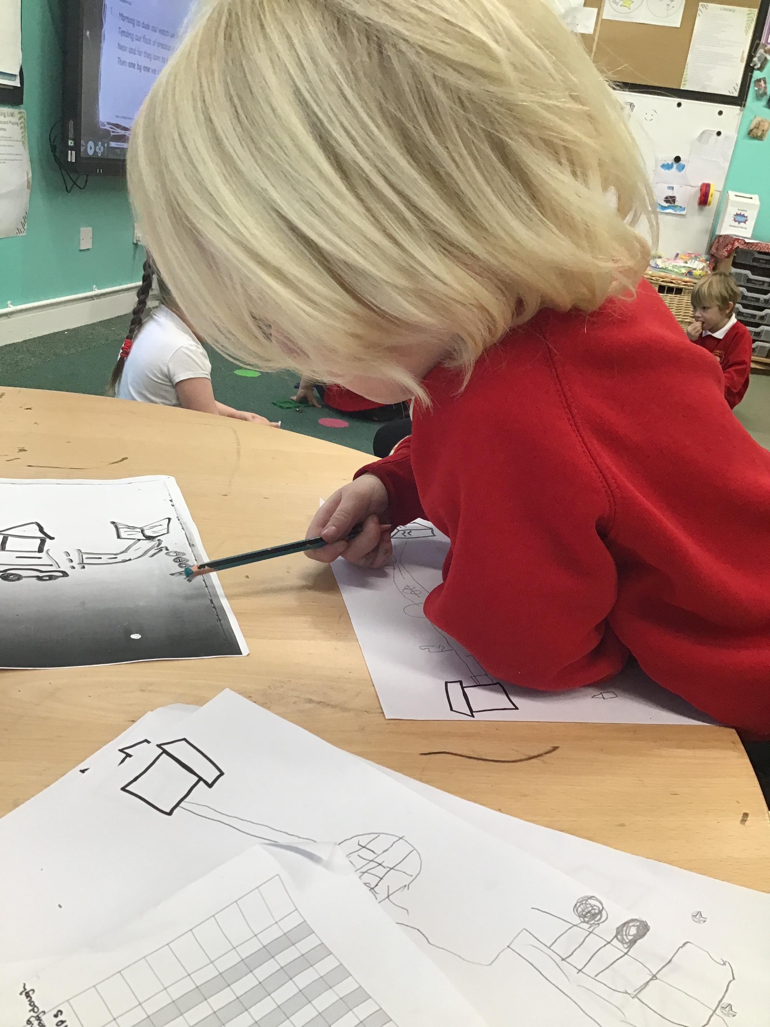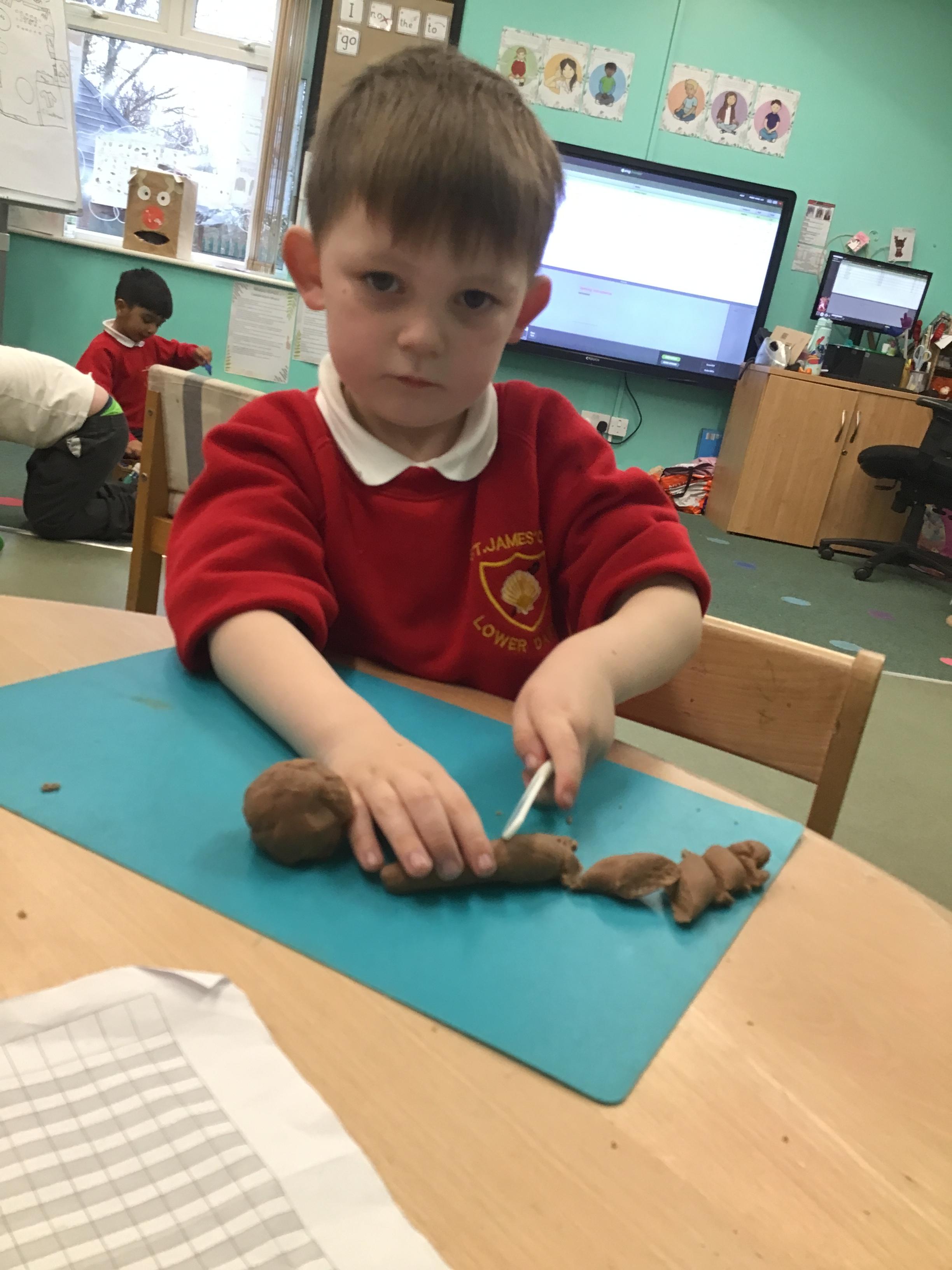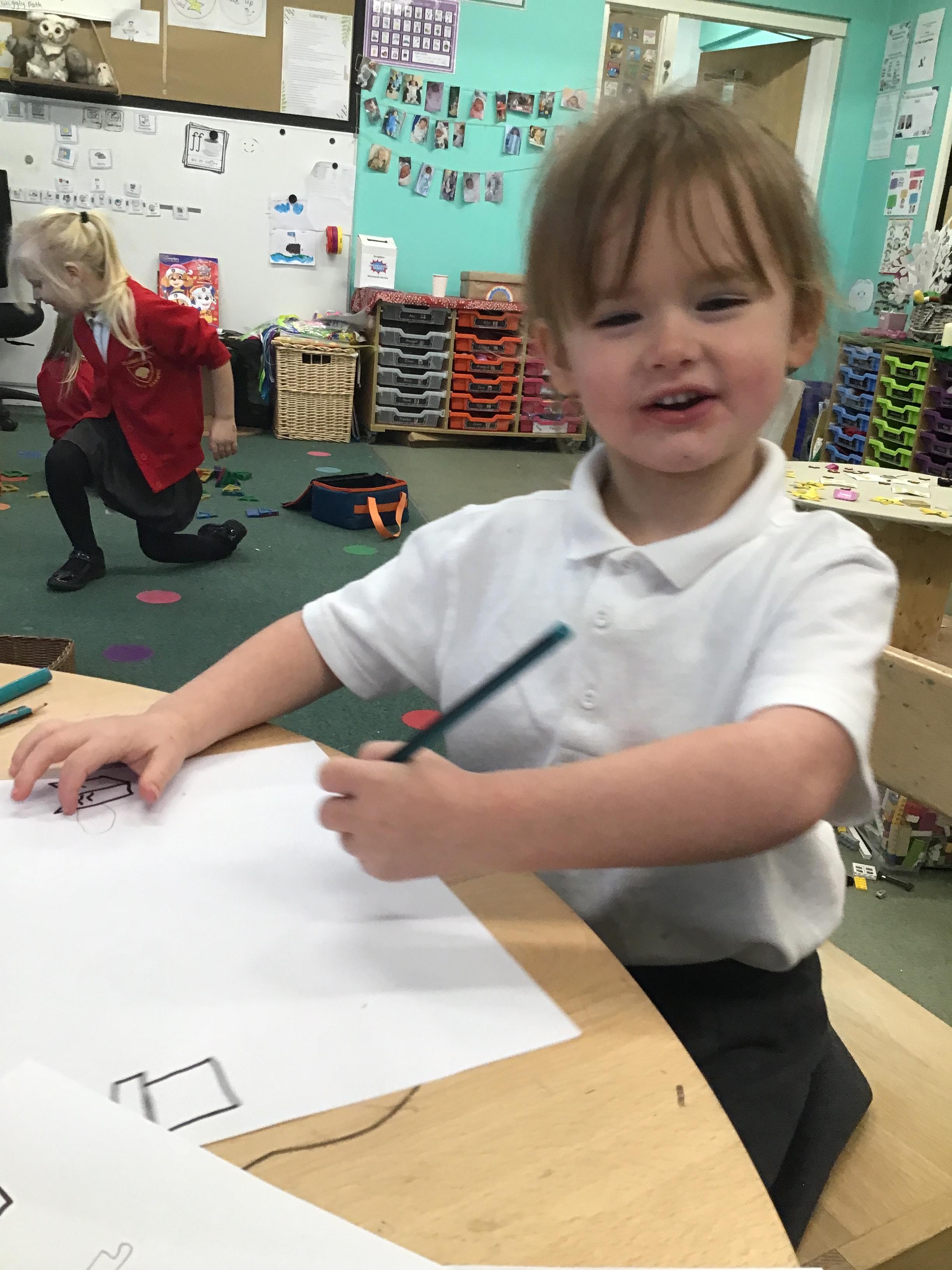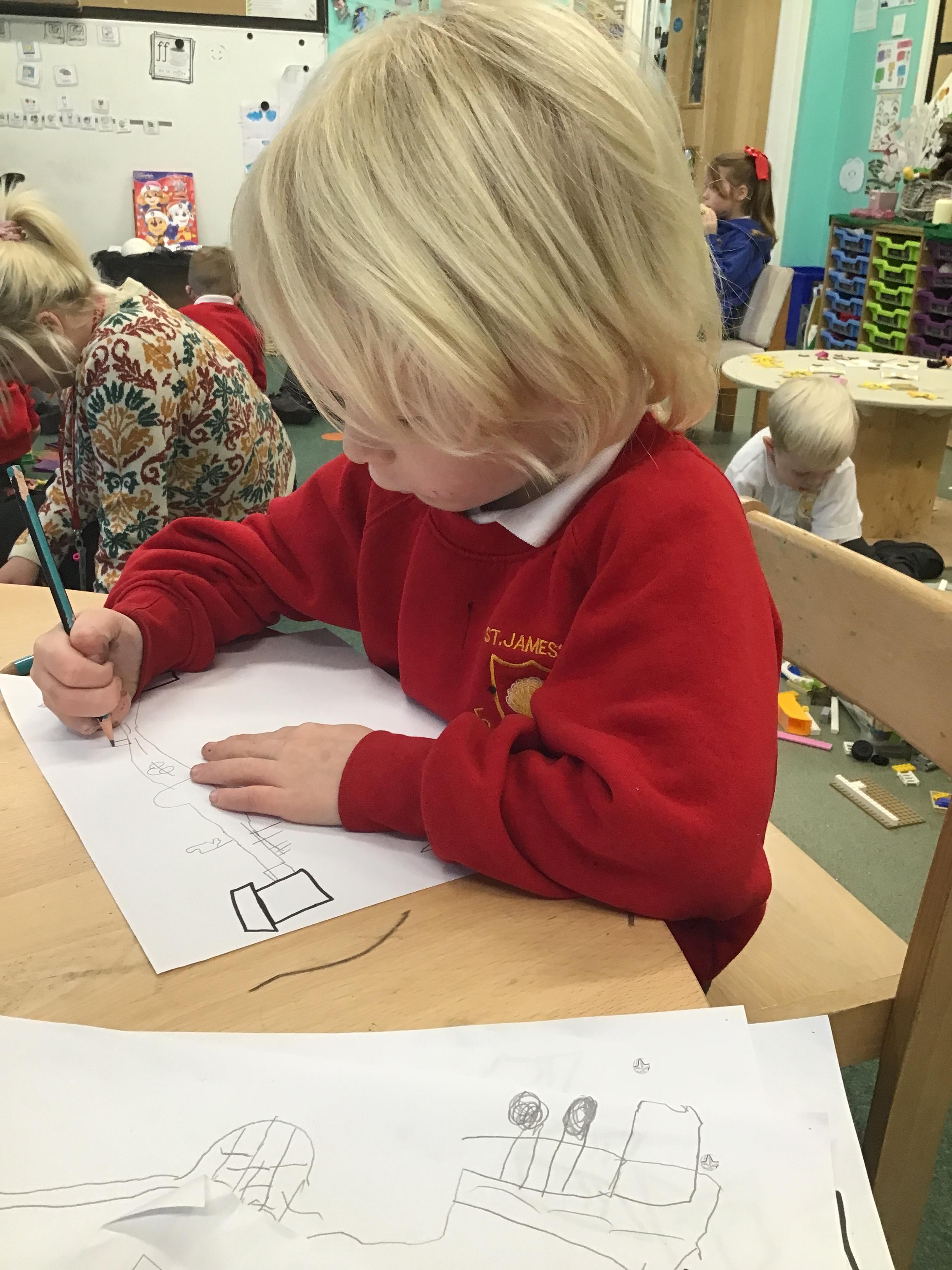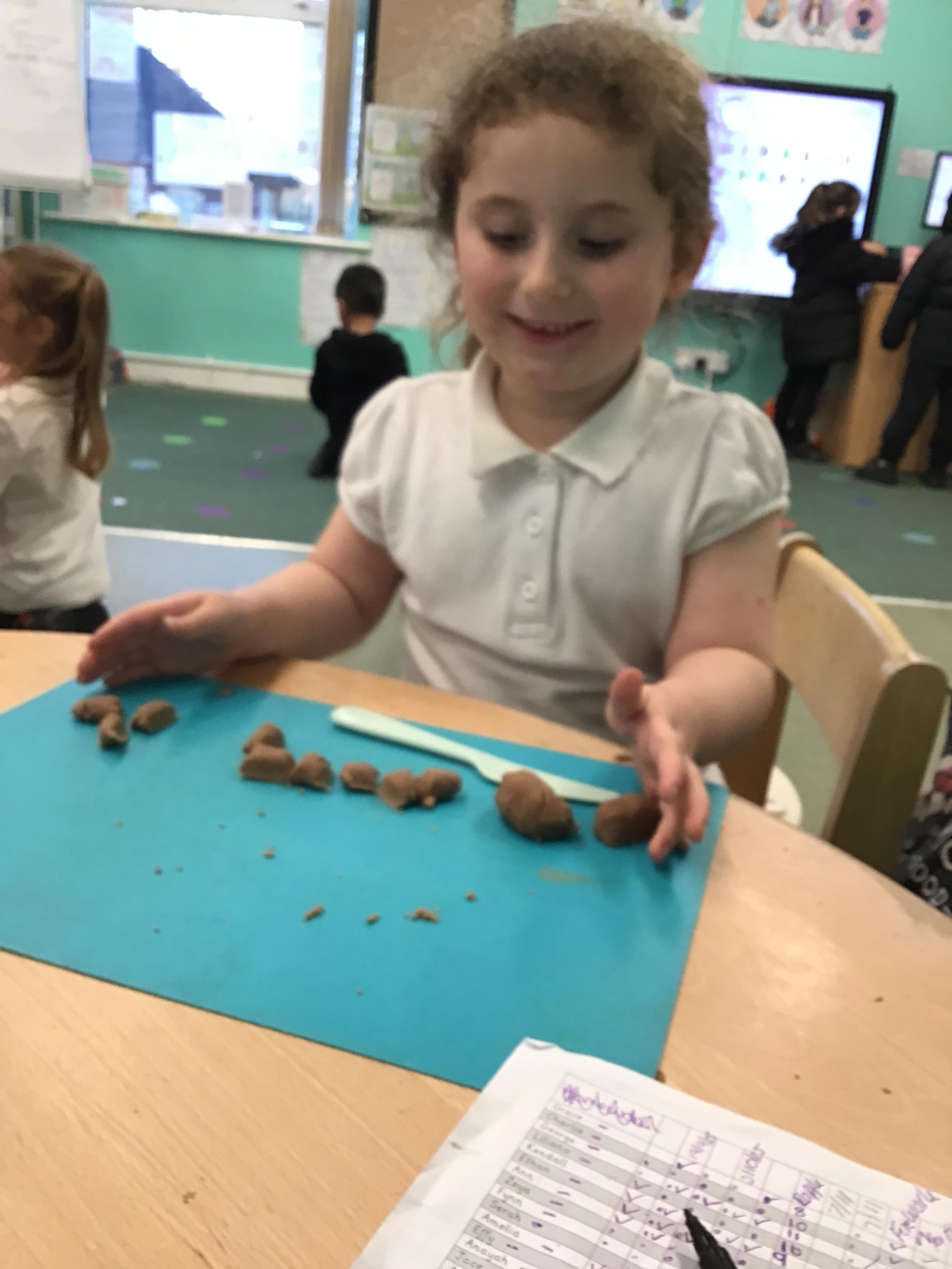 In maths we have been exploring shapes with 4 sides - squares and rectangles and in phonics we learned the sounds 'f' and 'ff'. We have also practised our cutting skills with knives and playdough and drew a map of our journey to the library.