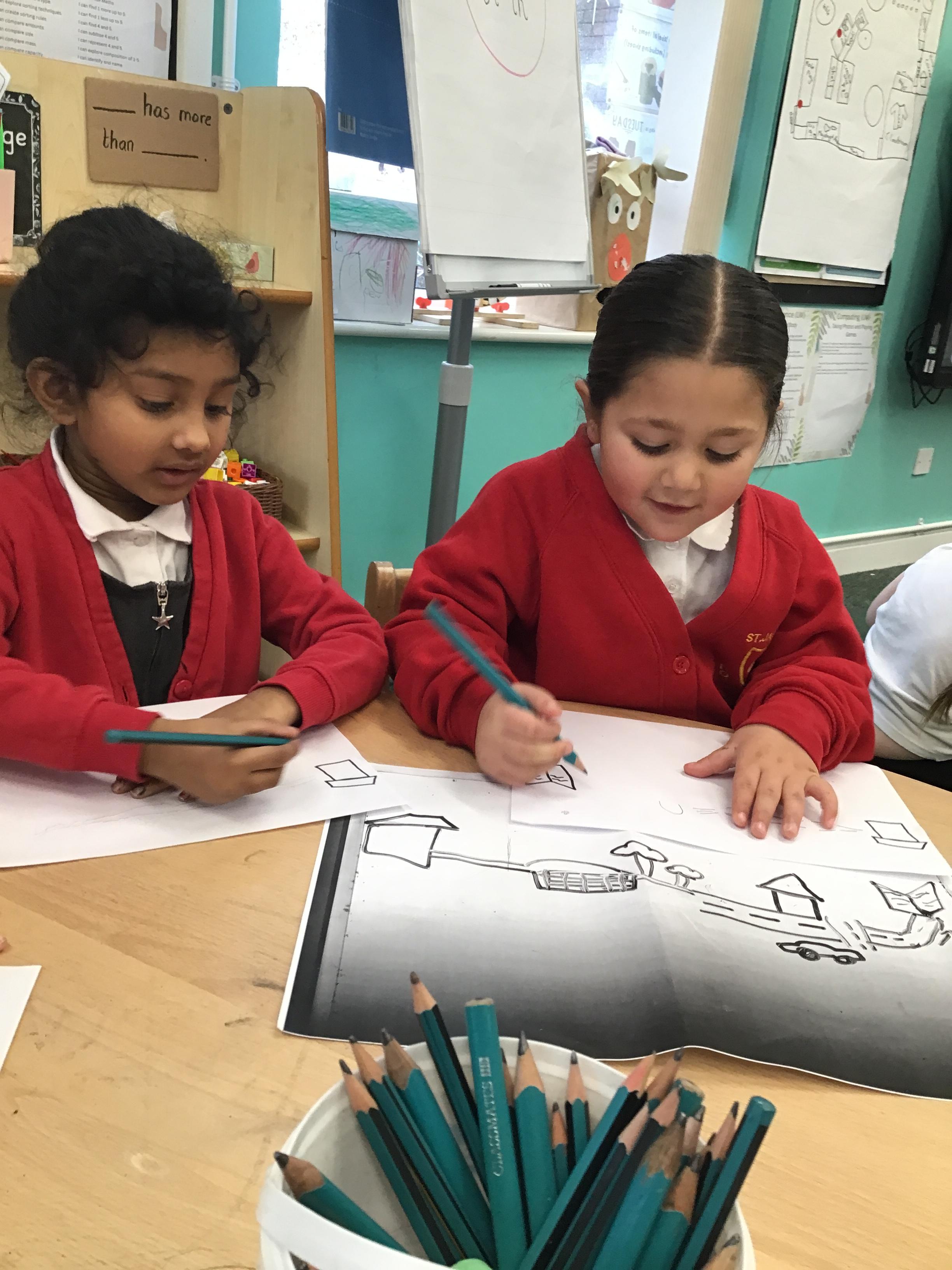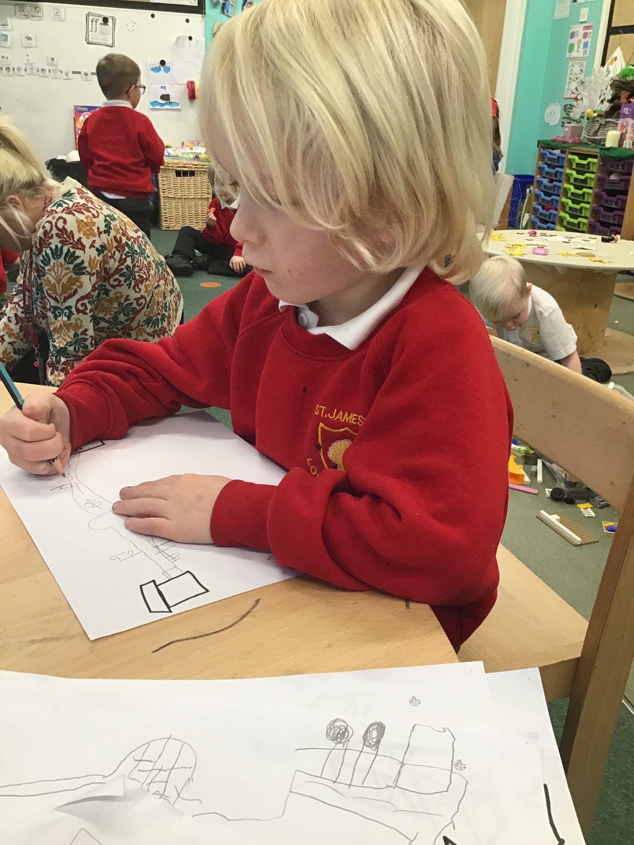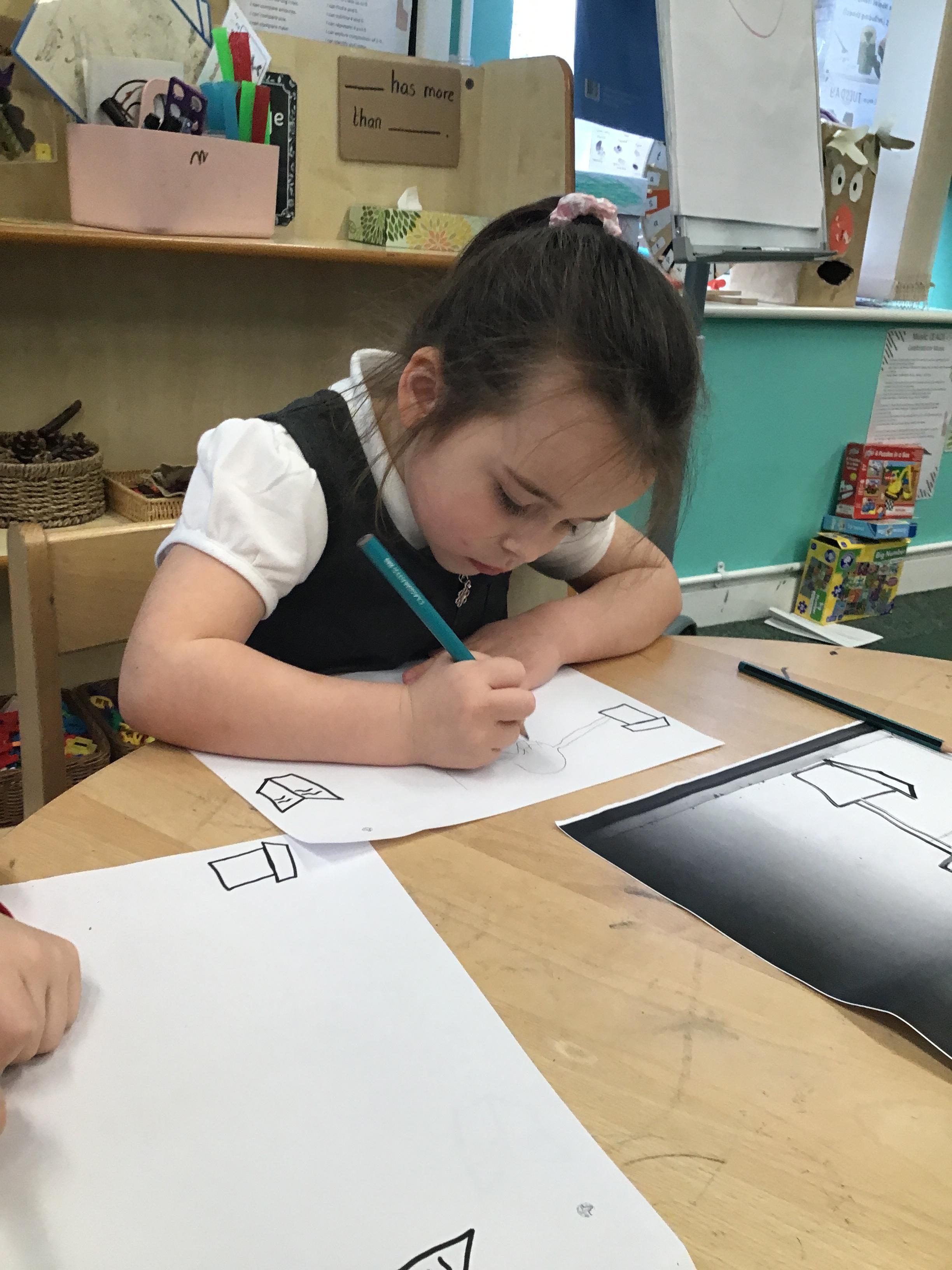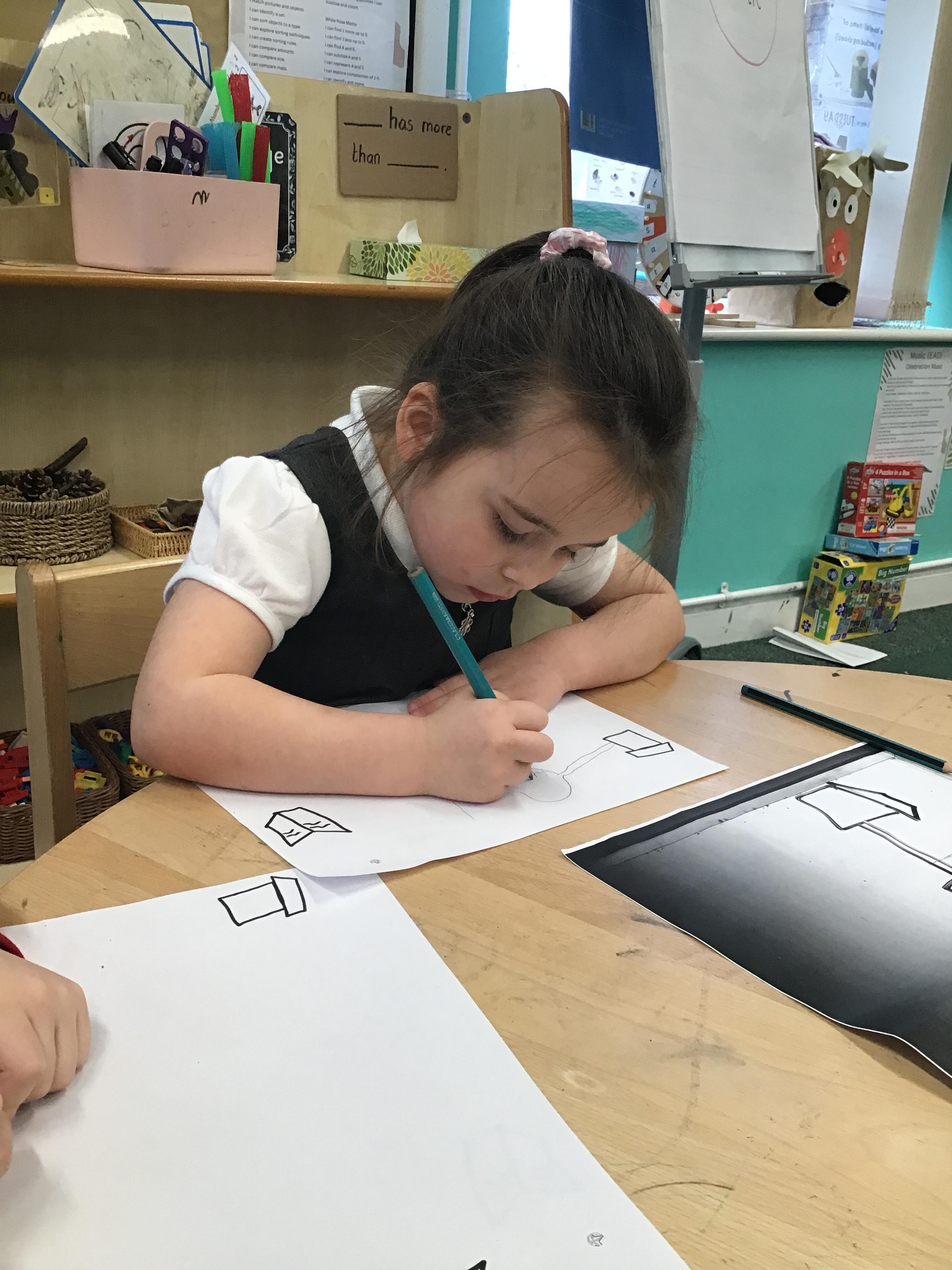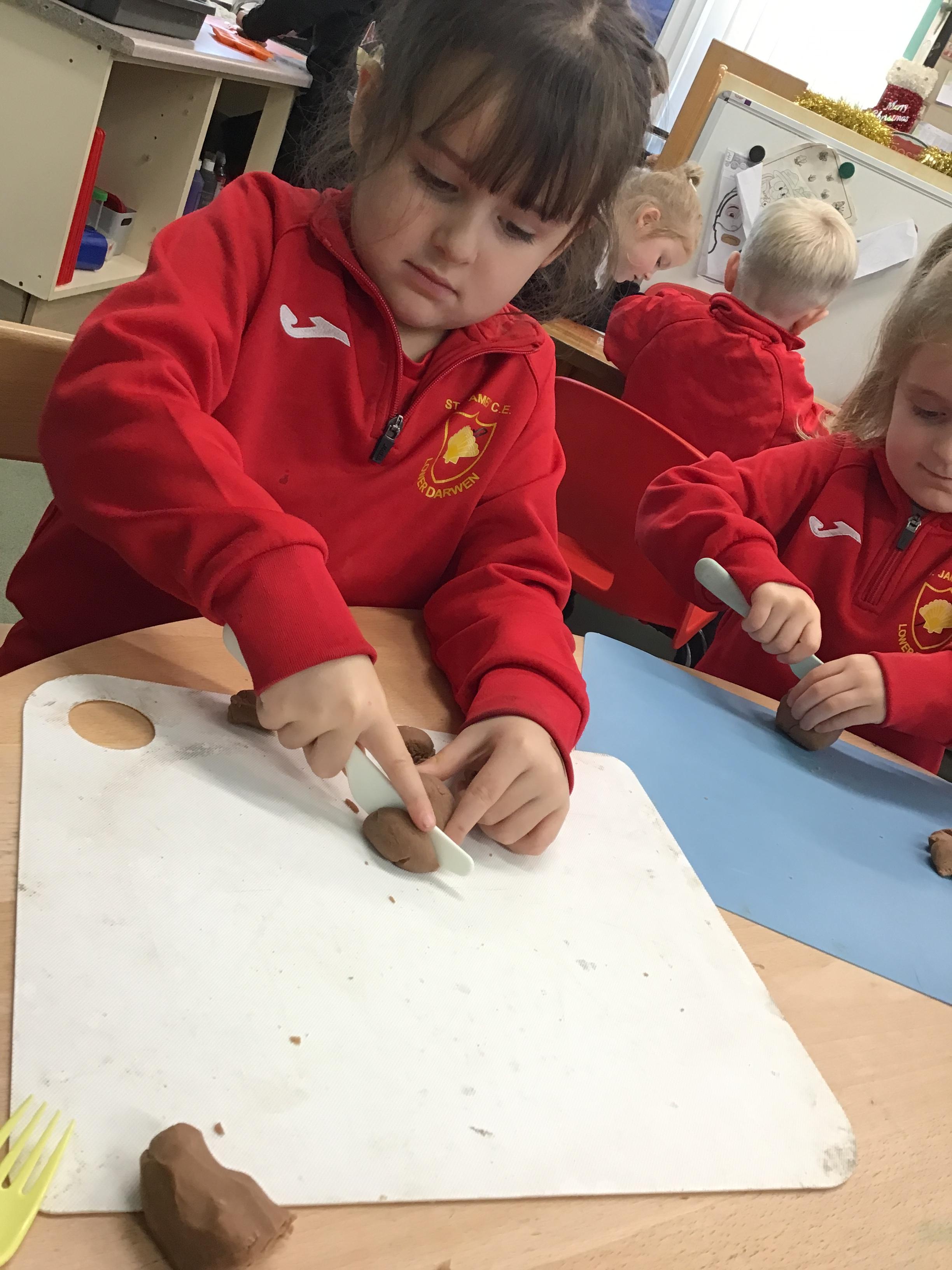 In maths we have been exploring shapes with 4 sides - squares and rectangles and in phonics we learned the sounds 'f' and 'ff'. We have also practised our cutting skills with knives and playdough and drew a map of our journey to the library.