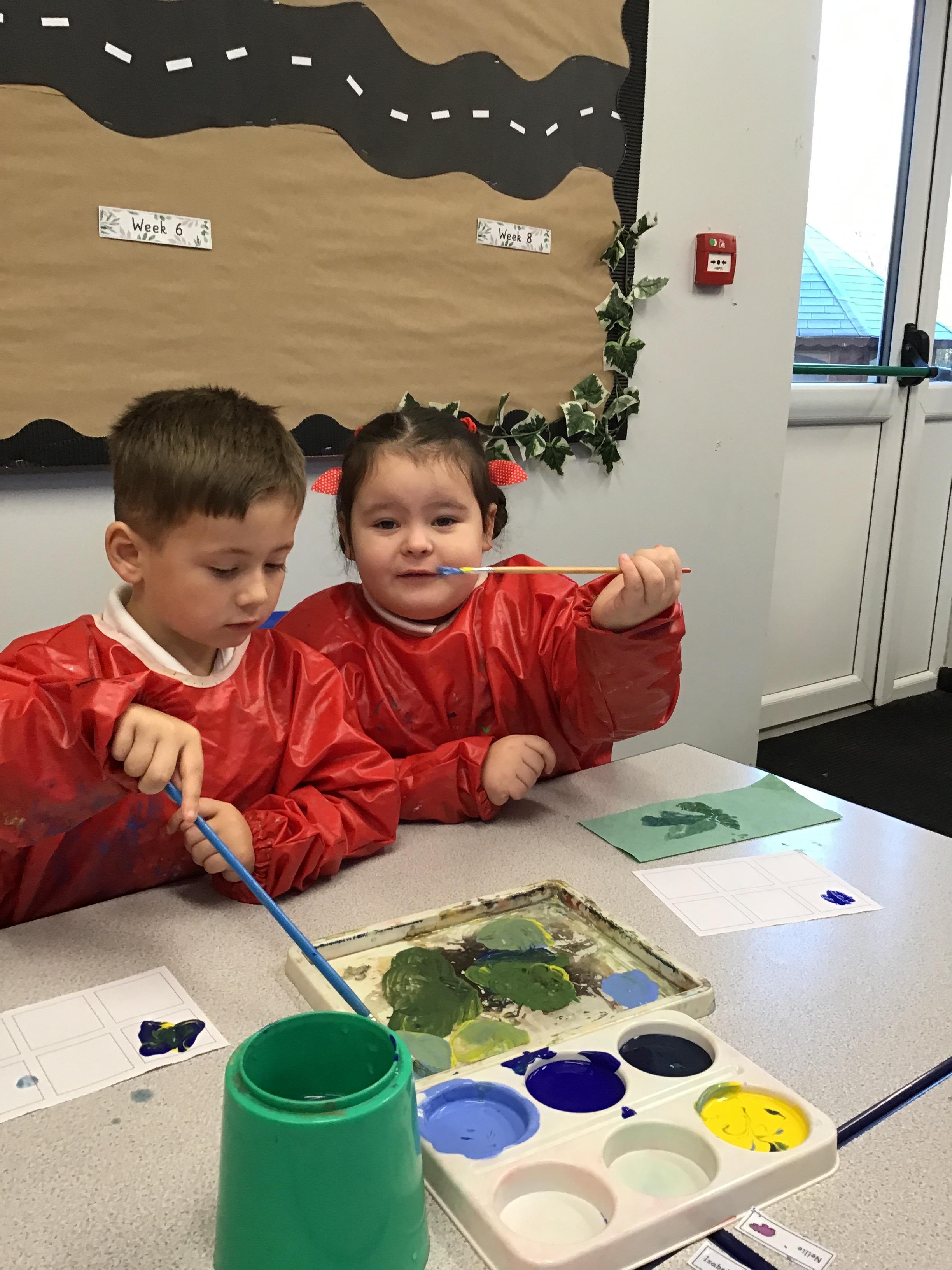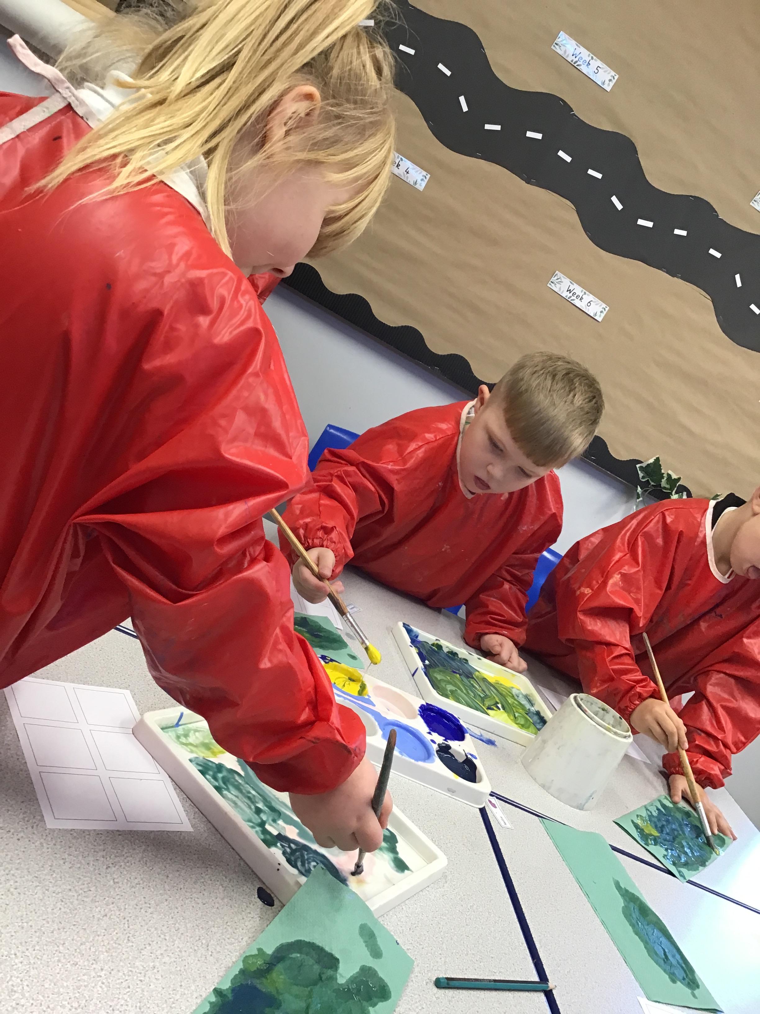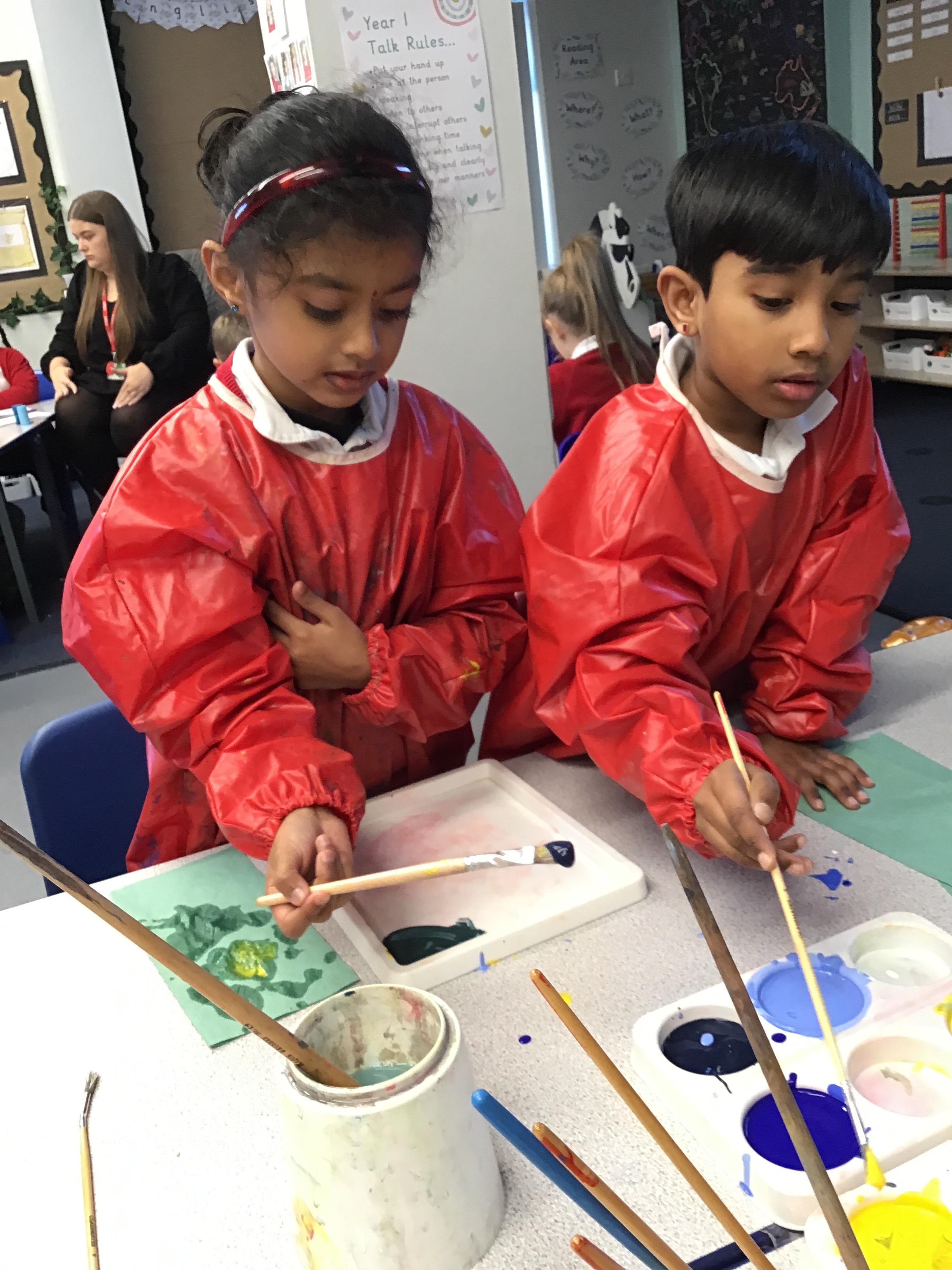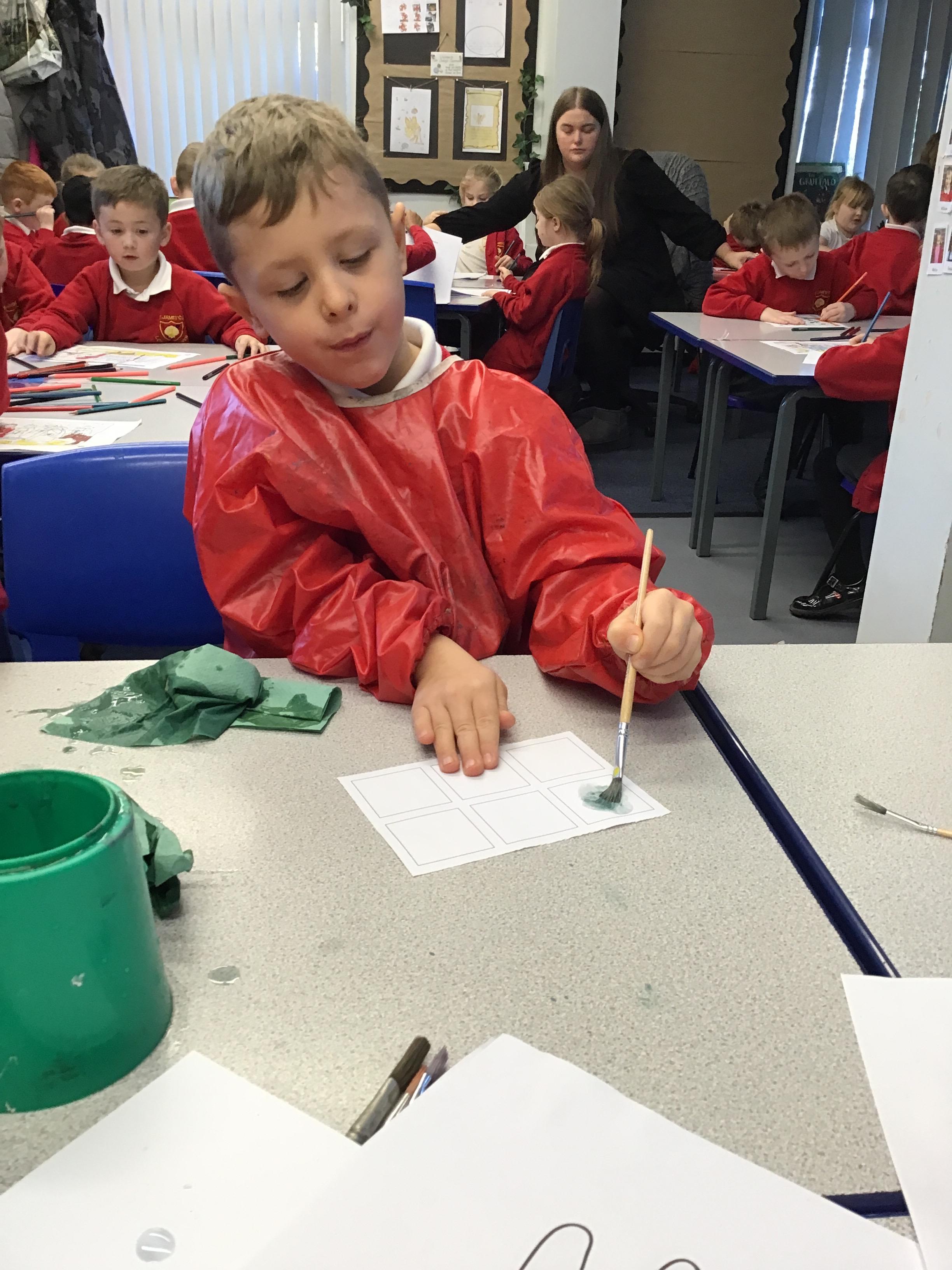 This week we have learnt how to mix two primary colours to make a secondary colour. We mixed blue and yellow to make green. However. we used different shades and amounts of blue and yellow to create six different shades of green. We then put these onto an outline of our hand, using all of the different shades that we had created.
