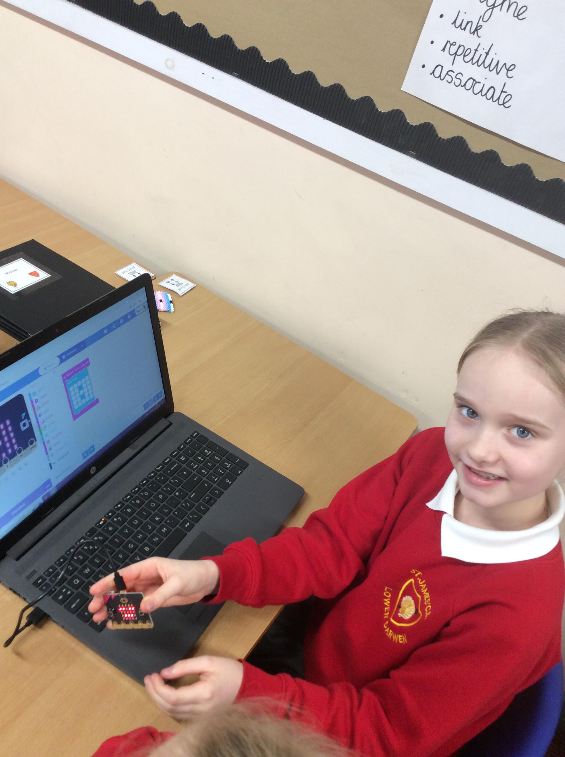 This week we have been working hard to complete our designs and programs for our wearable technology product. The criteria stated that it had to be a product to help two young children who walk to school. We had a range of products such as hats, keychains, pants, shoes, and bracelets. We absolutely loved using the iPads, laptops and microbits to create the products and bring our ideas to life!