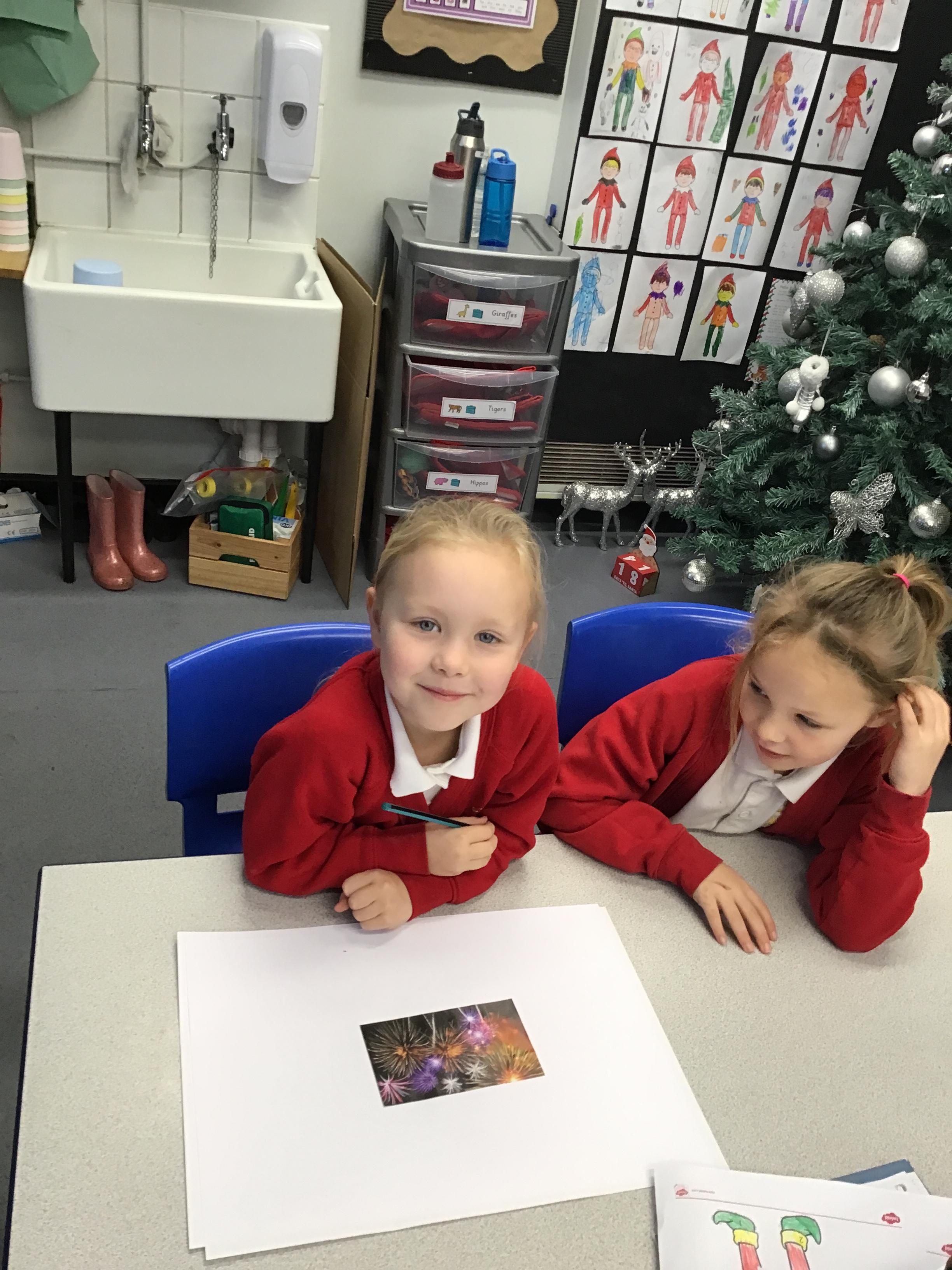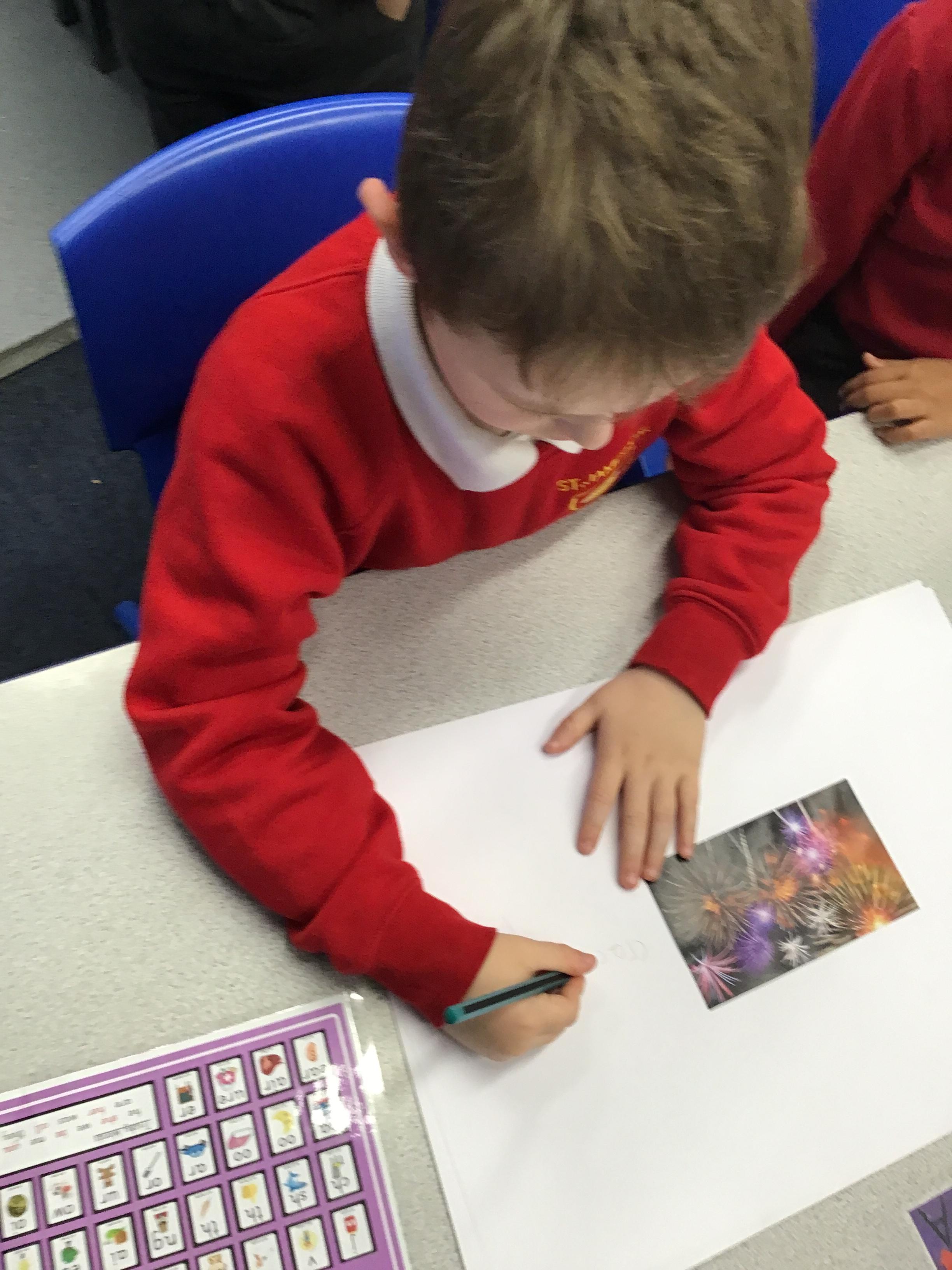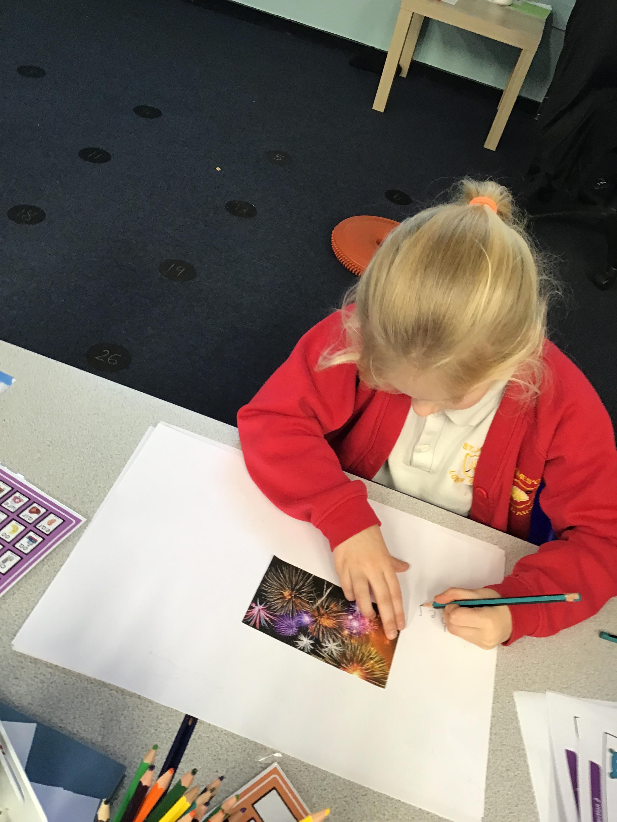 In English this week we have been looking at 'Firework Party' a poem that focuses on 'ed' word endings. We worked in groups to first of all, learn the poem and recite it with actions and then innovate the adjectives using visual prompts. We amazed Miss Whaley with some of our ideas/