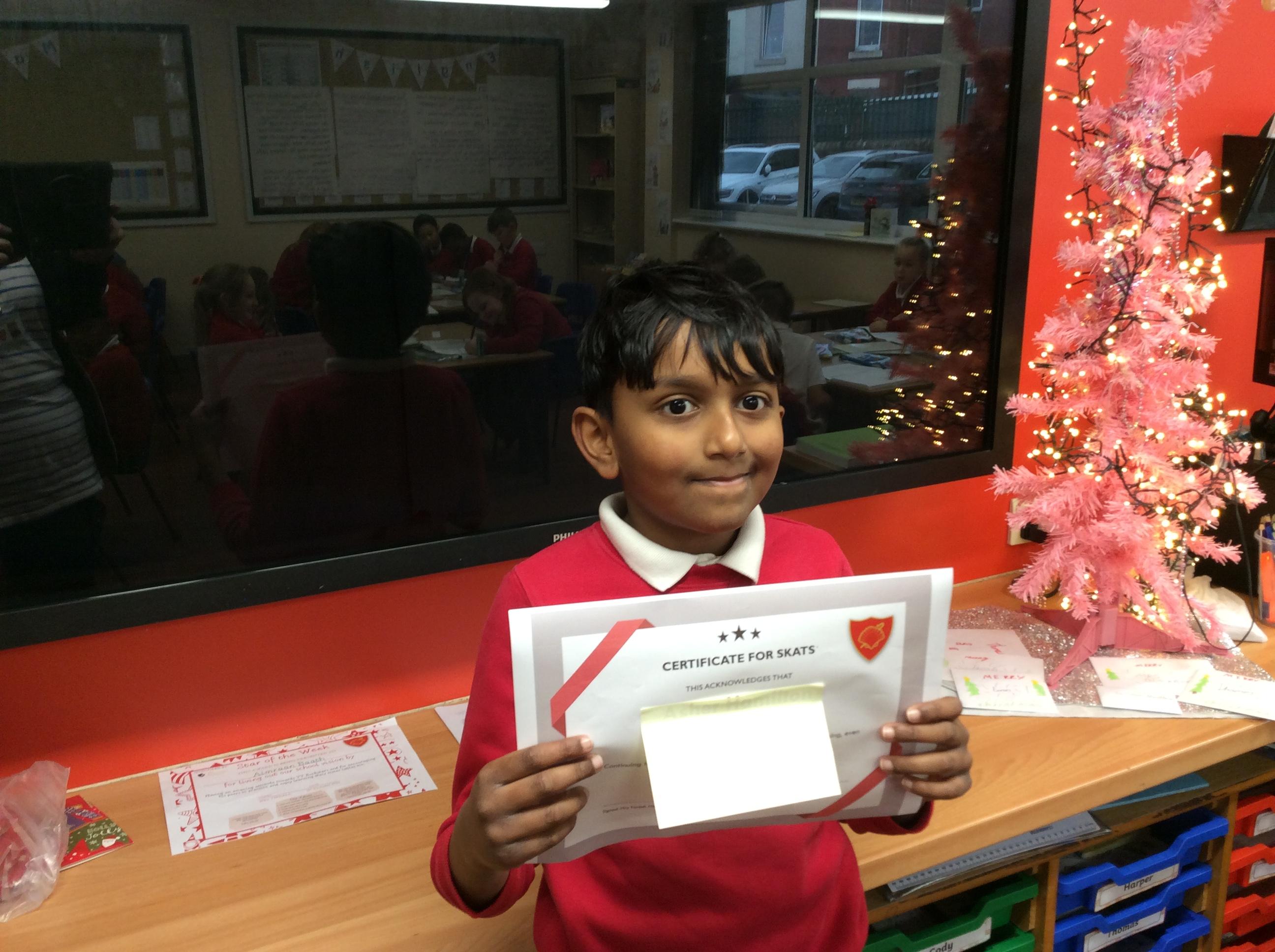 Our  SKAT winner is Asher who has been recognised for being able to persevere. Asher has continued to have a positive attitude towards all aspects of learning, even when he finds things challenging.