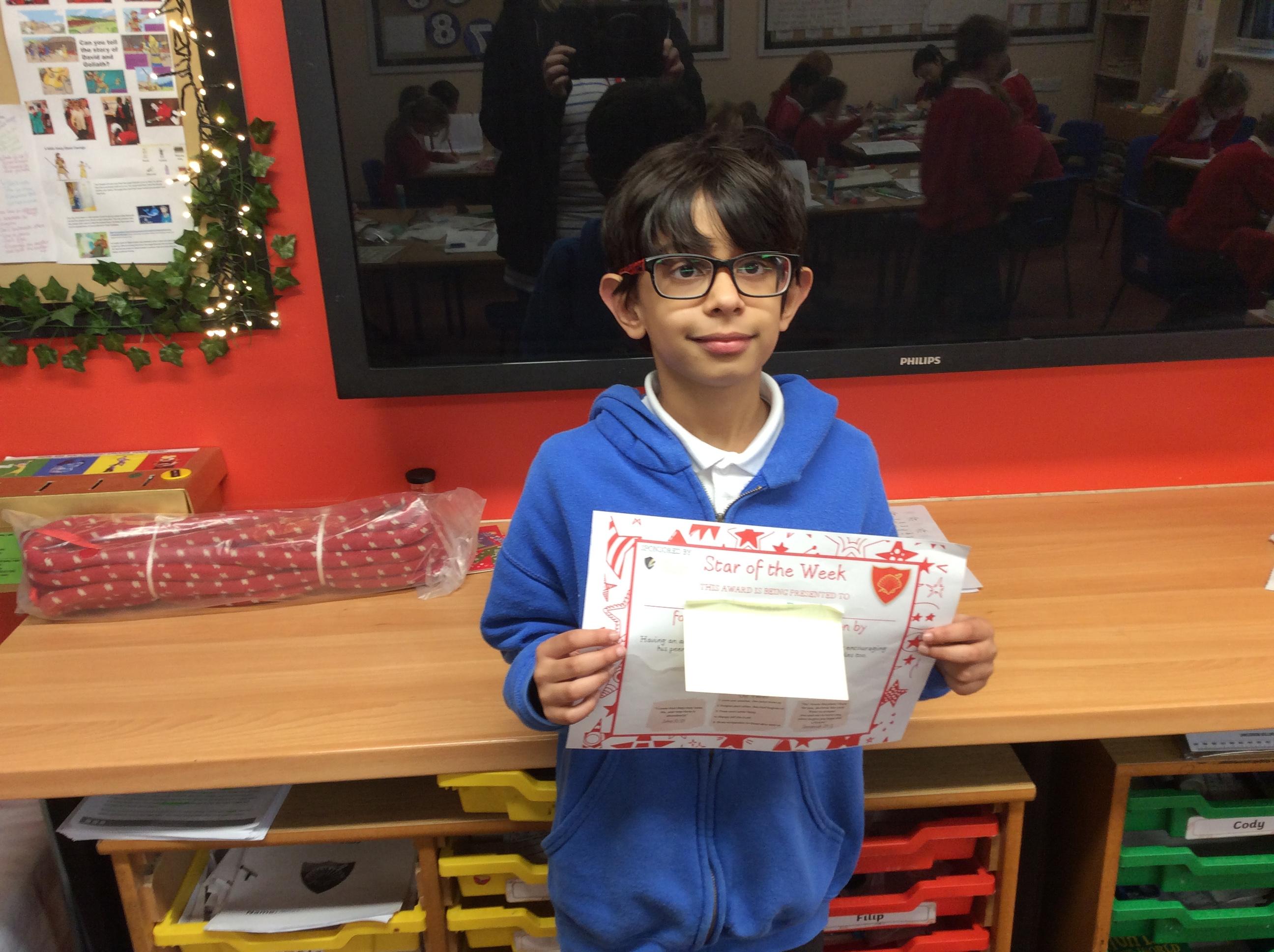 Well done Aimraan who is our star of the week, he has lived out our school vision by, having an amazing attitude towards TT rockstars and for encouraging his peers to practice and enjoy learning their times tables too.