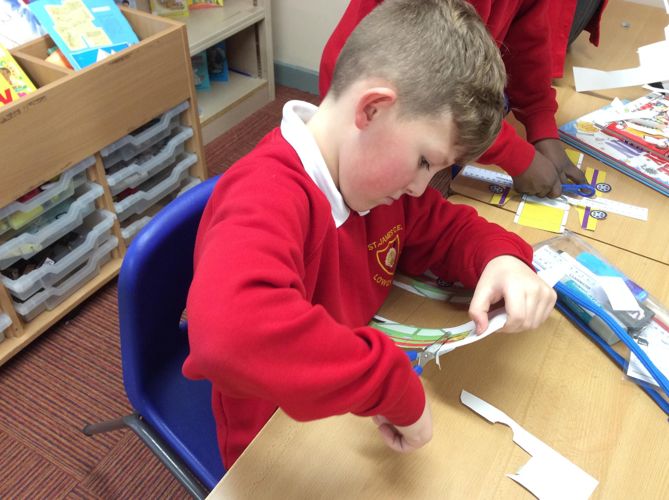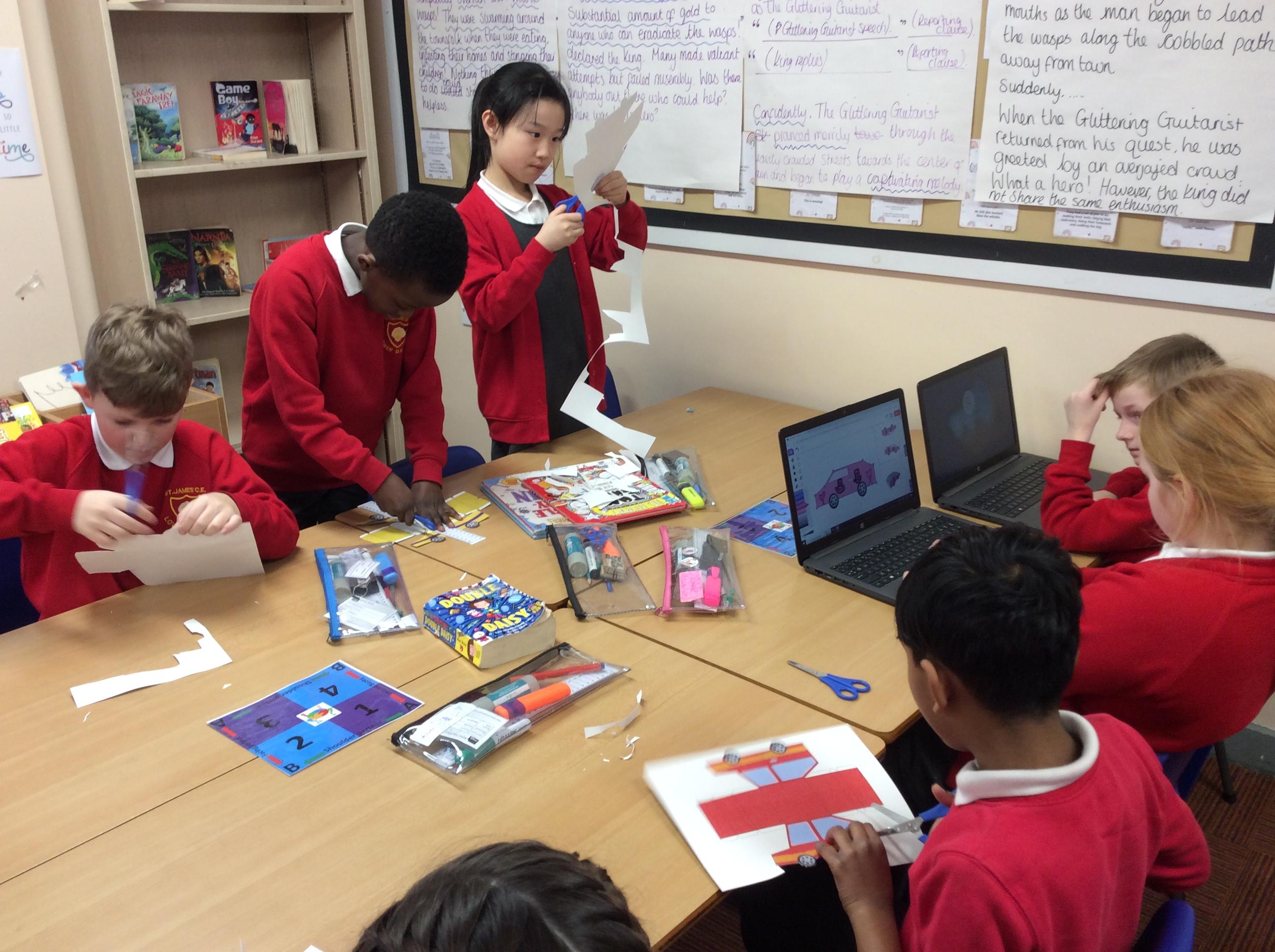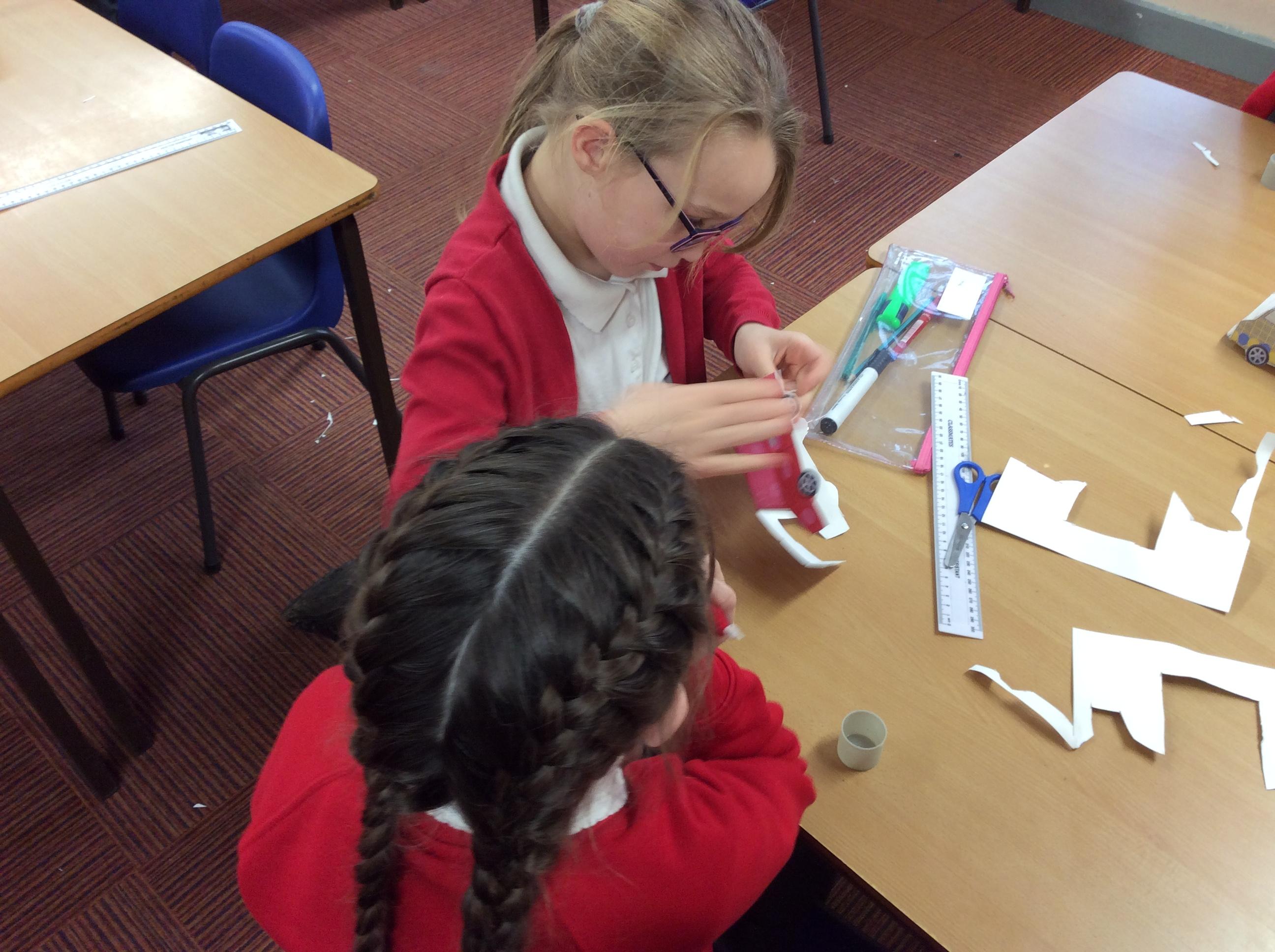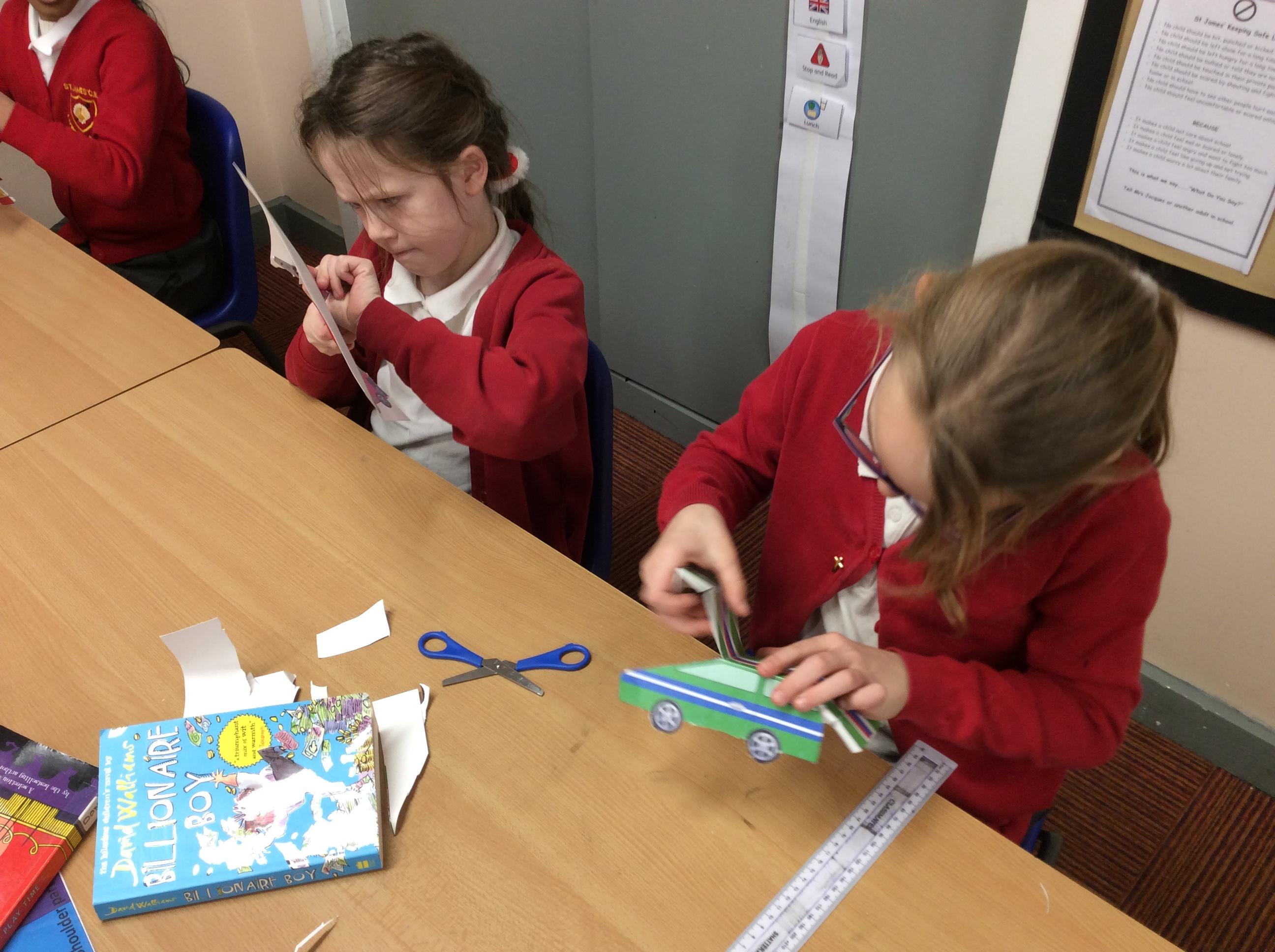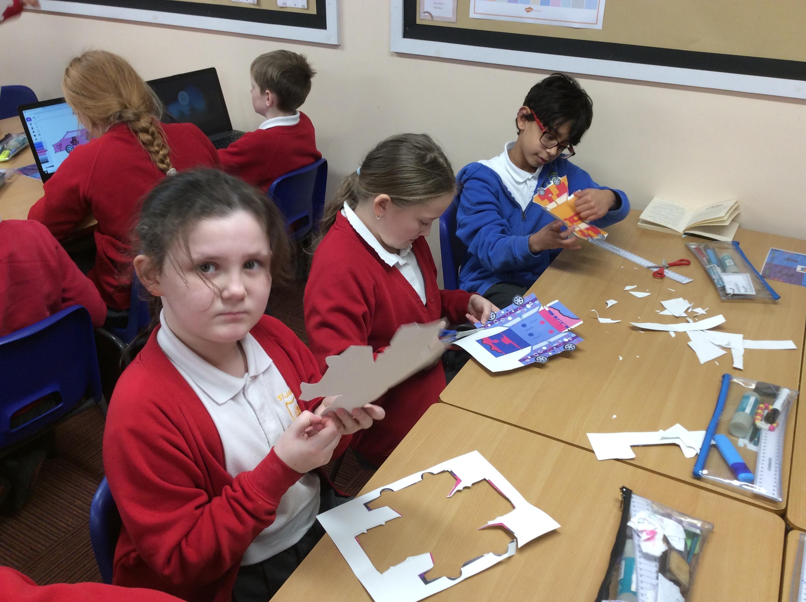 In our DT topic we have designed a car using a net grid, we then used card to build our cars. It was tricky to score the card and fold in all the right places but we used great perseverance and team work. The cars looked fantastic in the end.