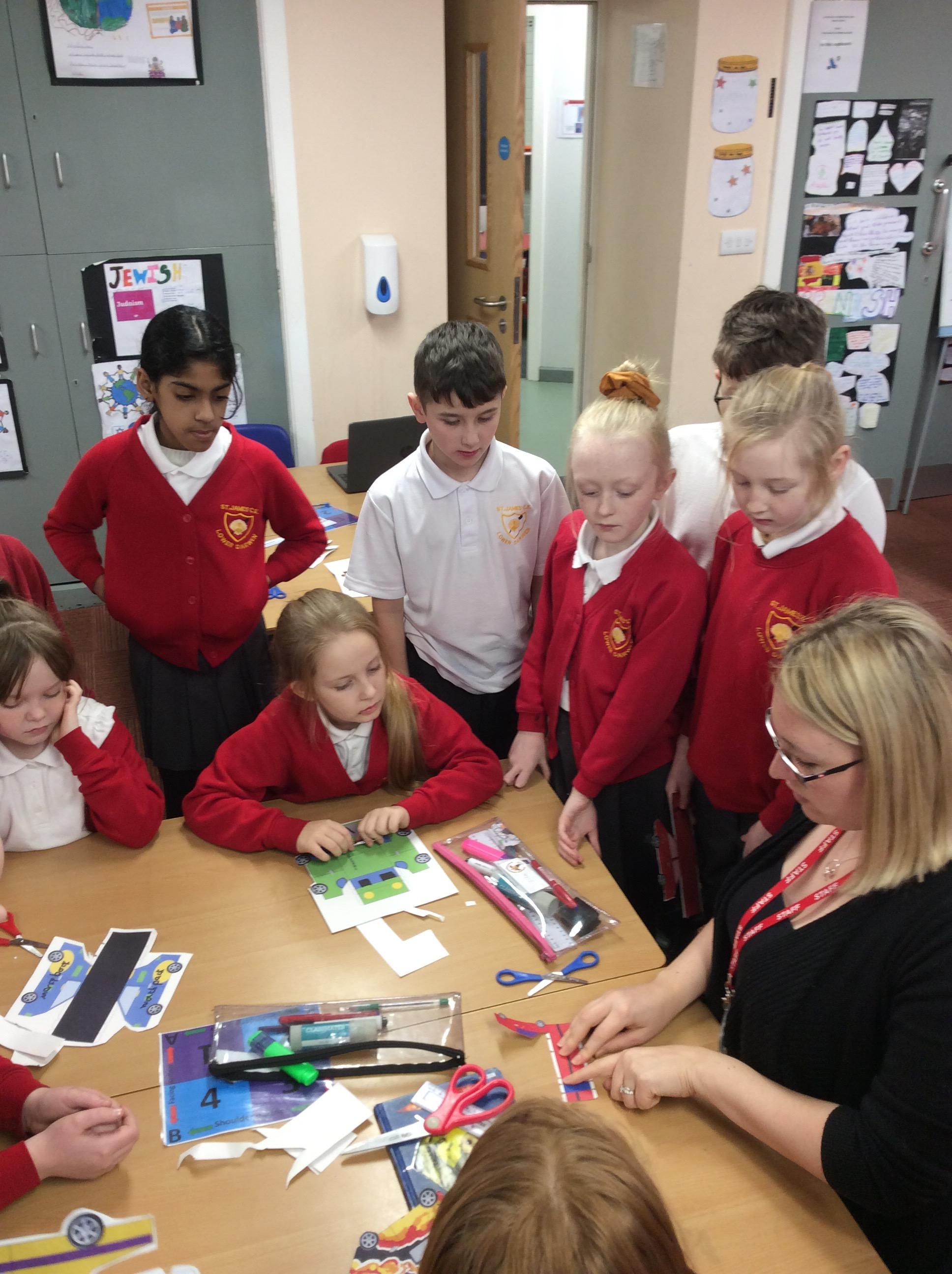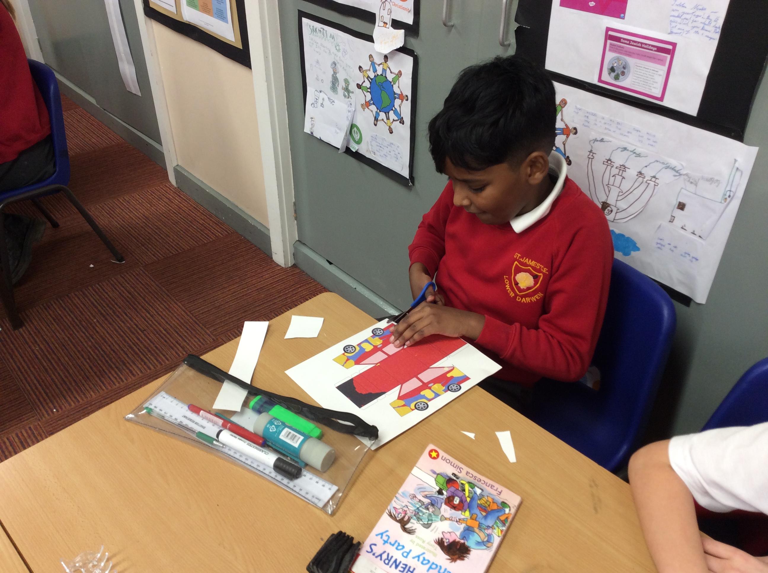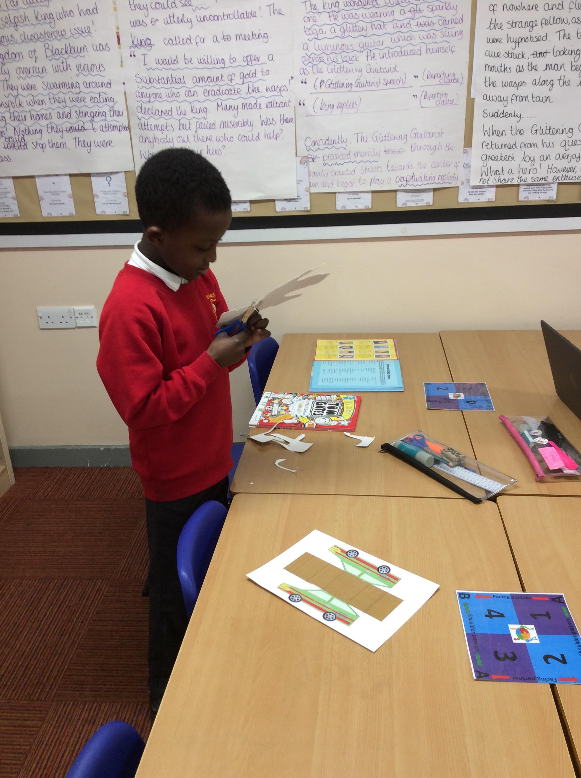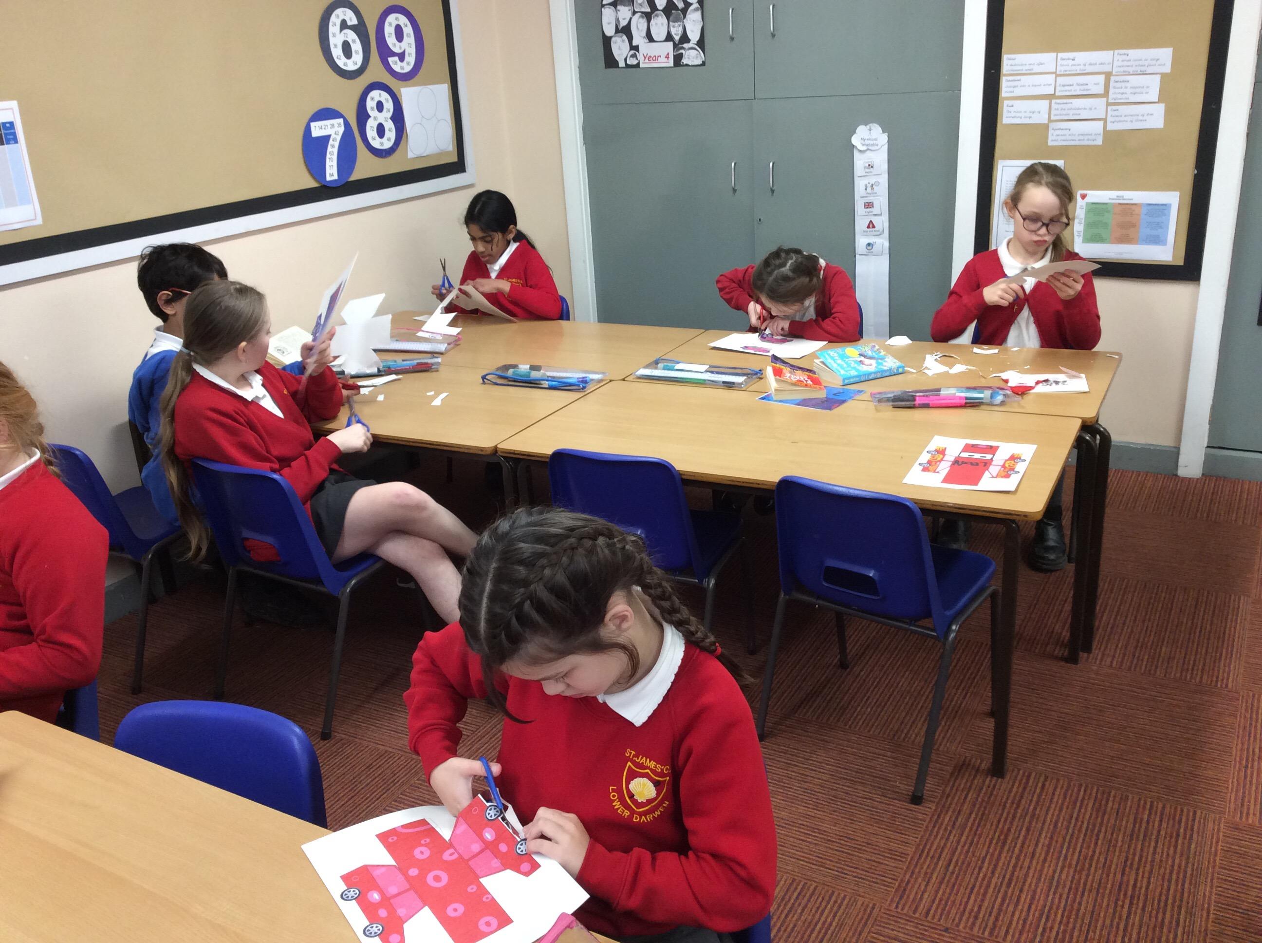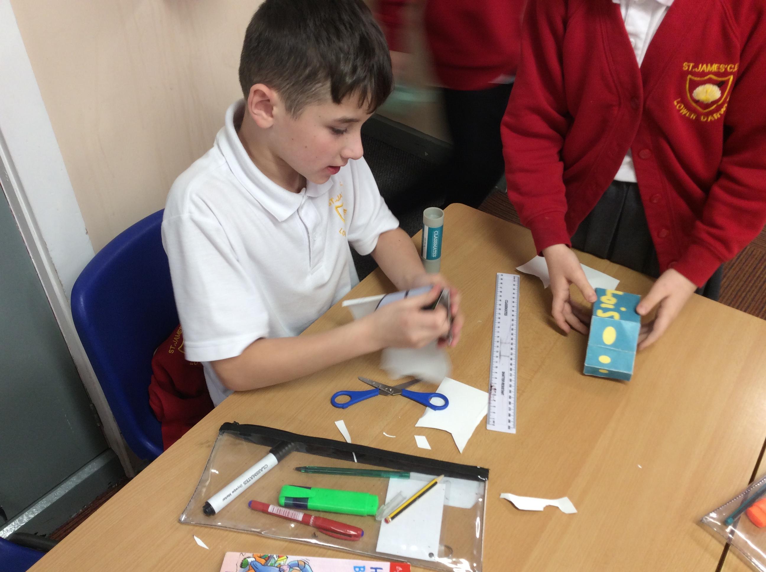 In our DT topic we have designed a car using a net grid, we then used card to build our cars. It was tricky to score the card and fold in all the right places but we used great perseverance and team work. The cars looked fantastic in the end.