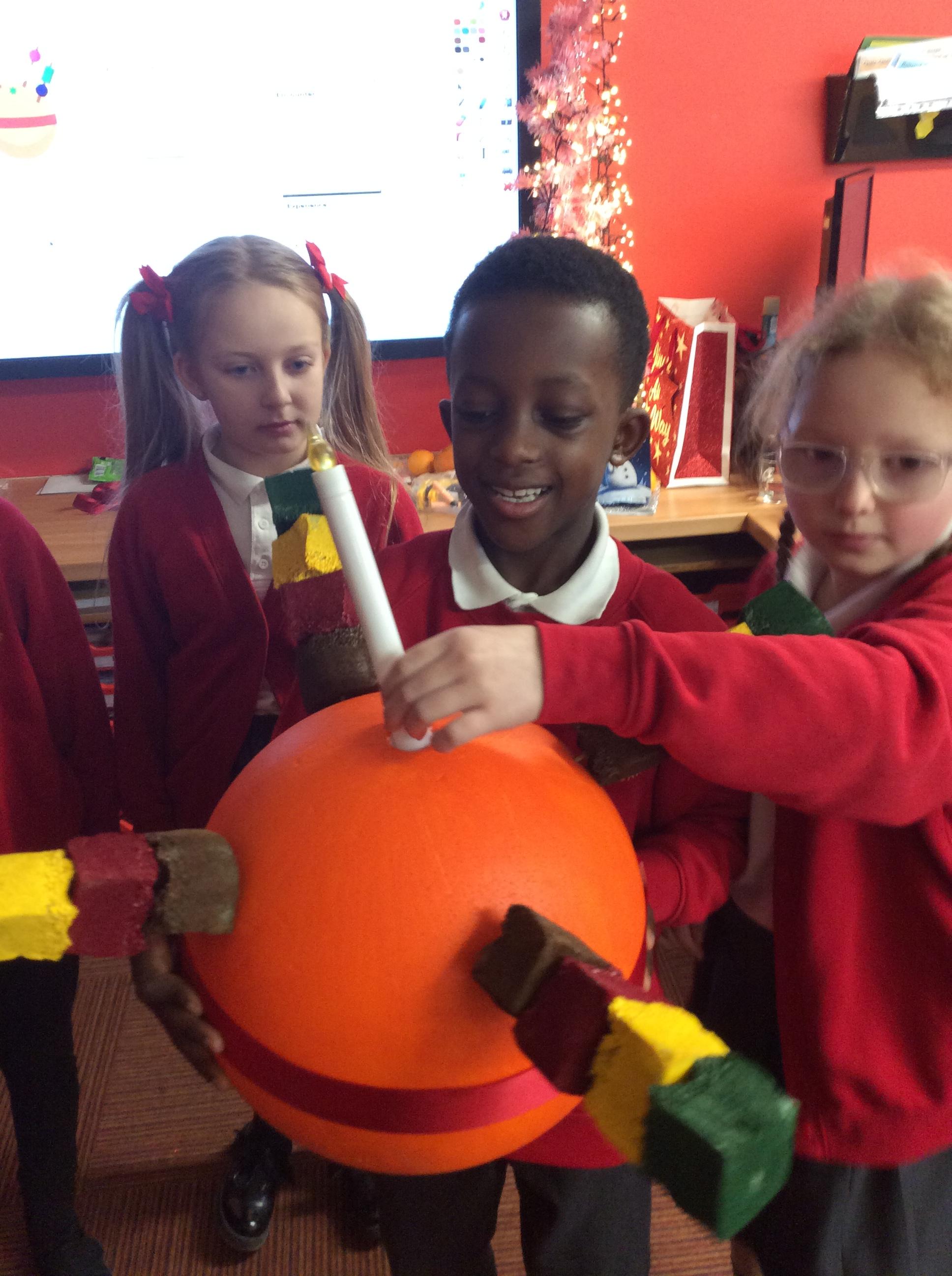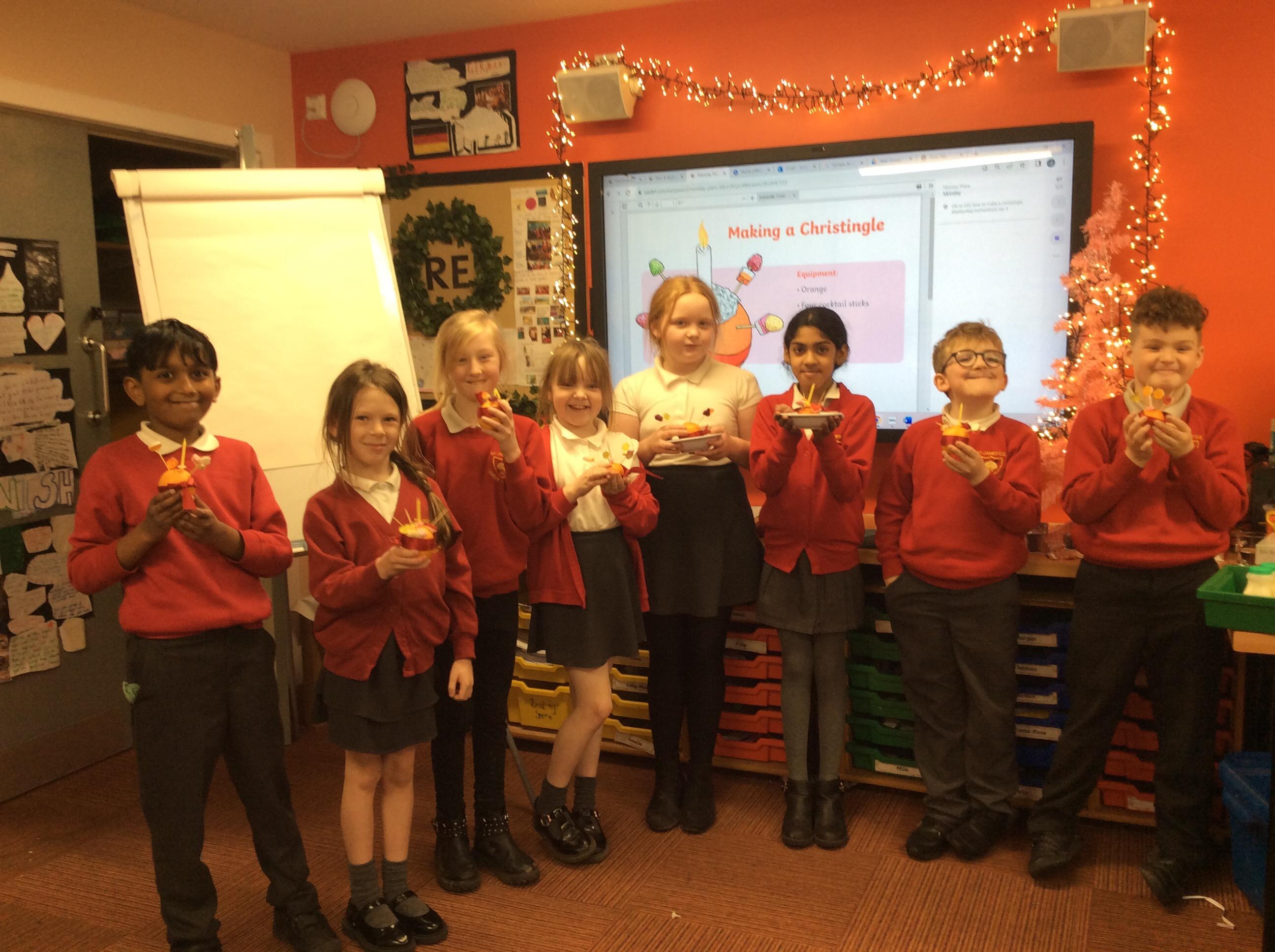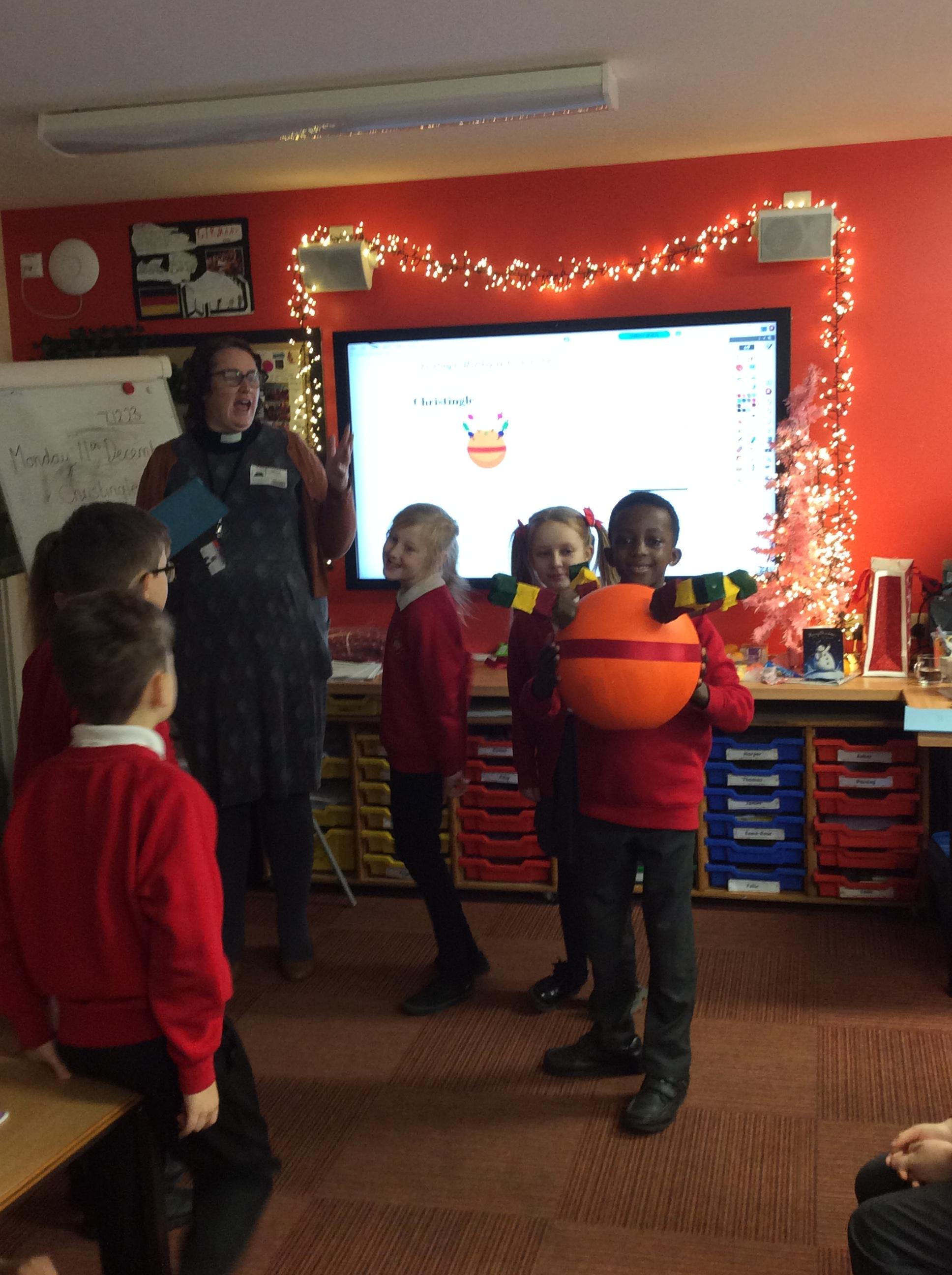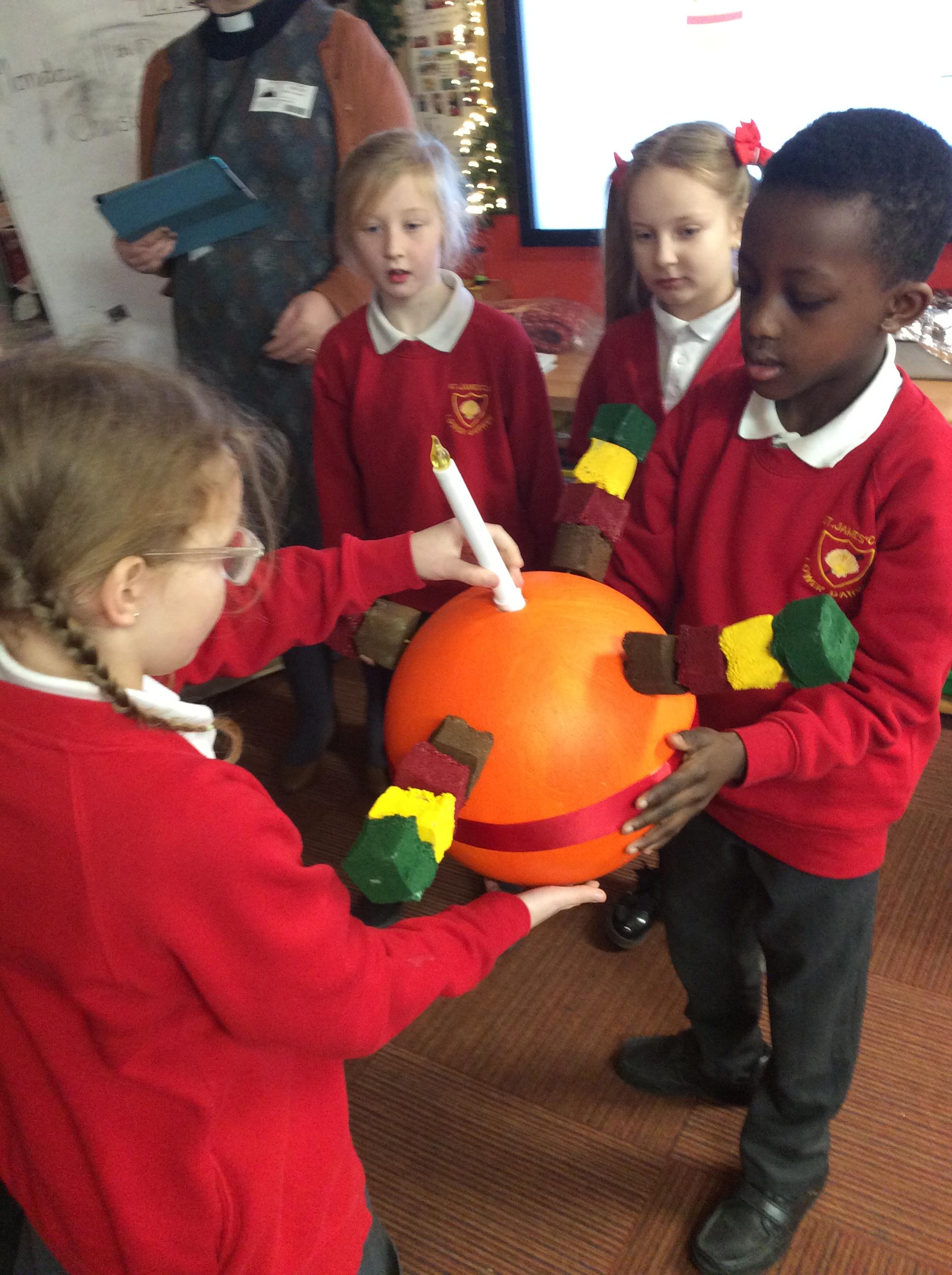 Rev Rebecca visited our class to talk about the christingle and what each part symbolised. She invited us to the special Christinle service at Church on Christmas Eve. We worked in our groups to make our own.