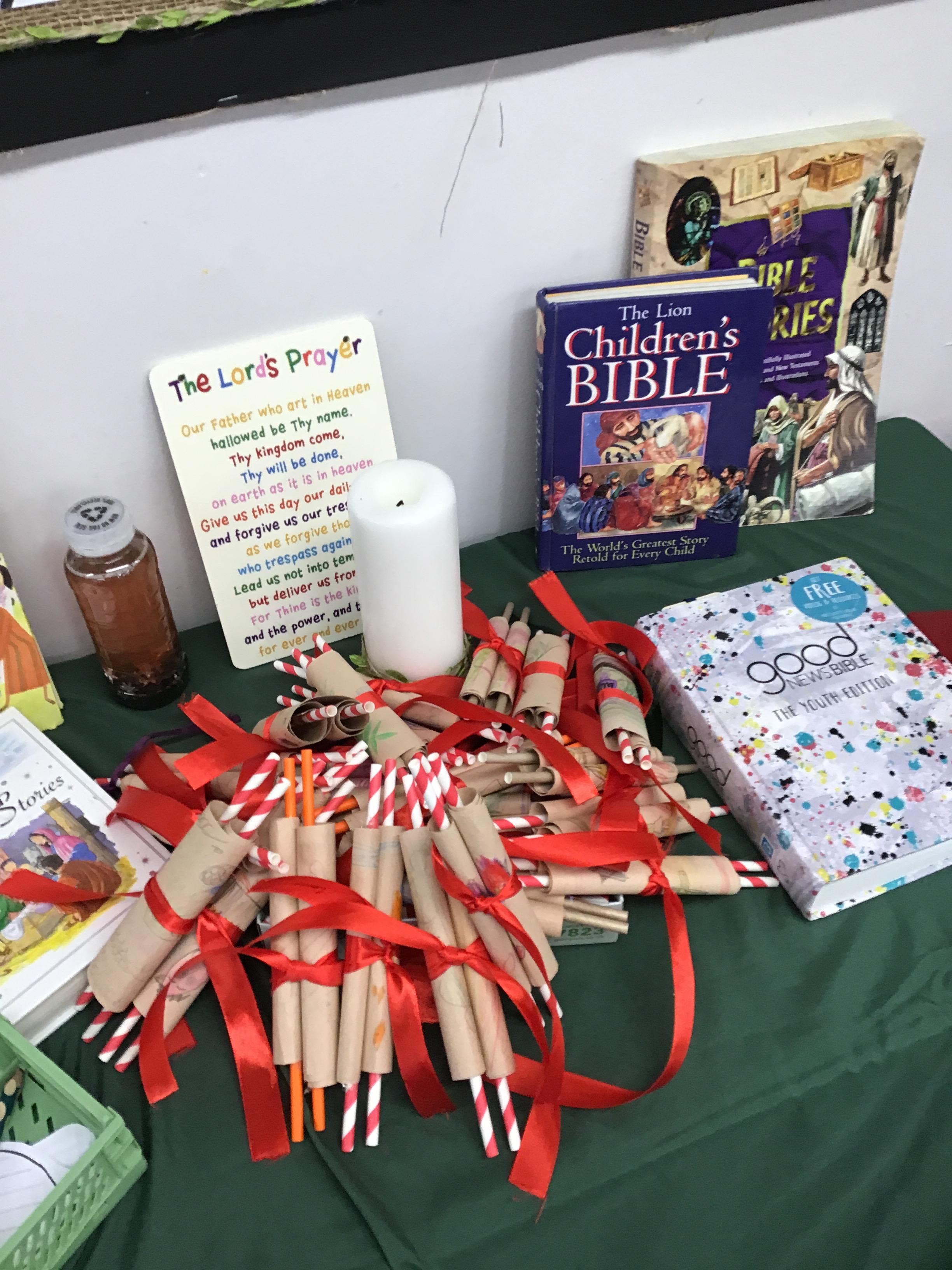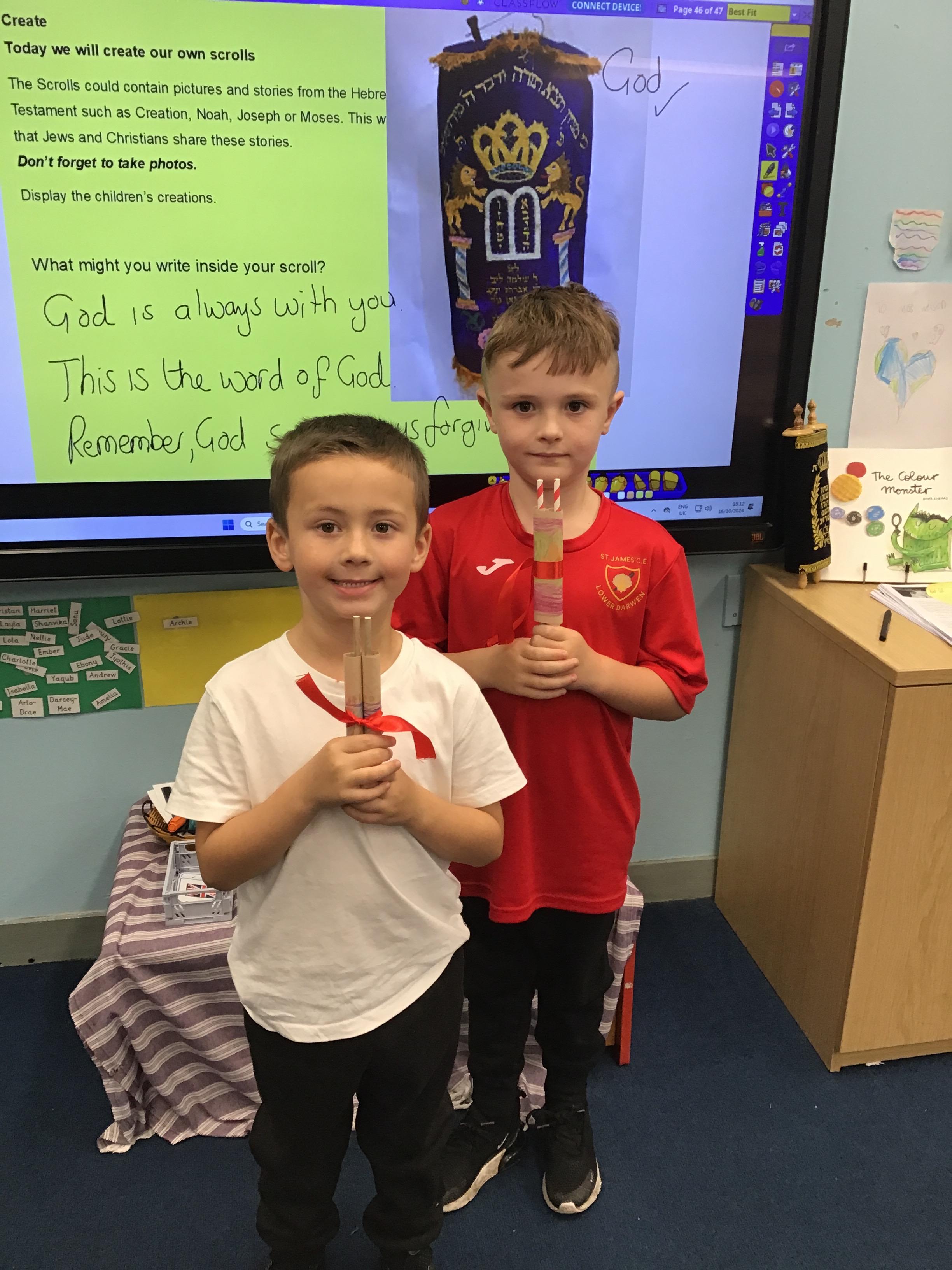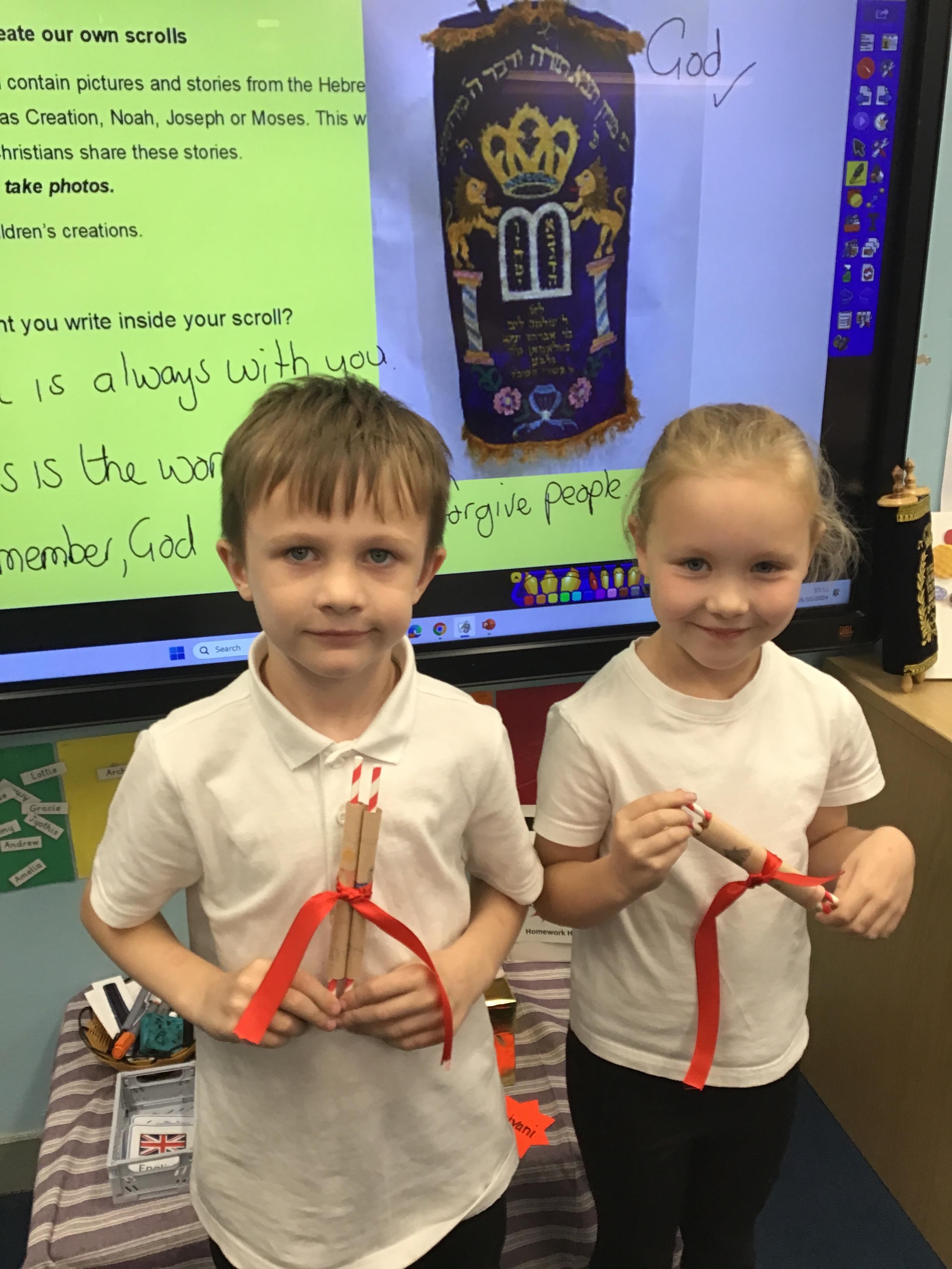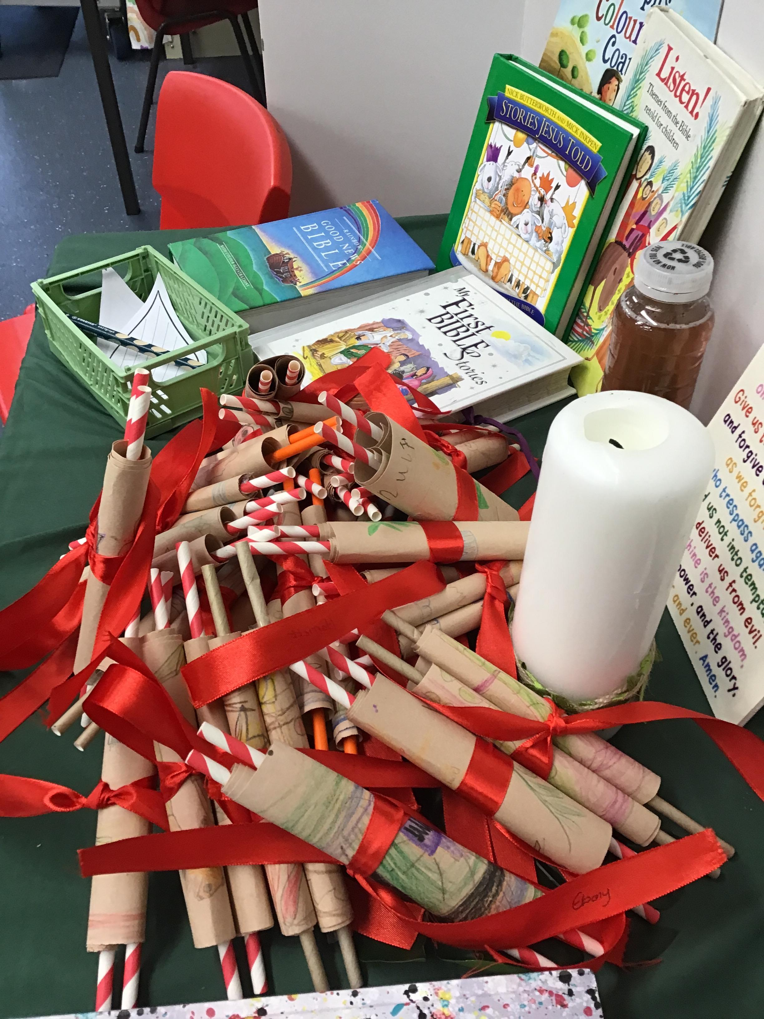 In RE, we have made Torah scrolls for our worship area.