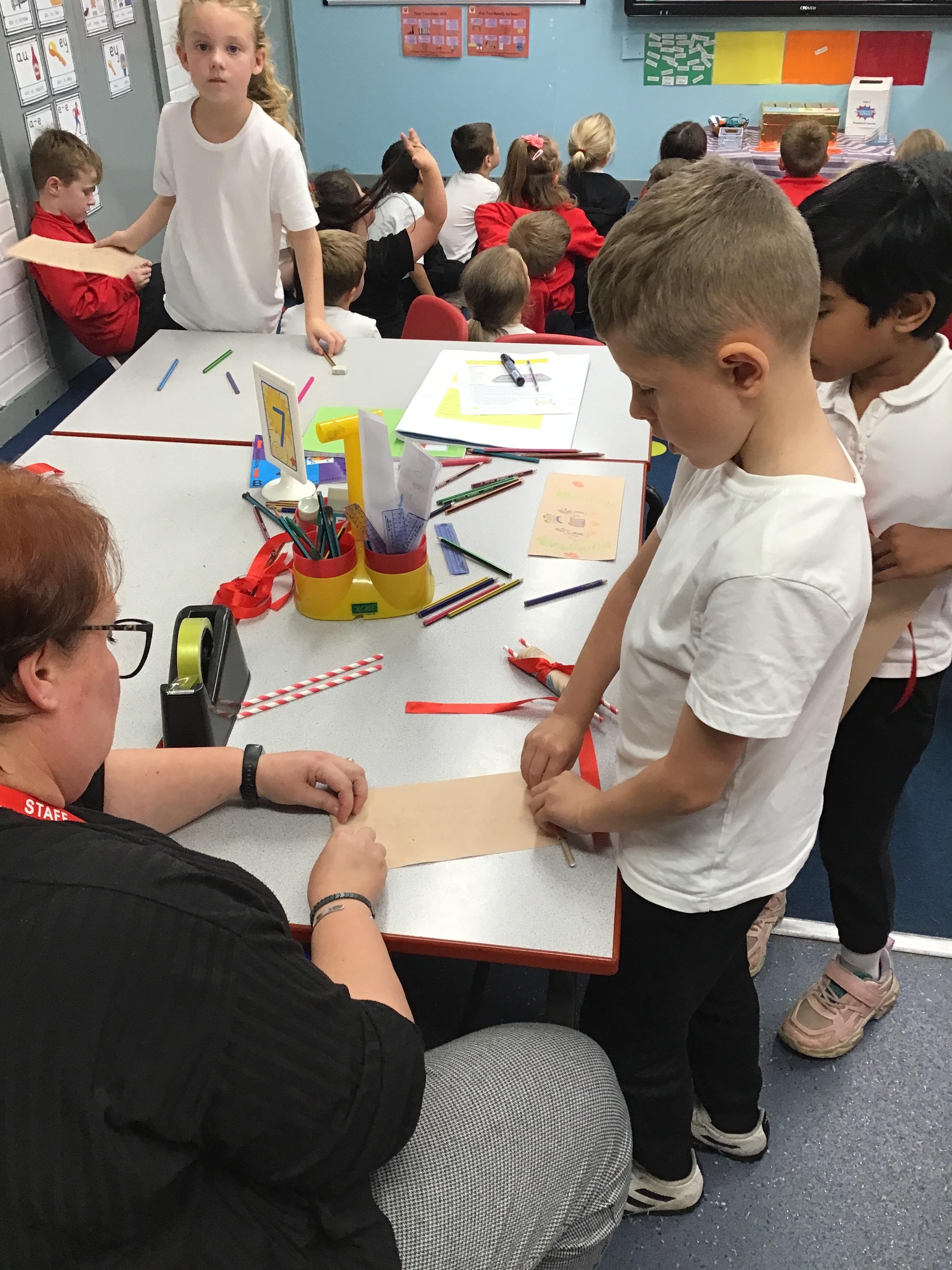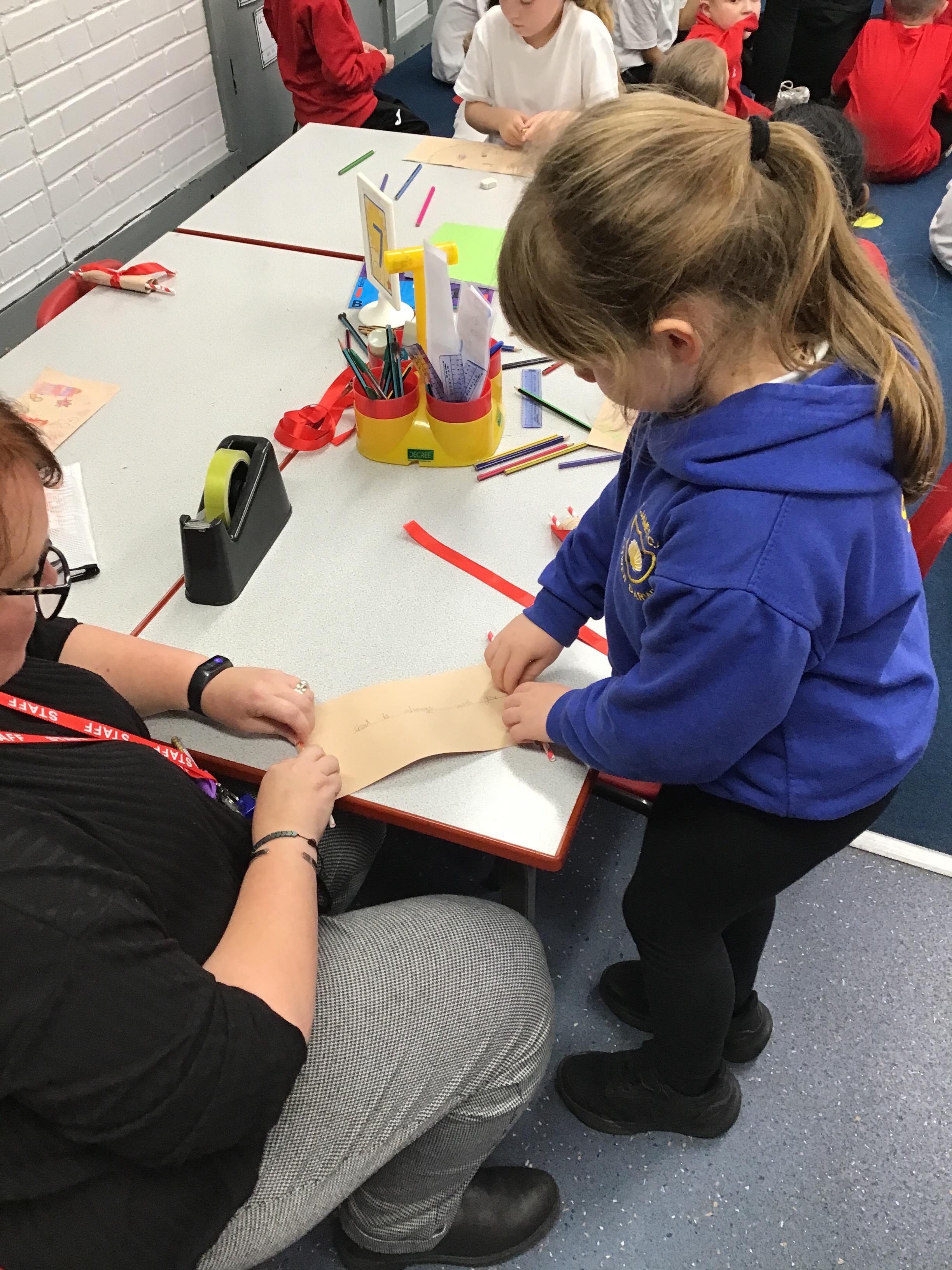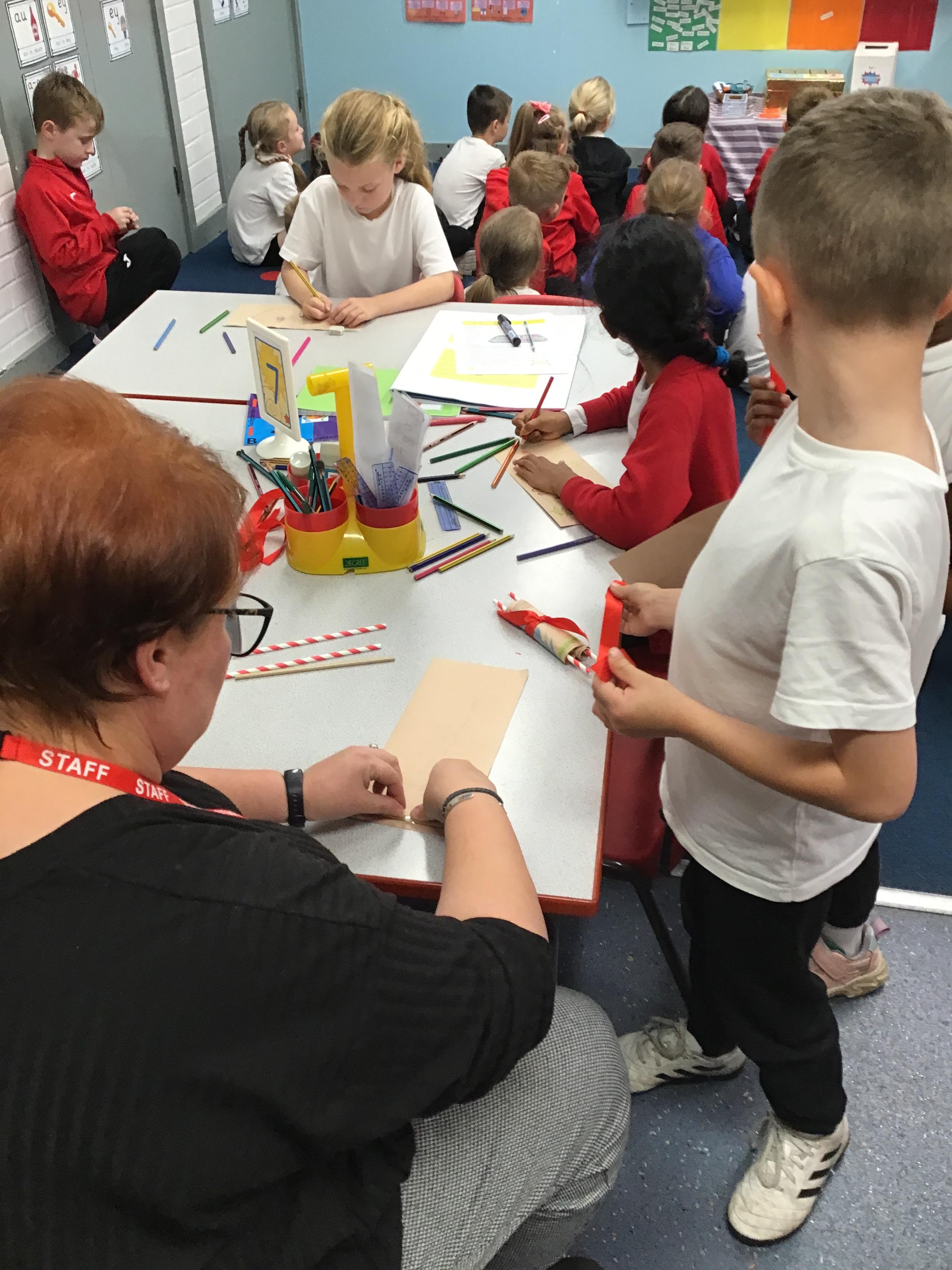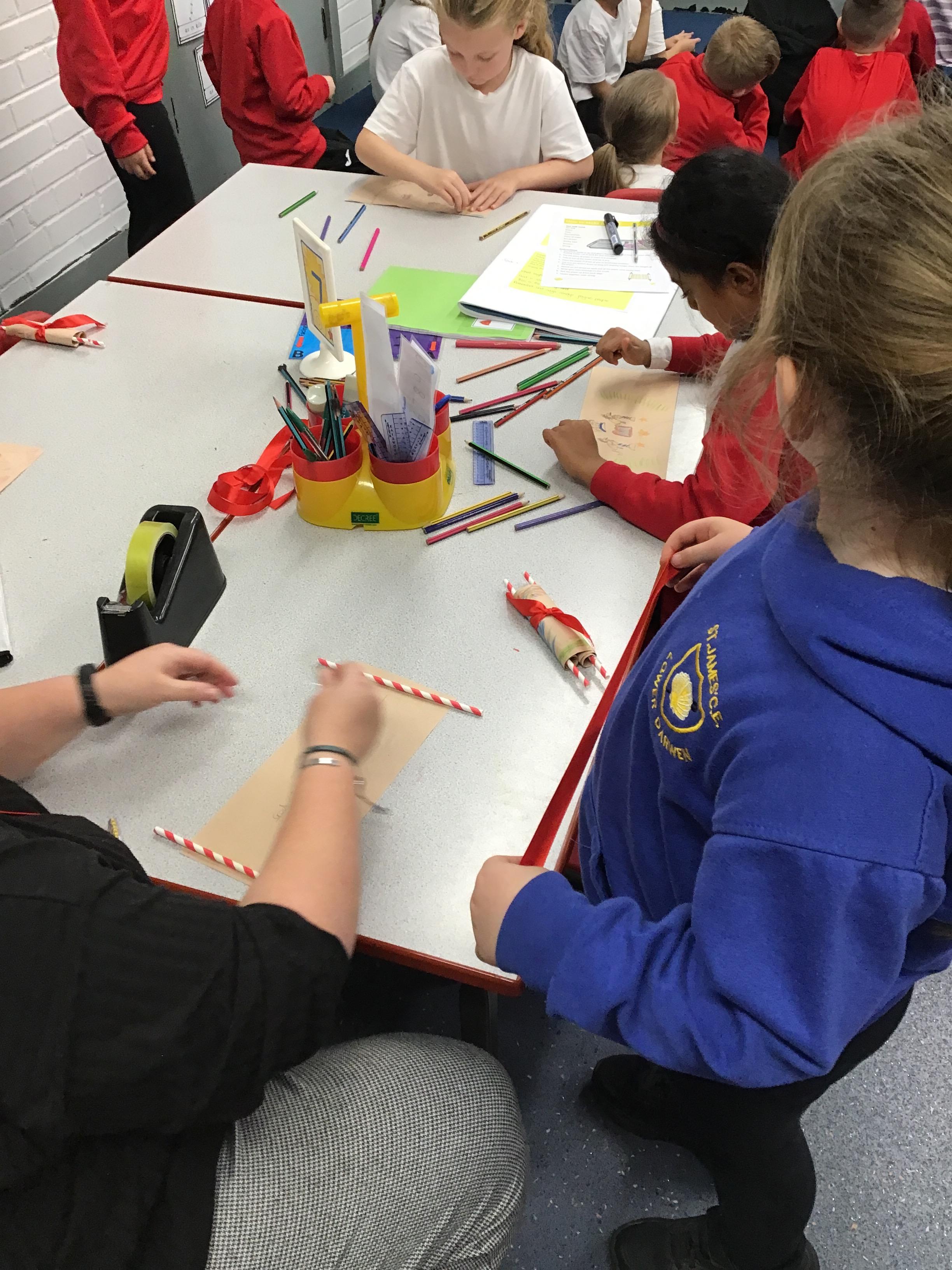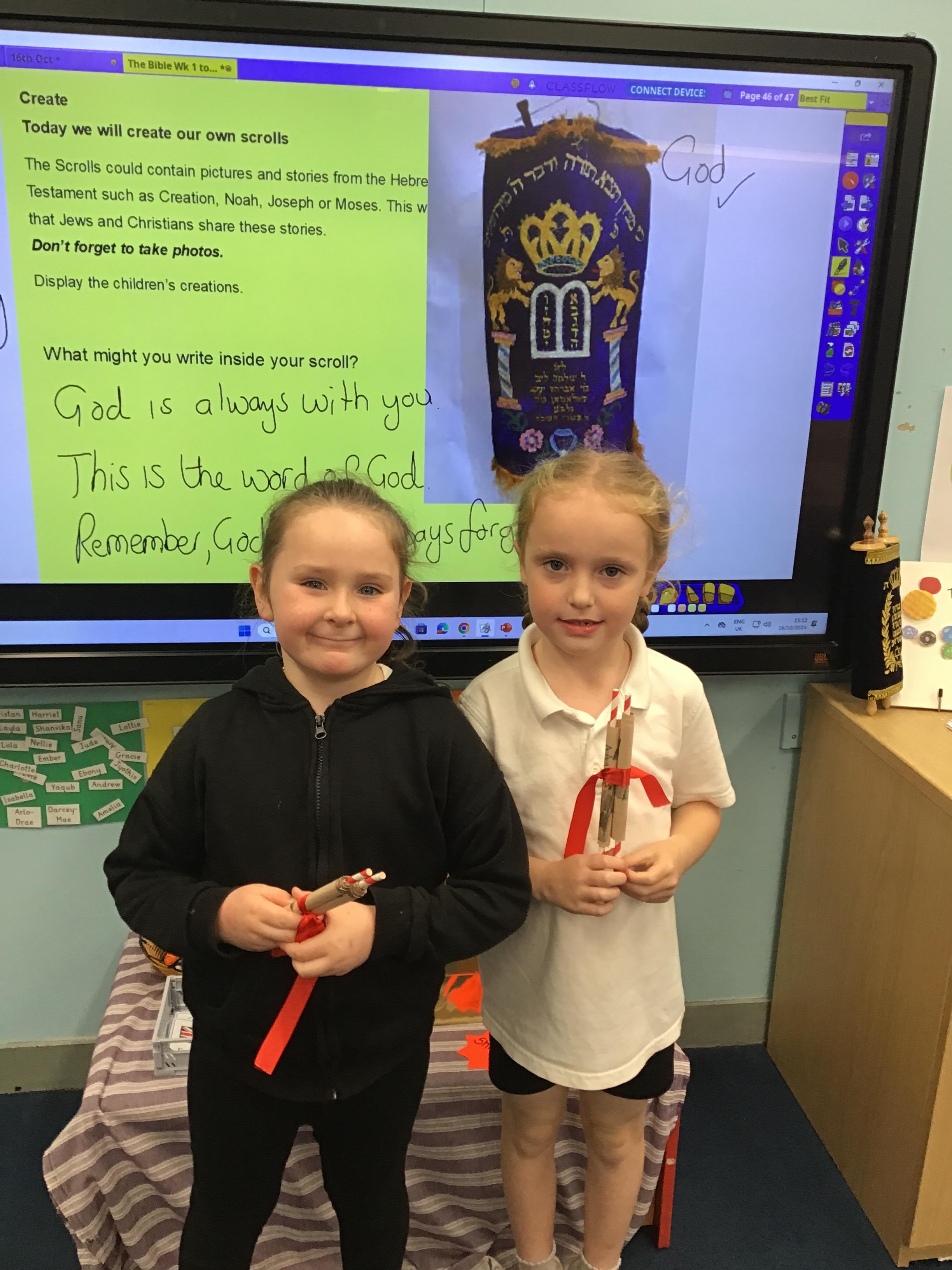 In RE, we have made Torah scrolls for our worship area.