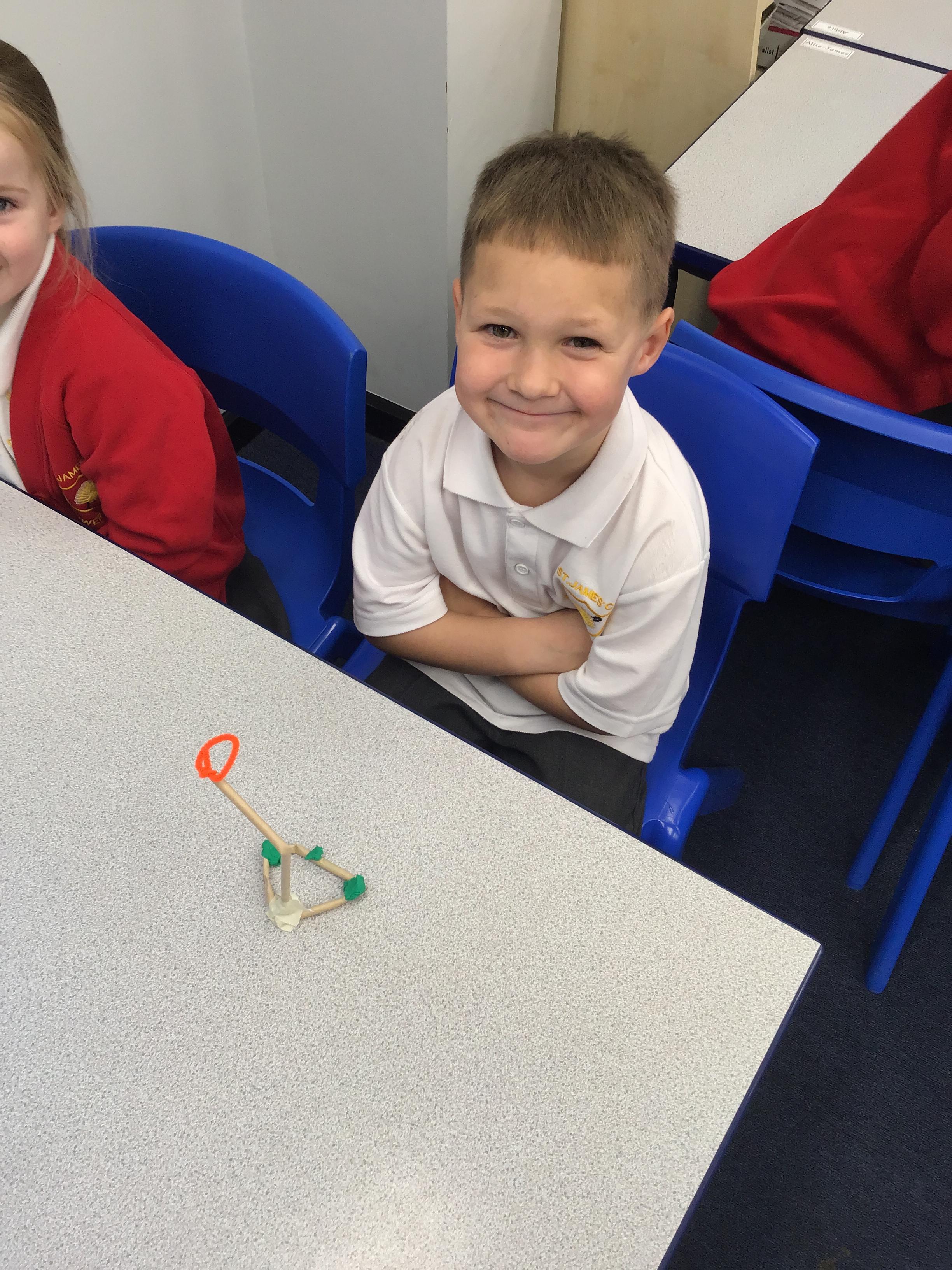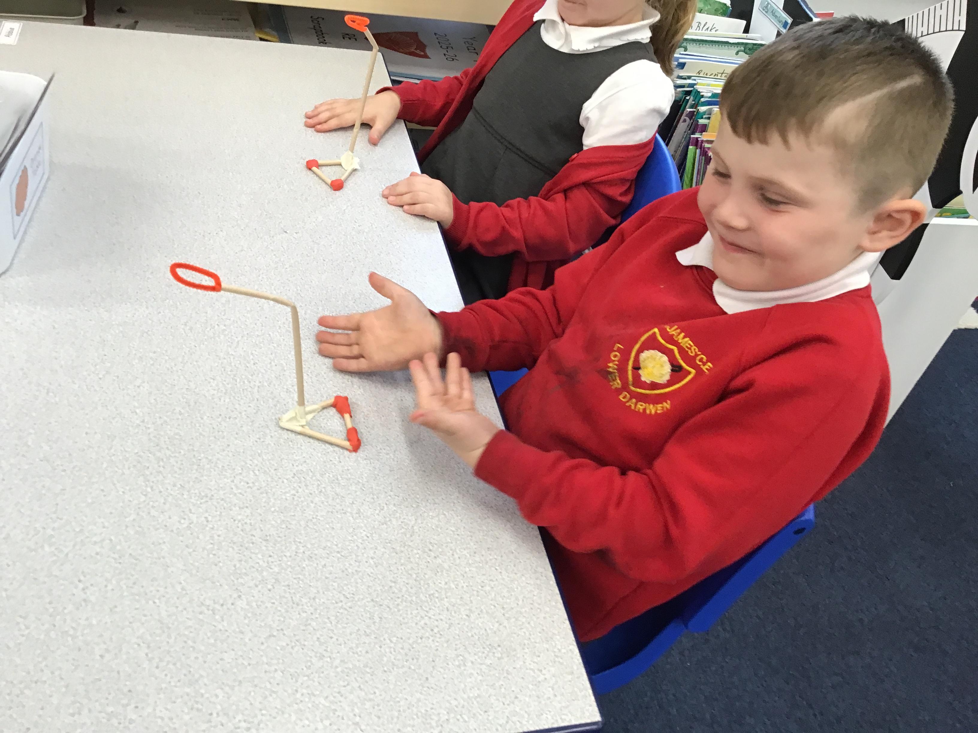 In DT, we designed and built basketball net structures, investigating how adding weight to the base helps to make them stable.