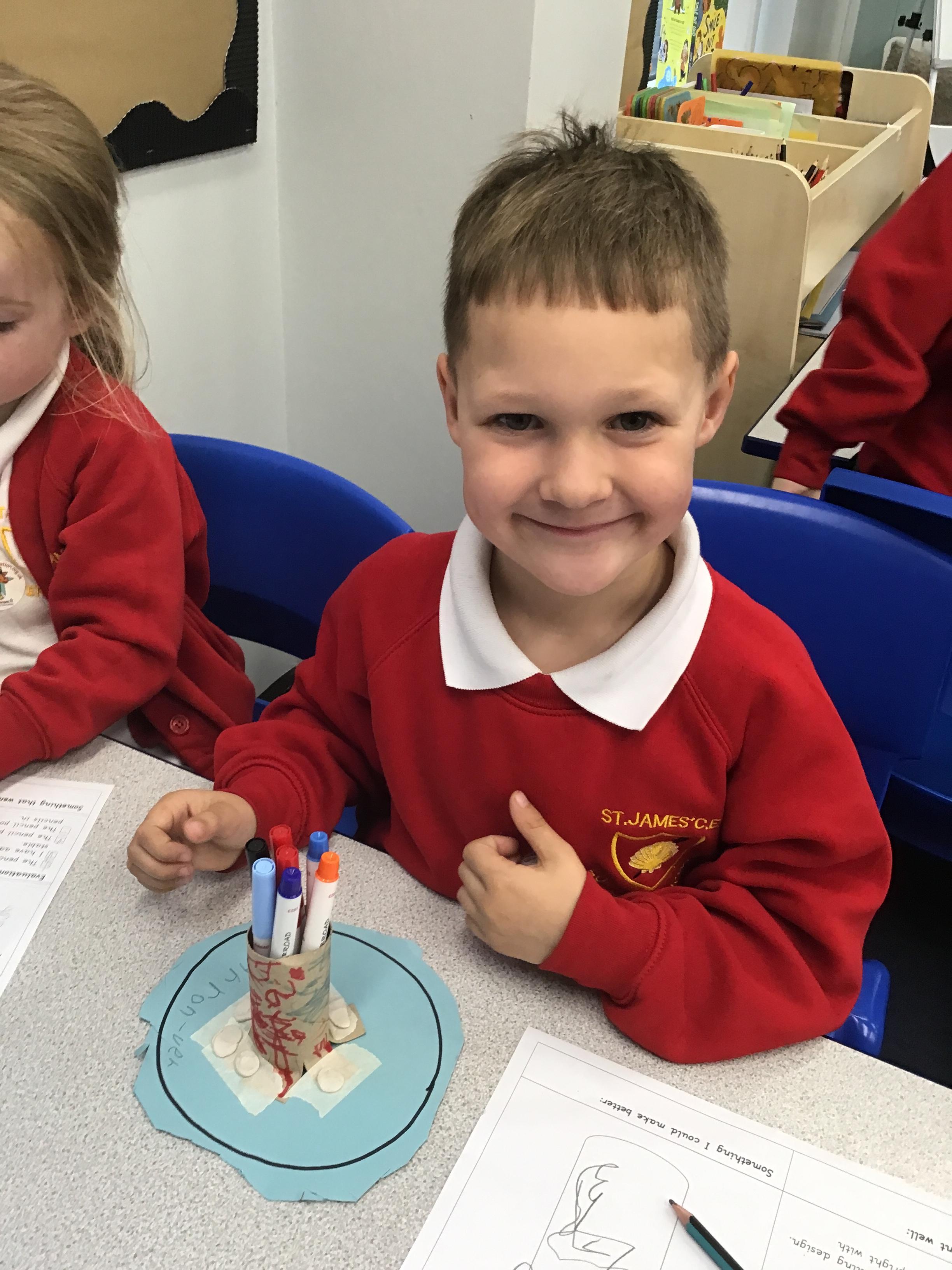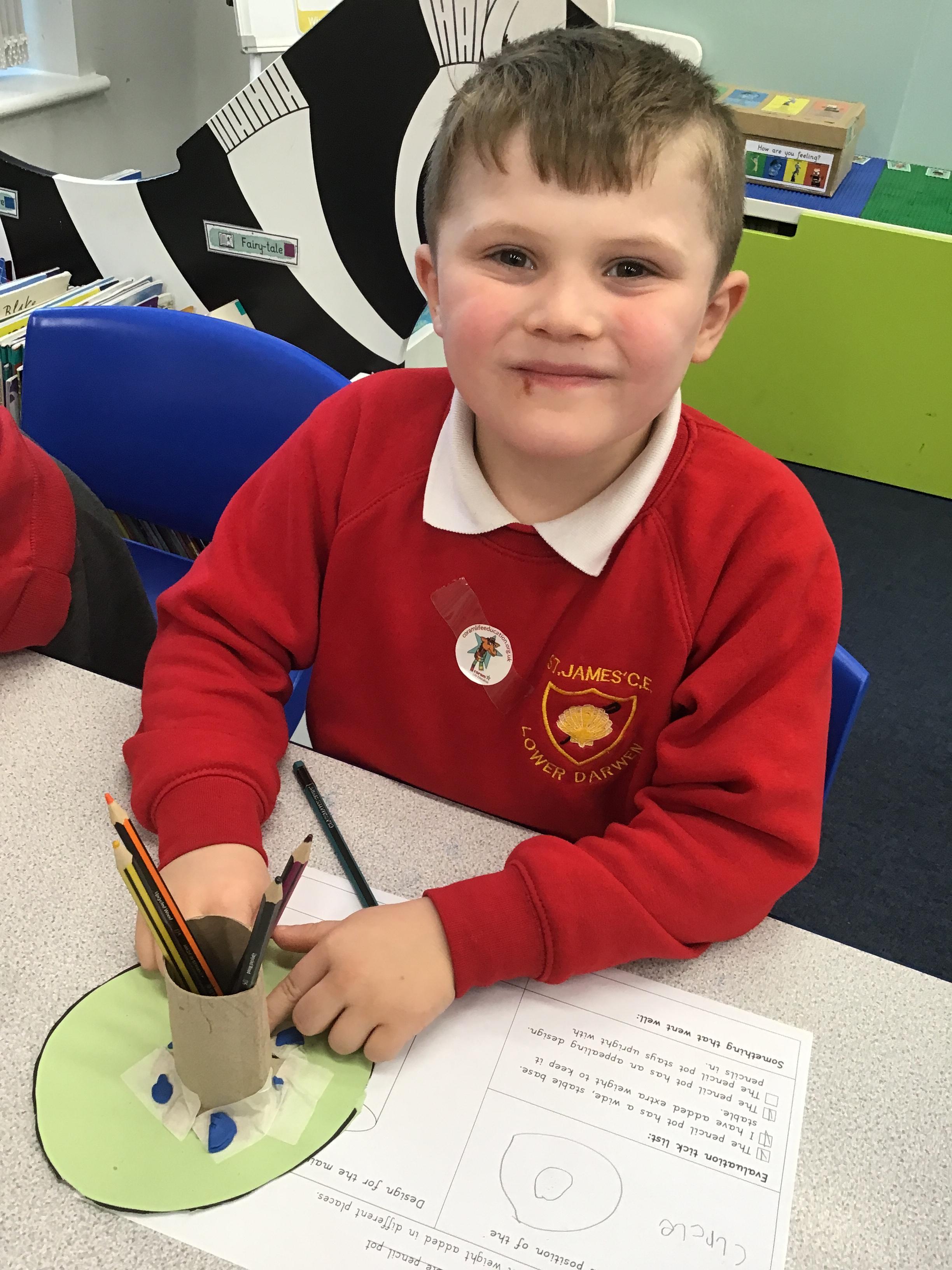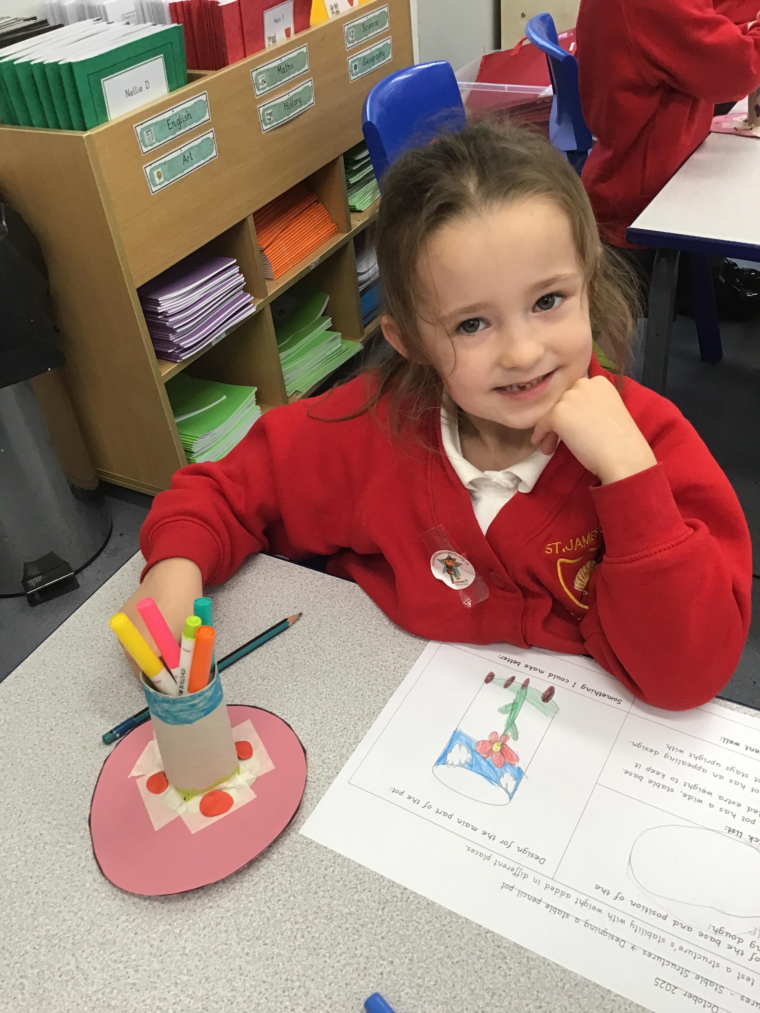 🪚DT: We designed and created our very own stable pencil pots. We made sure they had a wide base, added weight to the bottom, and tested them to check how stable they were — with some brilliant results!