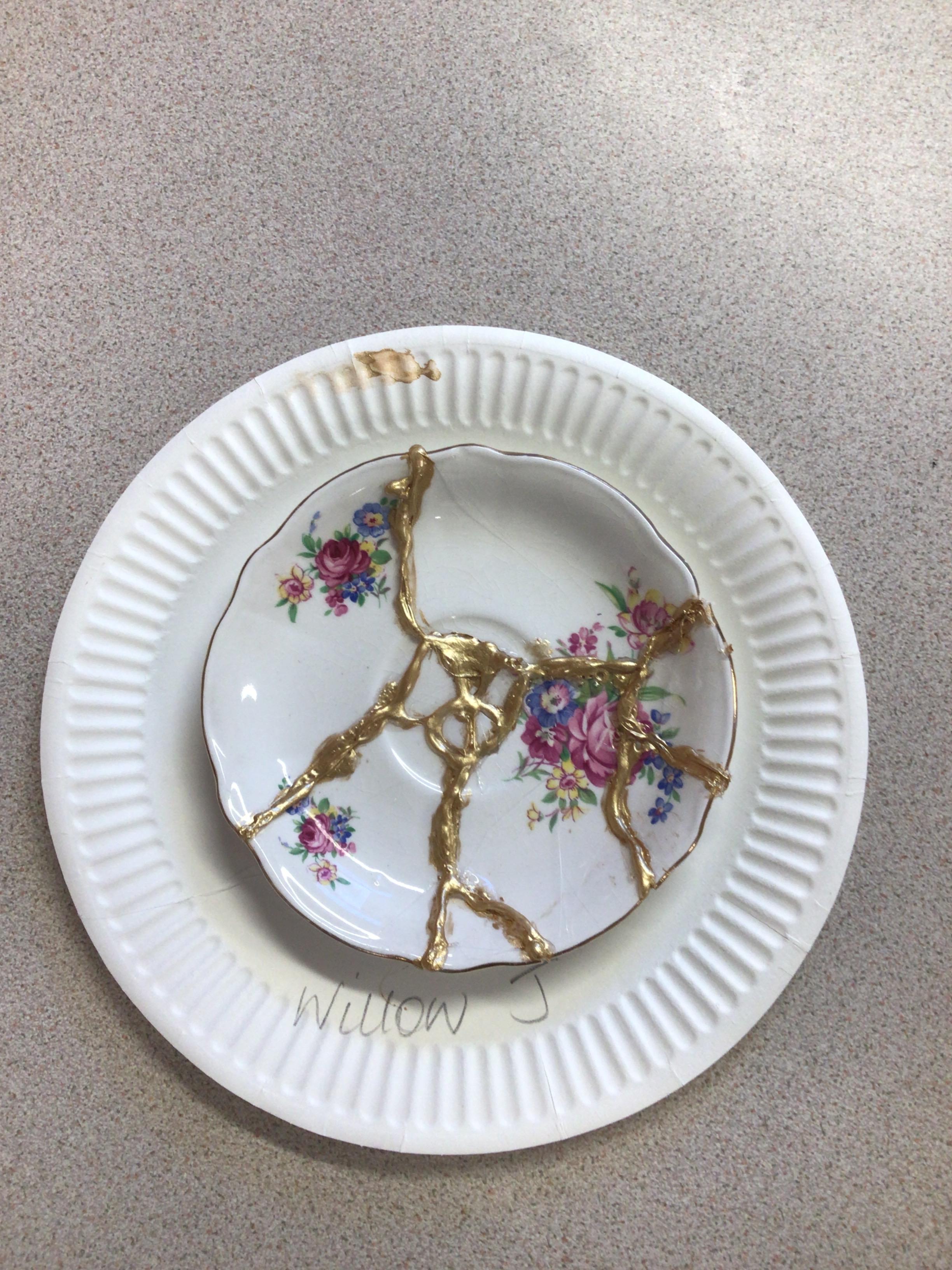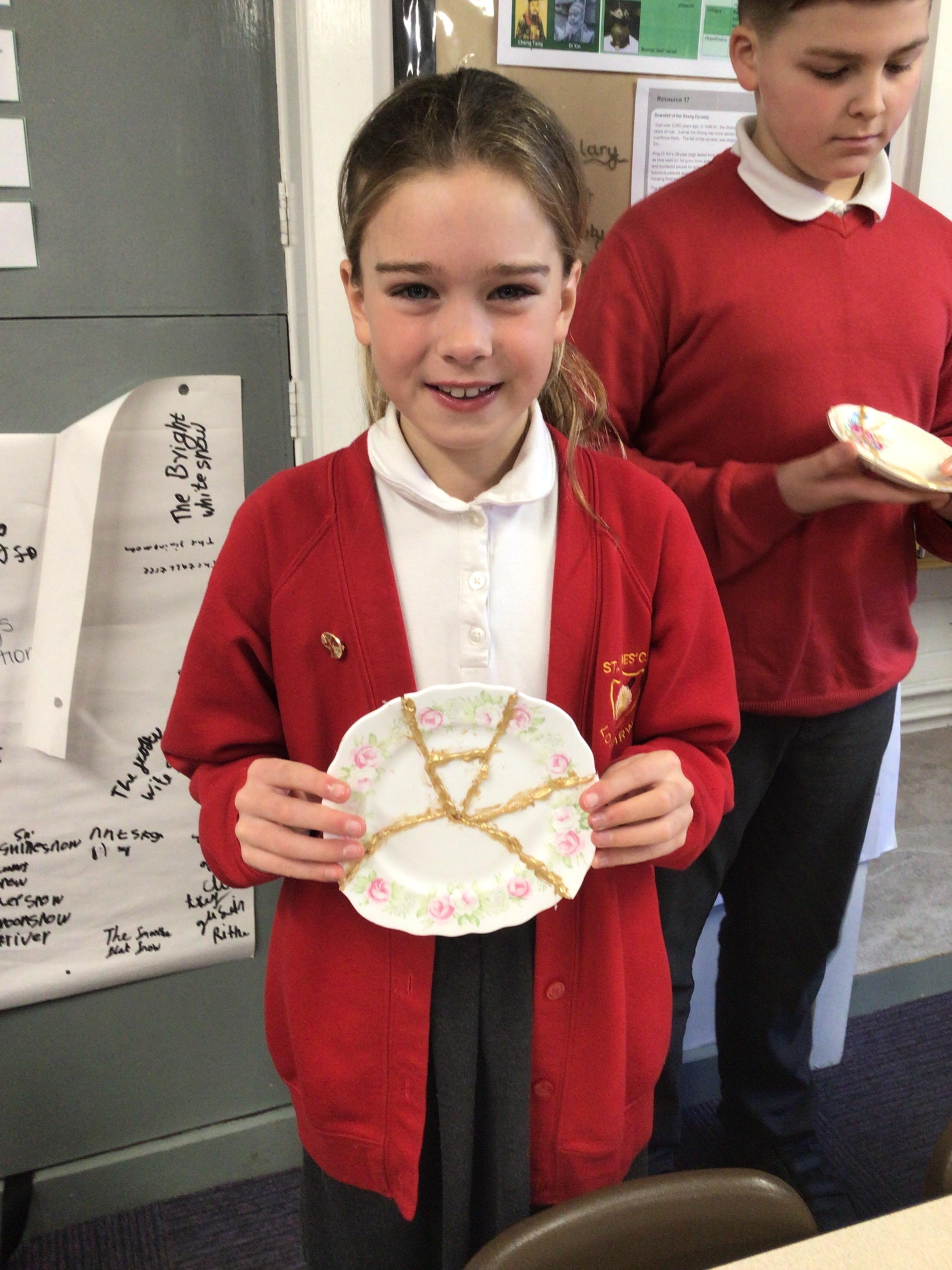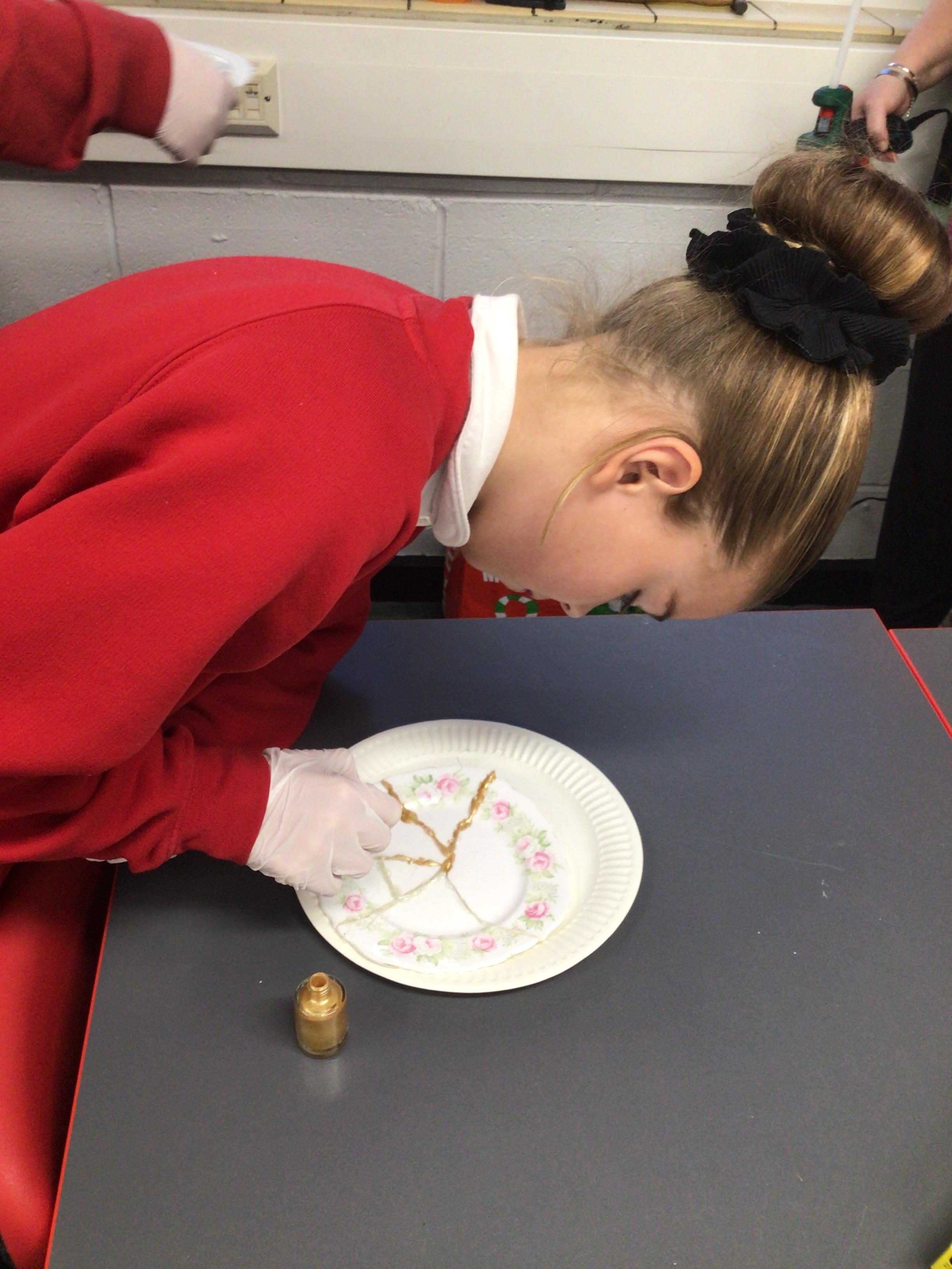 The children produced their own version of the Japanese art of Kintsugi. Kintsugi is where a piece of broken pottery is pieced back together with gold - a metaphor for embracing your flaws and imperfections.