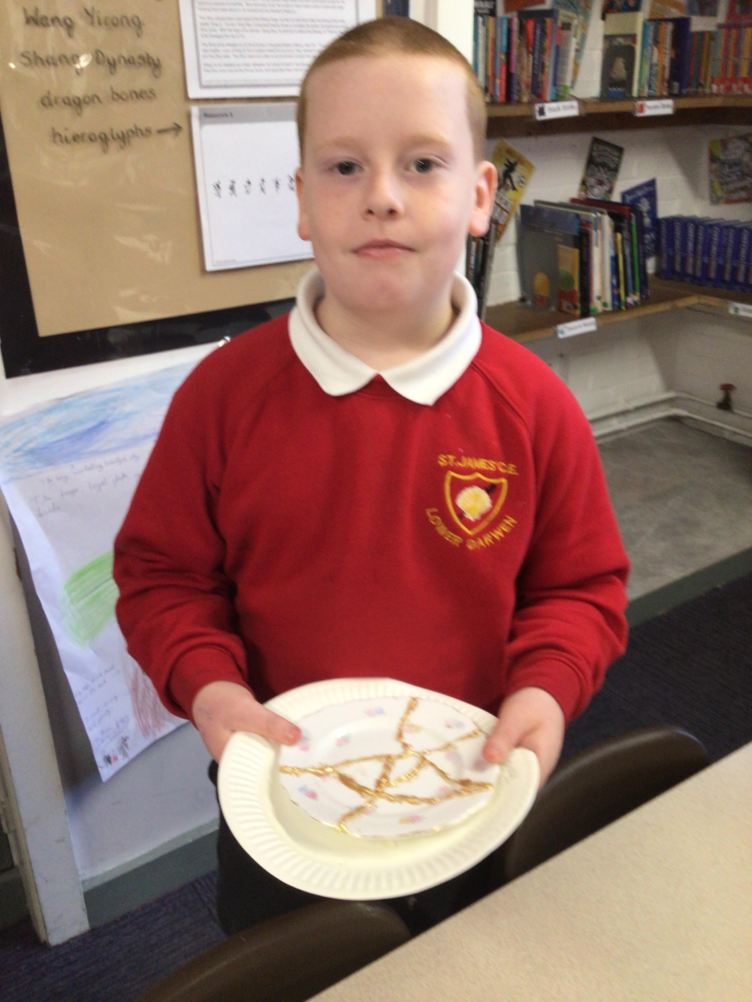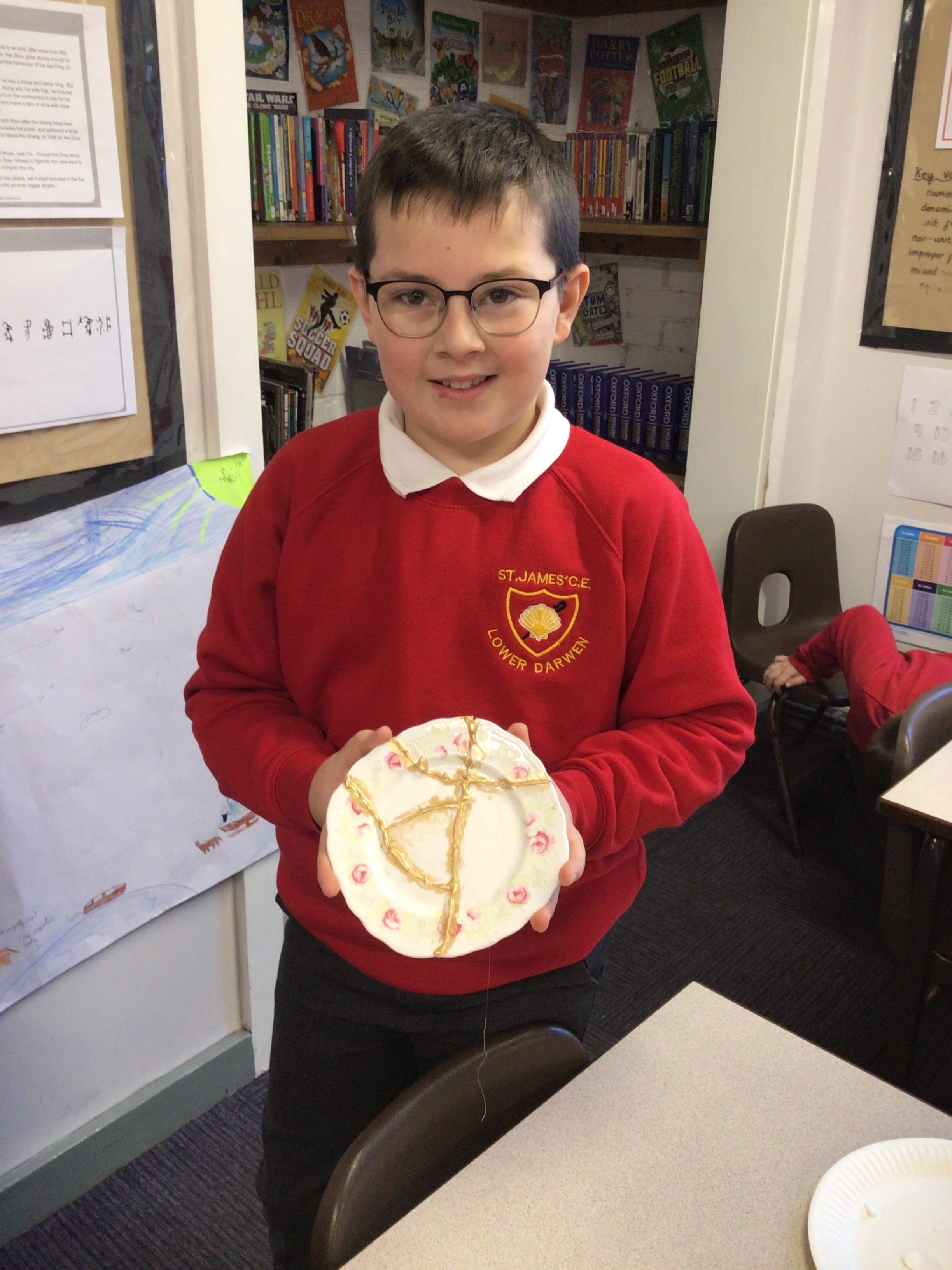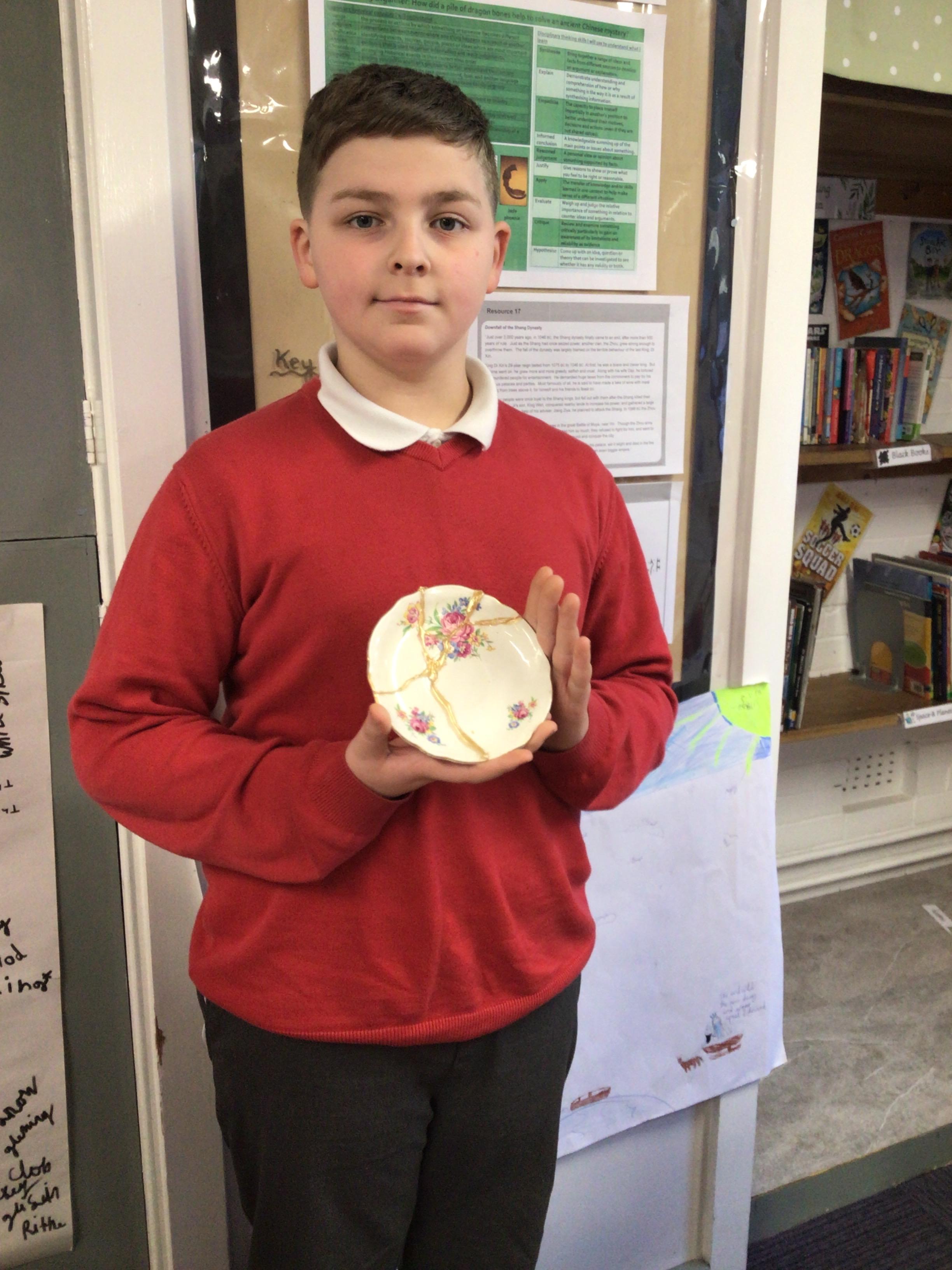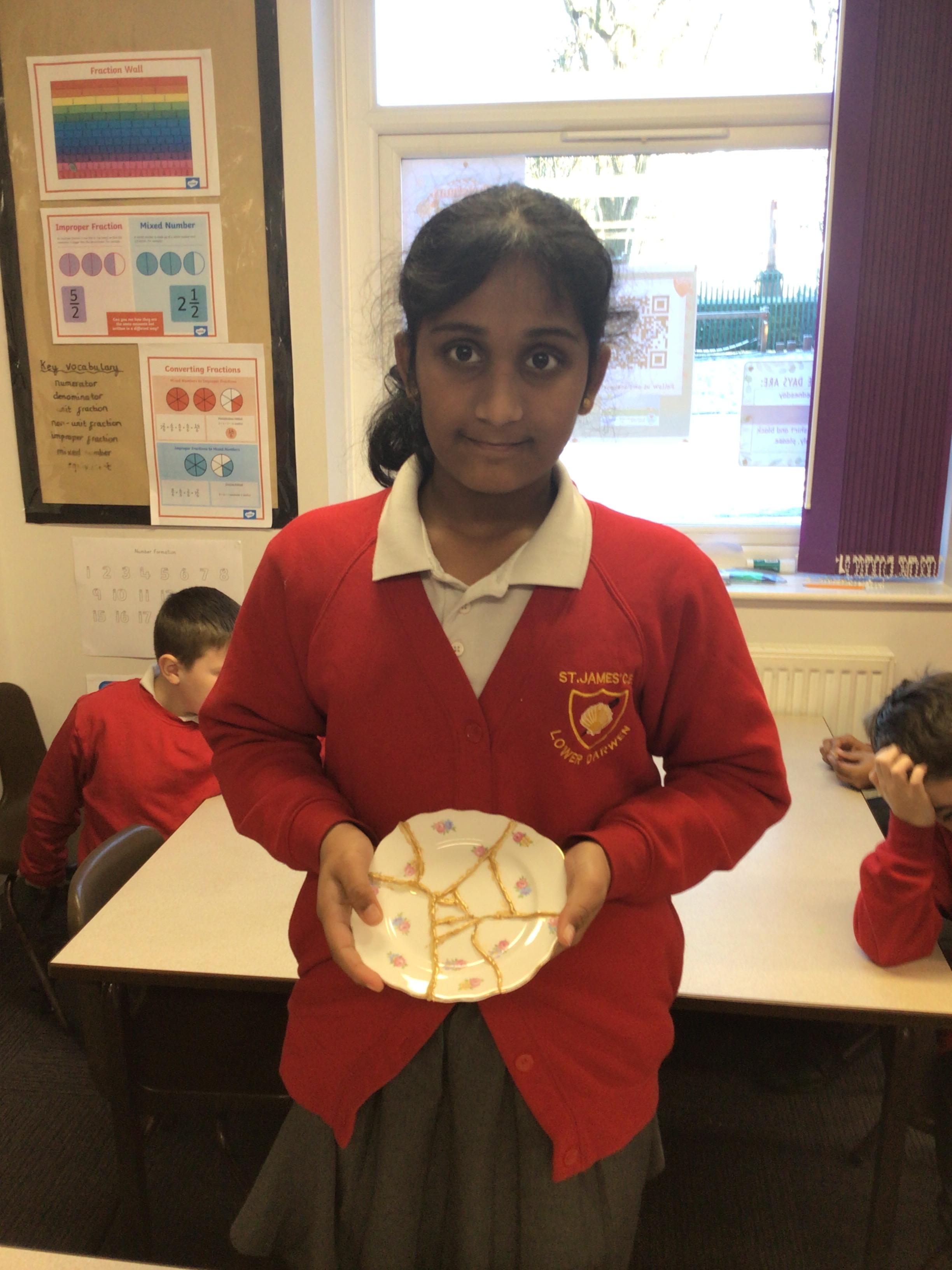 The children produced their own version of the Japanese art of Kintsugi. Kintsugi is where a piece of broken pottery is pieced back together with gold - a metaphor for embracing your flaws and imperfections.