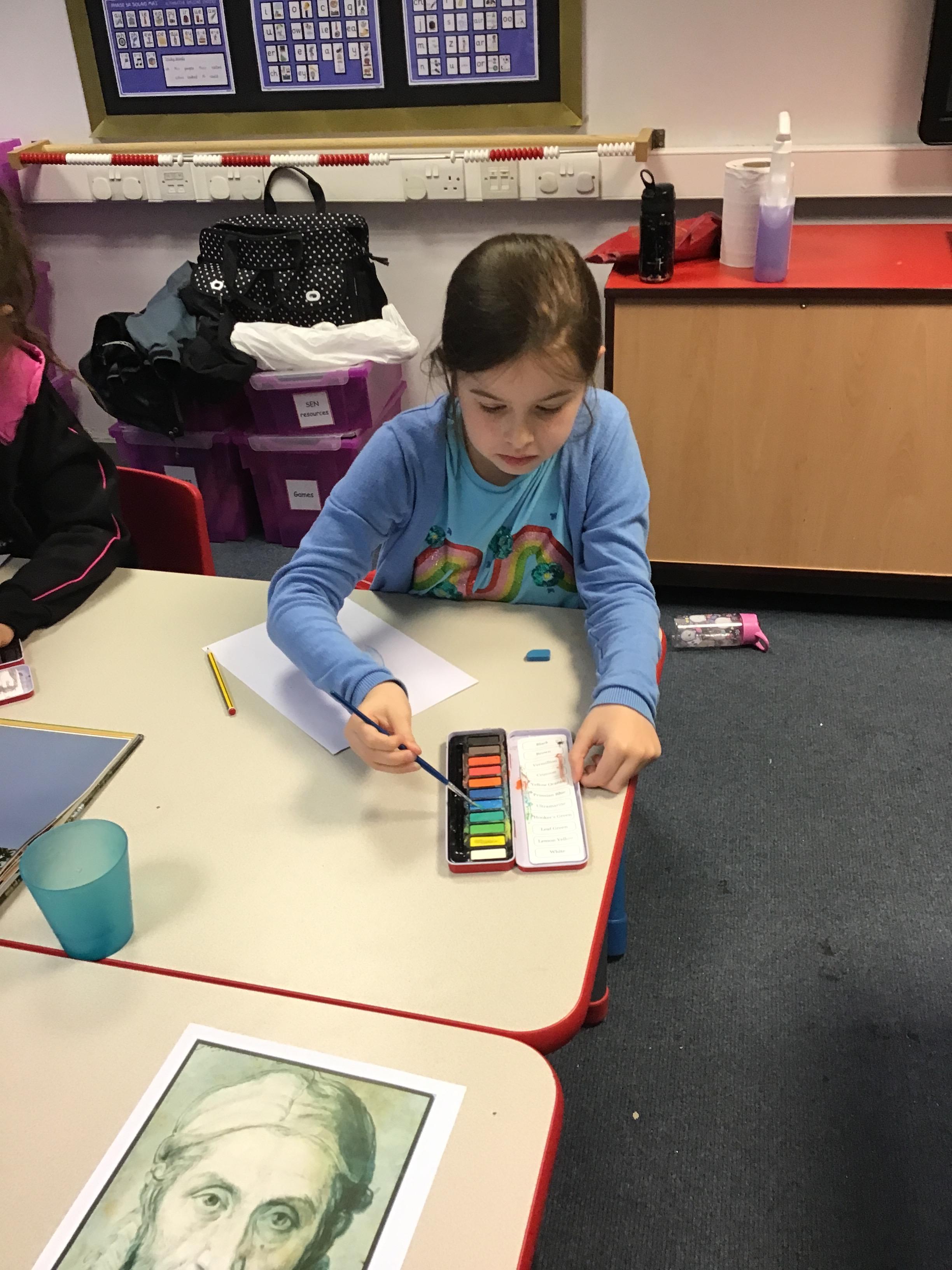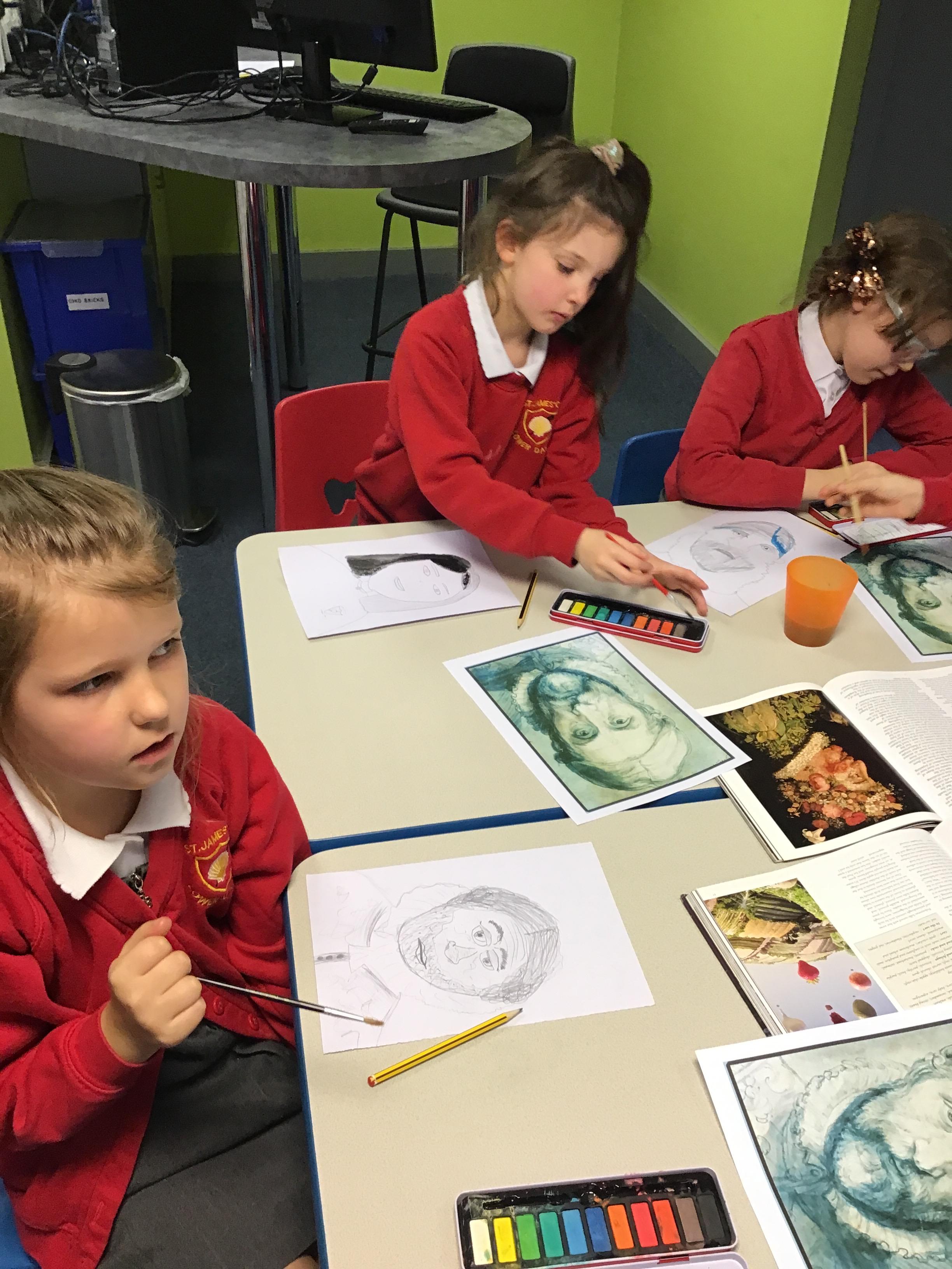 The children then either replicated the artists portrait, or did their own self portrait, using a pencil and watercolour paints.