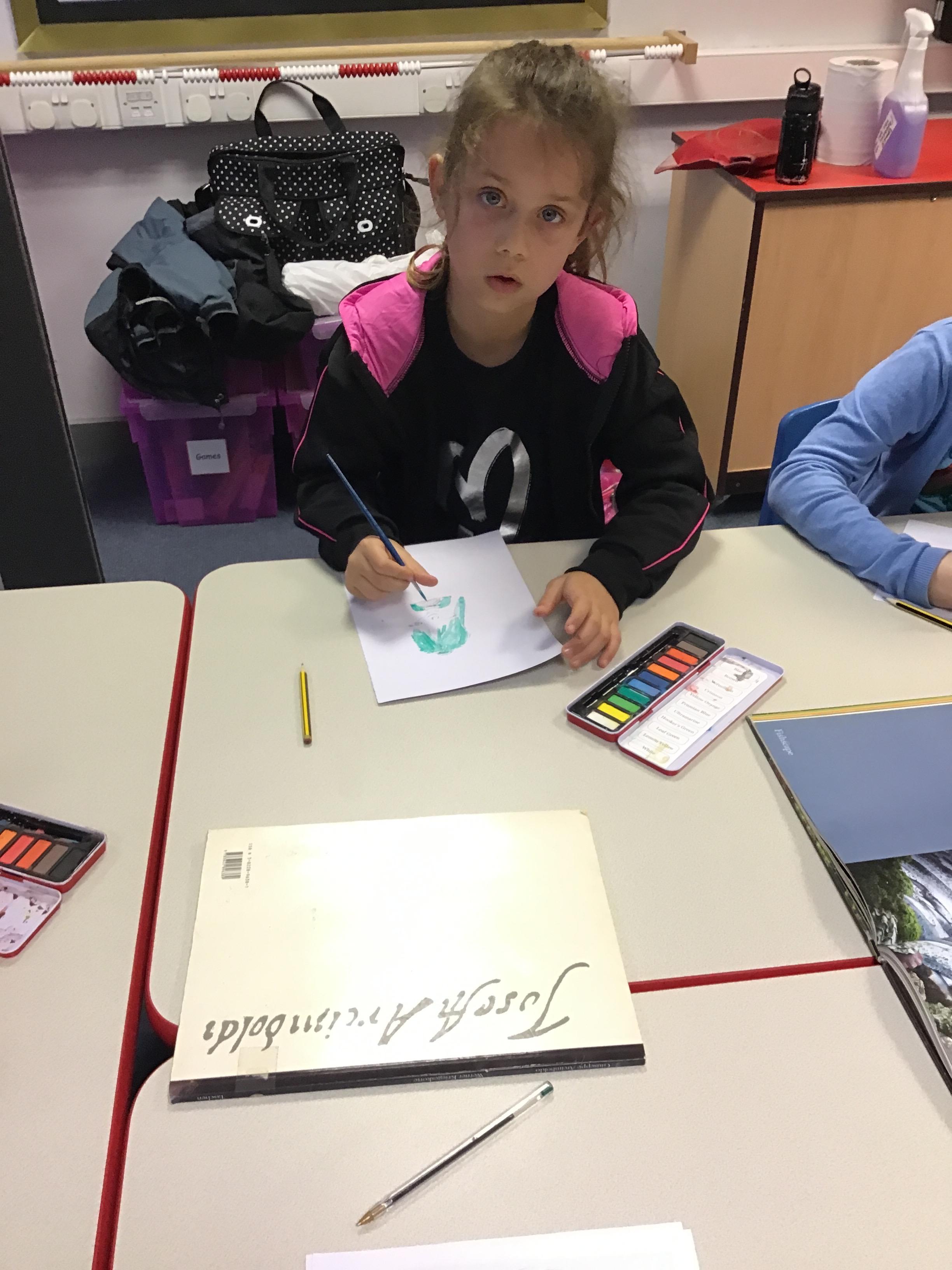This week we studied the Artist Guiseppe ARCIMBOLDO, an artist born in Italy in 1527. Mrs Hudson showed the children the self portrait that he did using a pencil and watercolour paints.