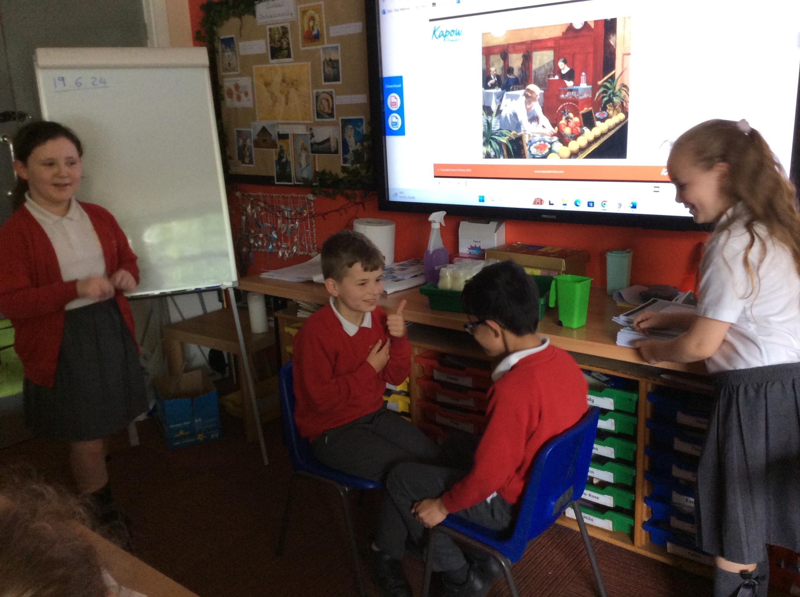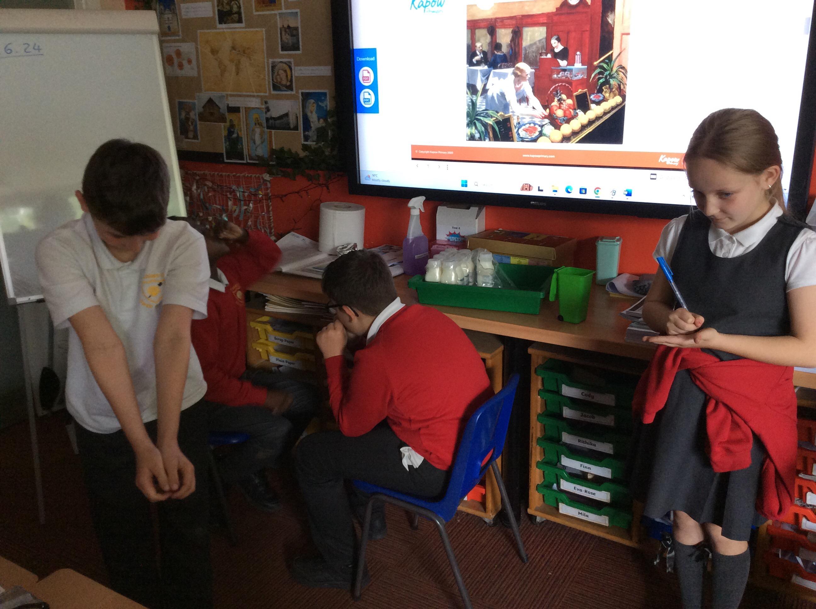 The children worked in groups to produce their own version of the art. In freeze frames. Have a look below...