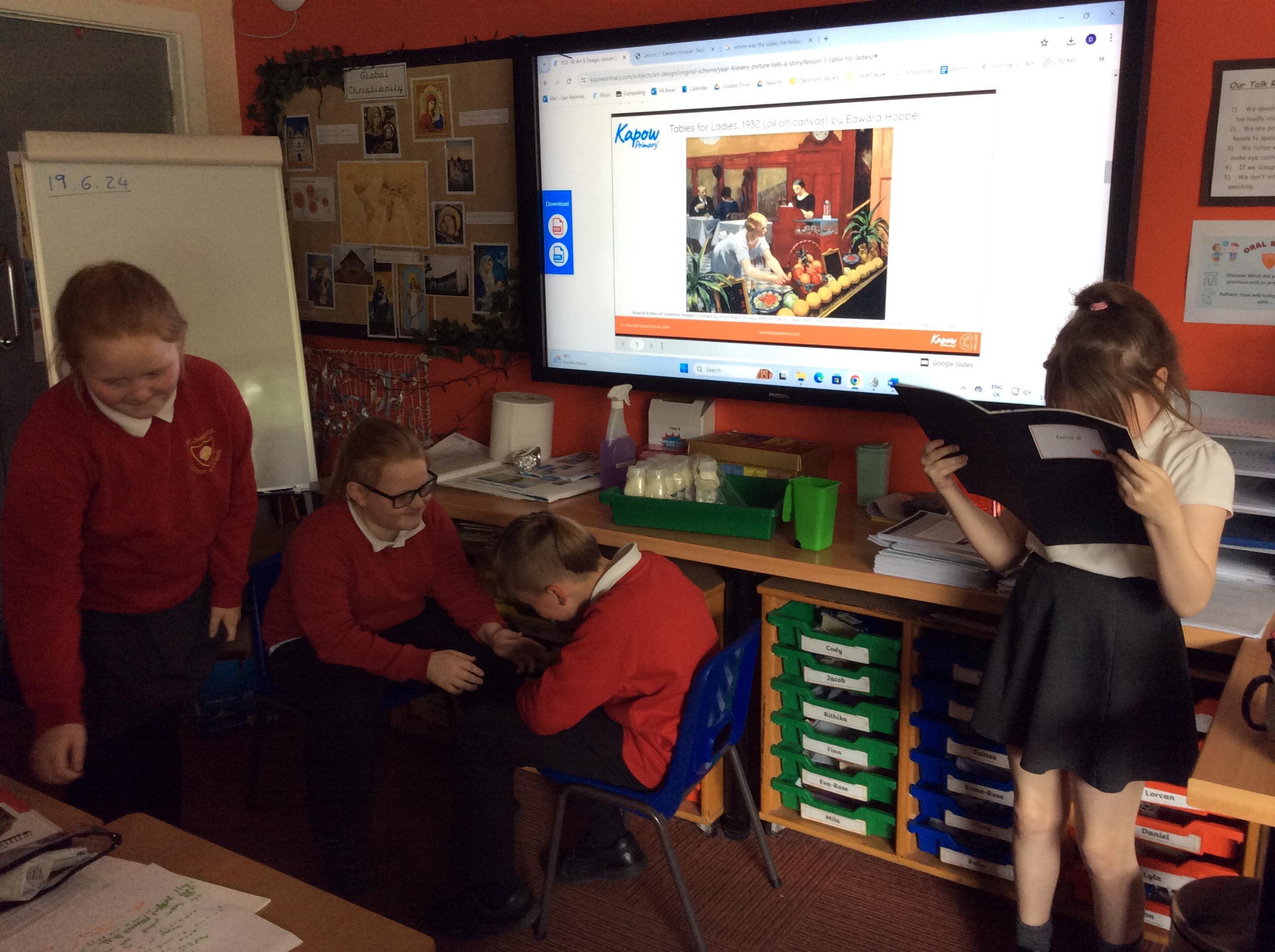 This week has seen Mrs Hudson teaching Art and how to appreciate the different kinds of paintings, that are around us. This week we have been studying "Tables for Ladies" by Edward Hopper.