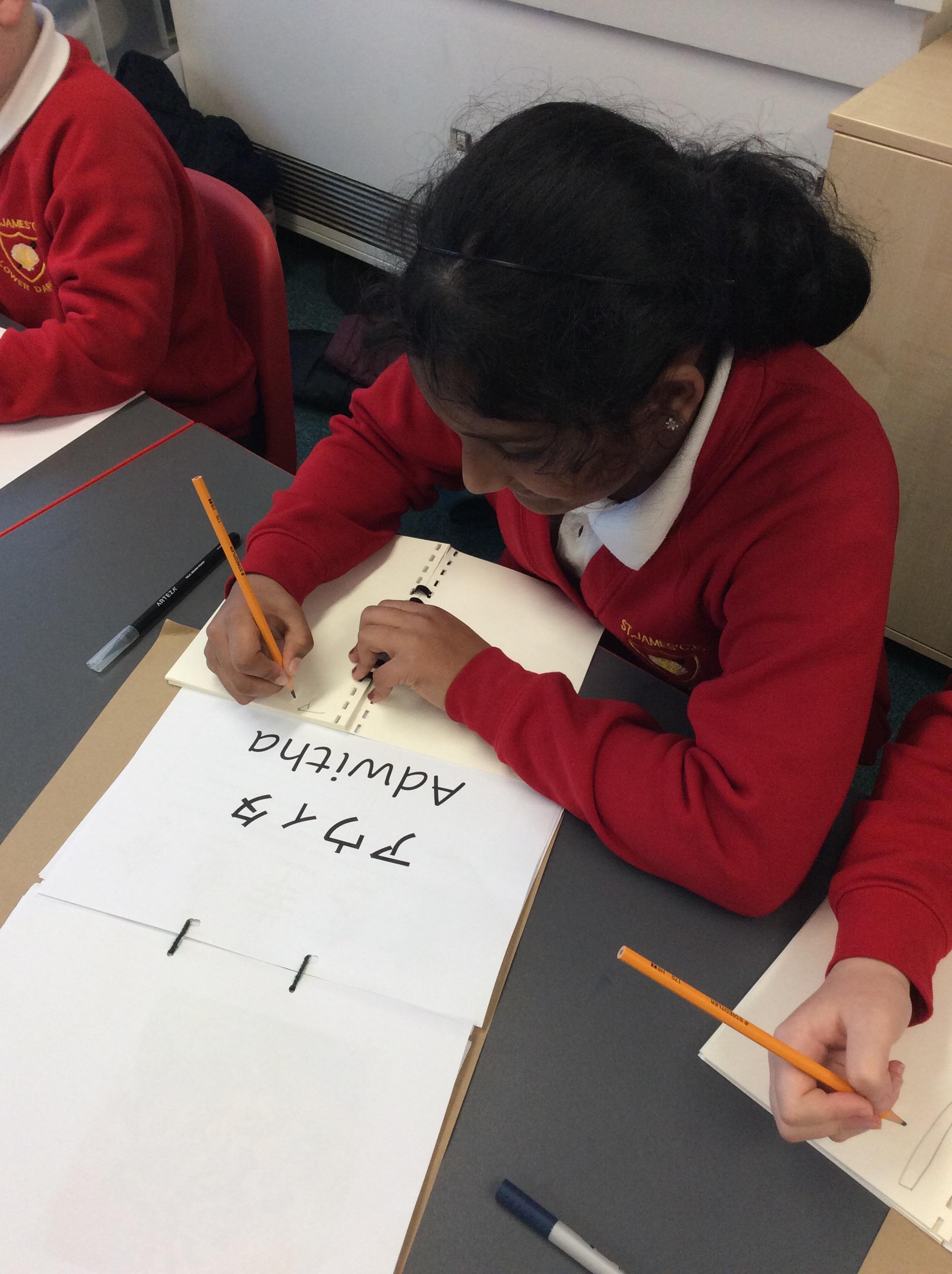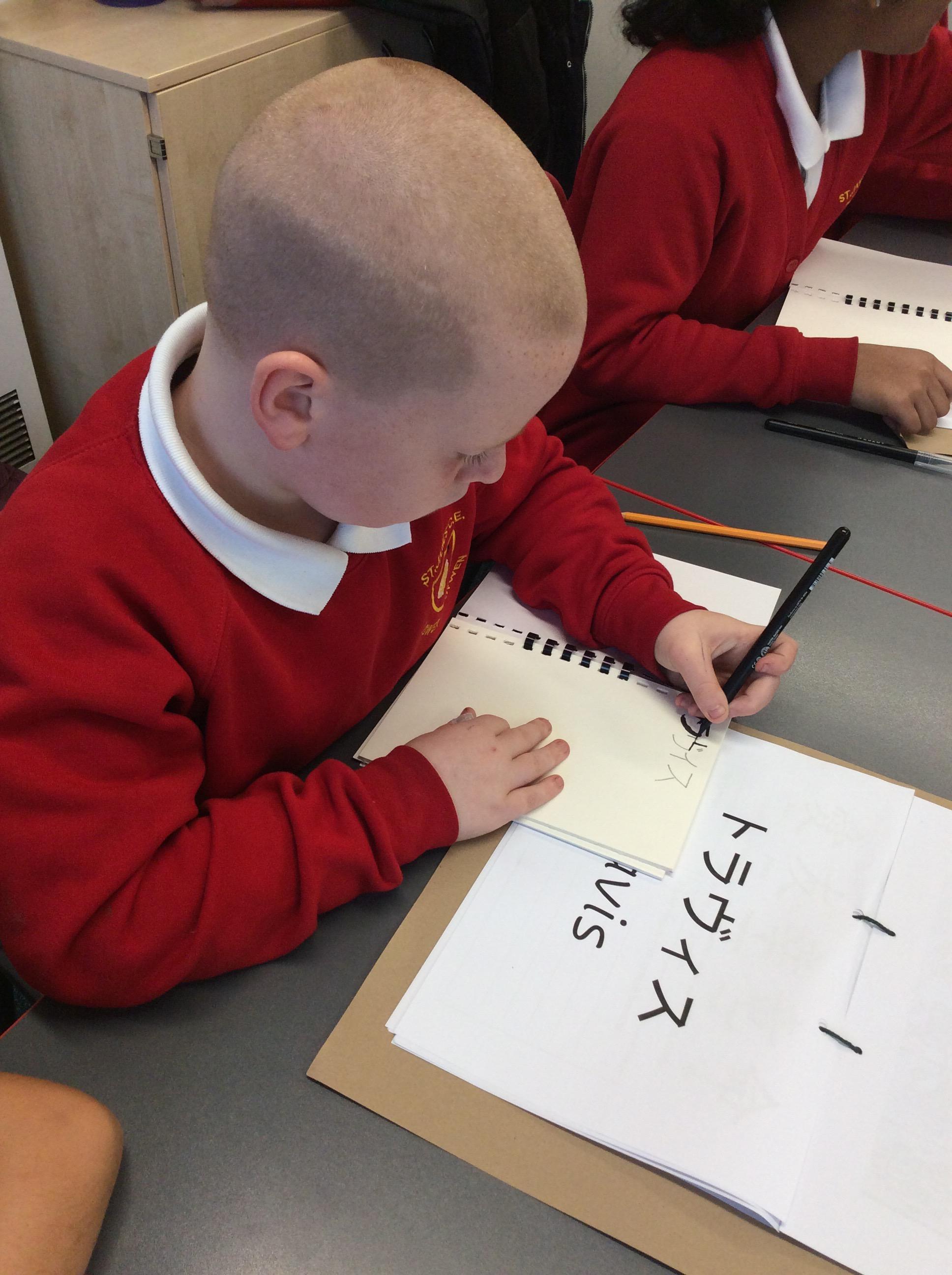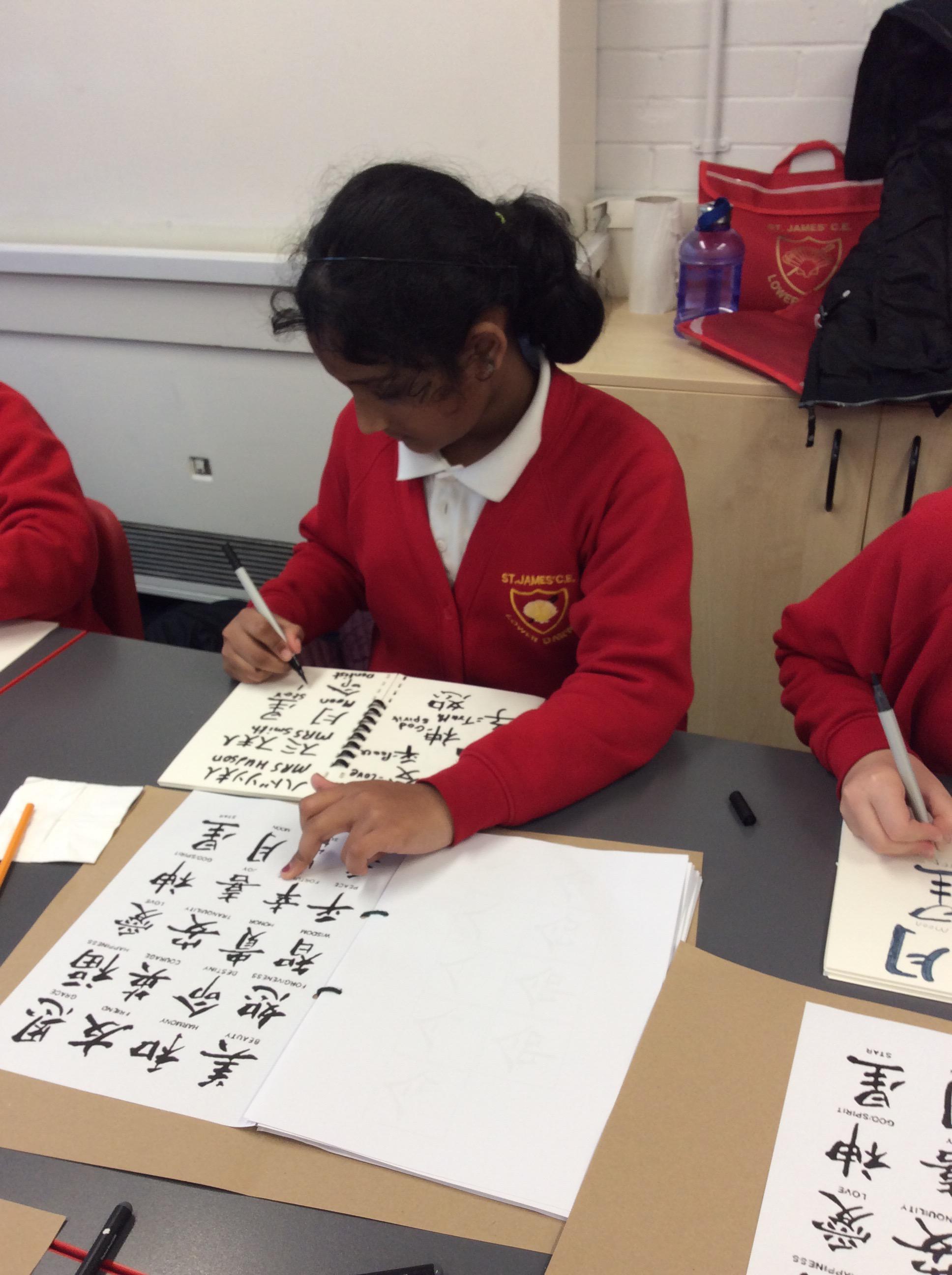 This week during the Arts Award session after school on Tuesday. The children had great fun learning to write in Japanese calligraphy.