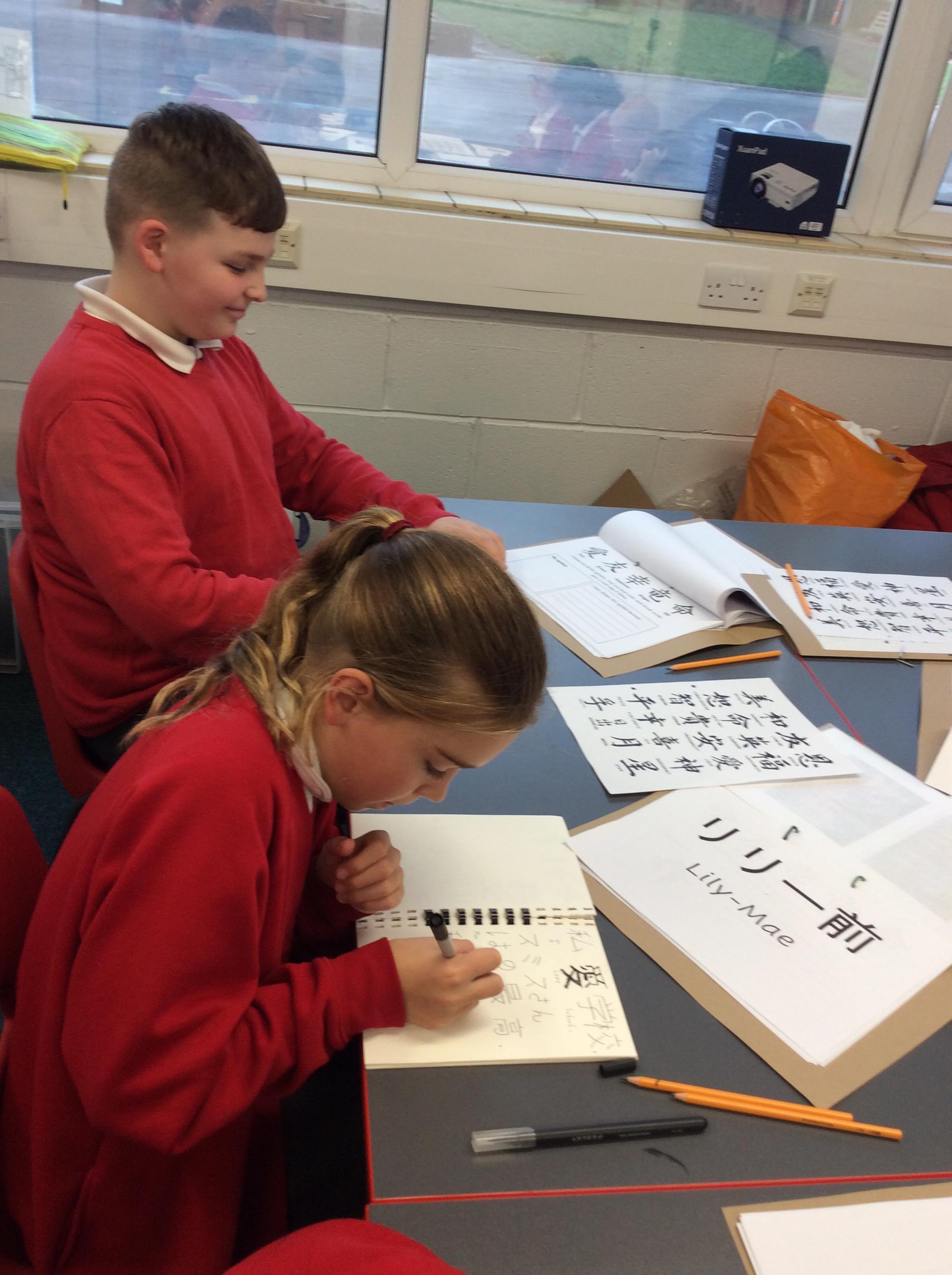 All the children got excited when Mrs Hudson gave them their own calligraphy practice book and their name written in Japanese, with other worksheets.
